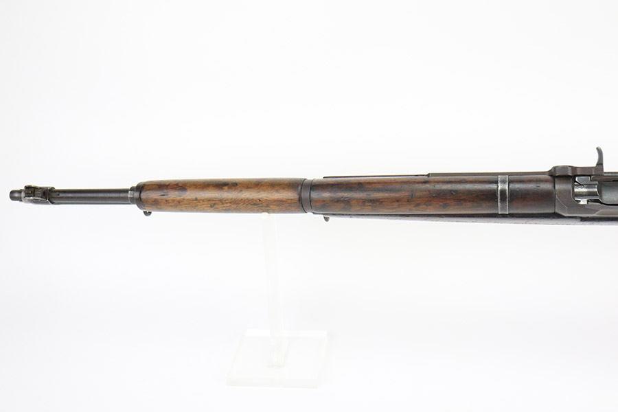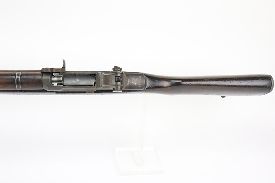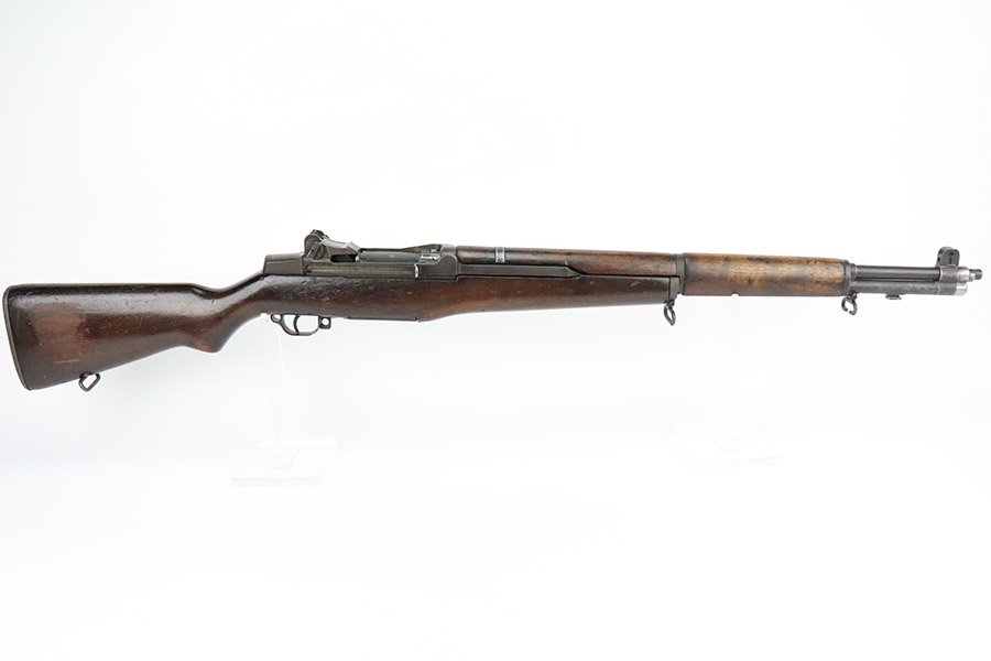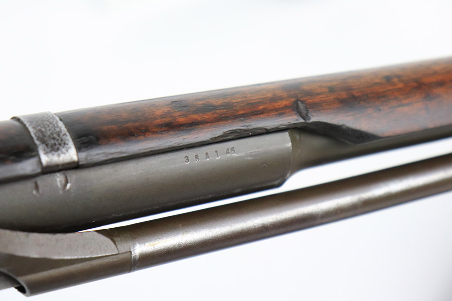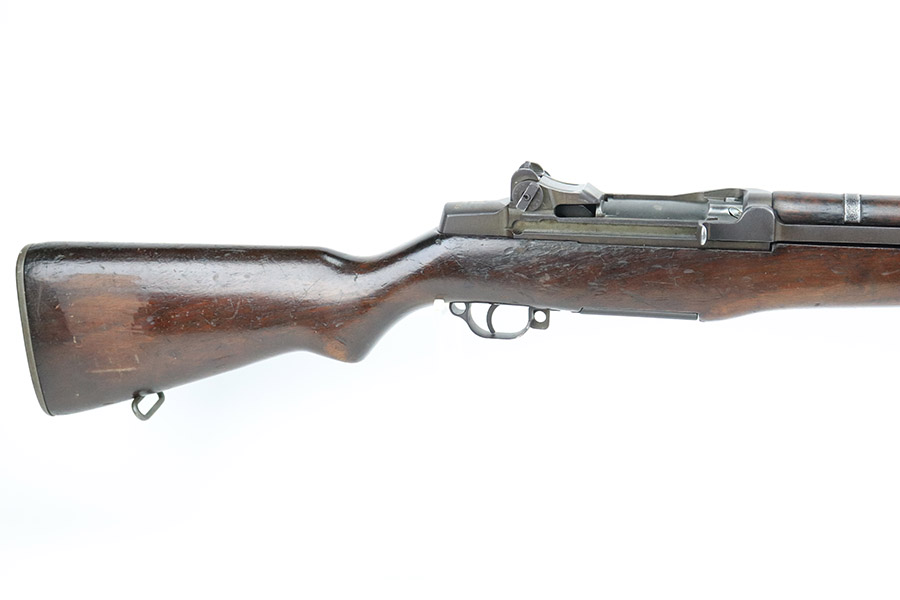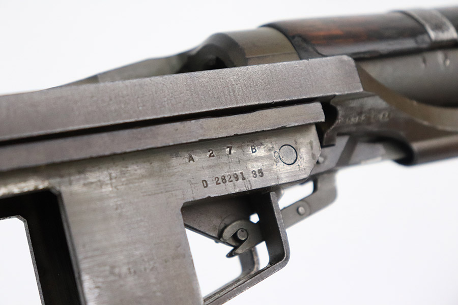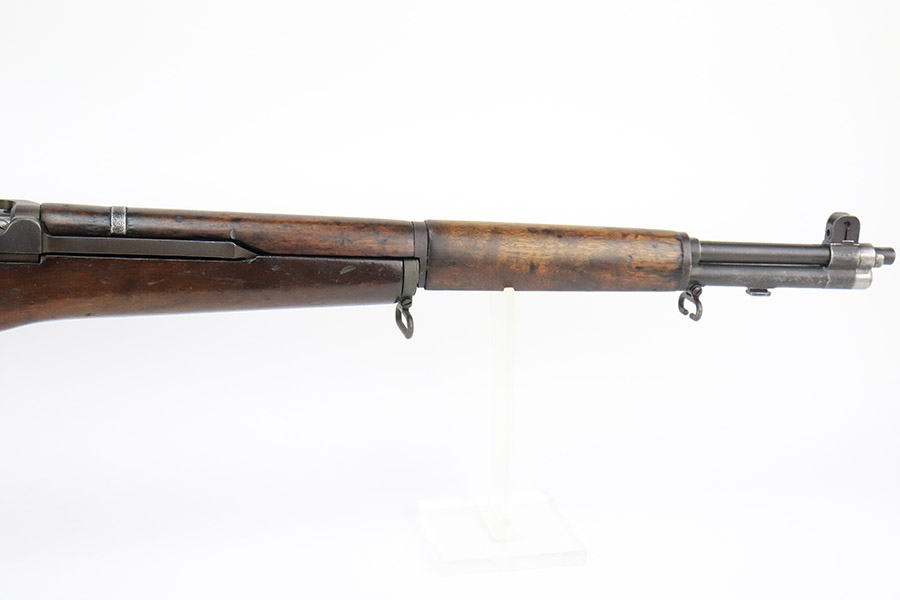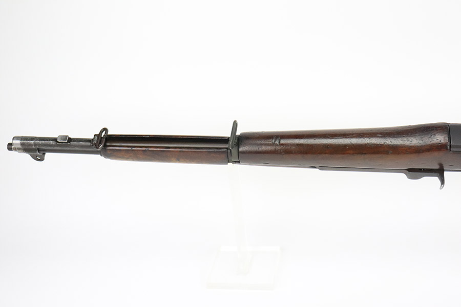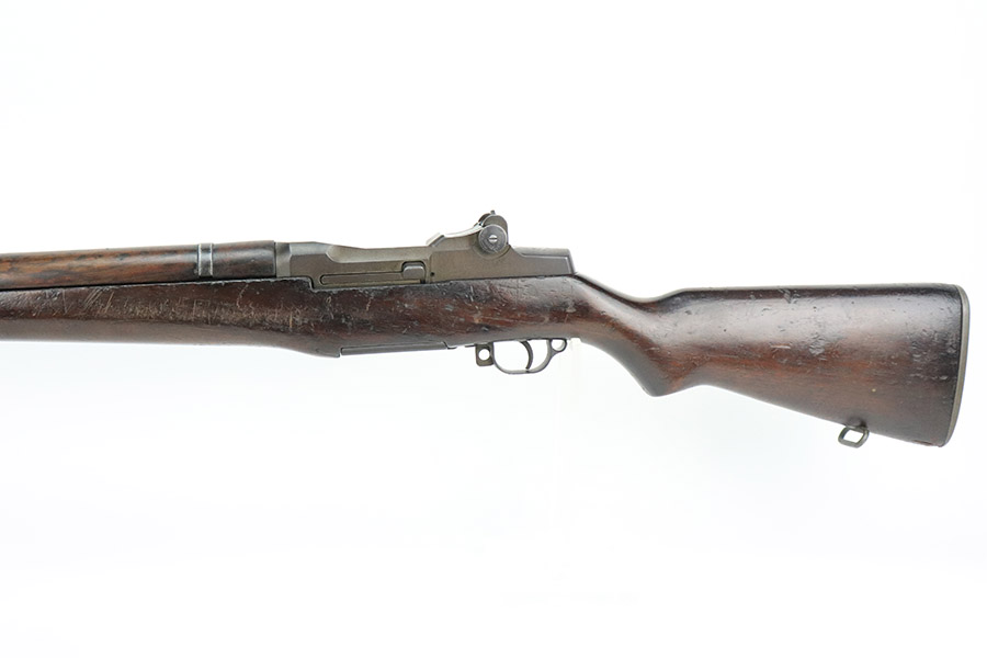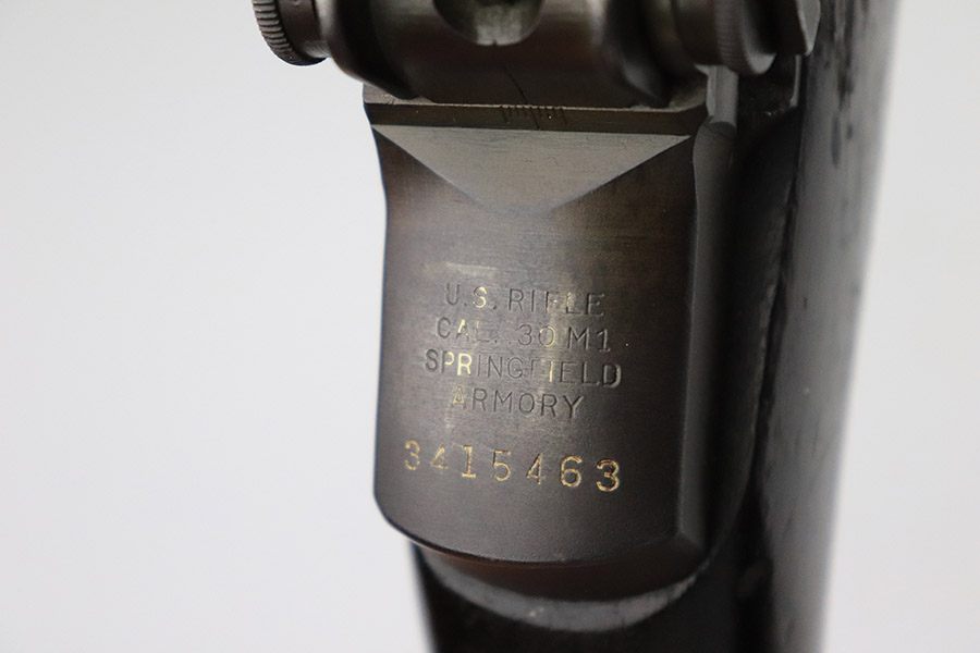 11/23/22 – This is a nice example of a Springfield M1 Garand issued to the US military during WW2. The receiver dates to early 1945. The barrel is Springfield marked and dated January of 1945. The stock has the proper cross canon cartouche and SA acceptance stamp but there is a faint “RIA EB” marking on the left side of the butt stock, indicating this gun was reworked at the Rock Island Arsenal at some point. Overall, the gun is in very nice condition, retaining about 96% of its finish. The majority of the wear is around the muzzle. While there is very little actual finish loss, there is some light spotty brown patina under the finish on the receiver. Oxidation on the rear-most barrel band. The stock has no major damage, but it is quite rough. There are noticeable dings, dents, and bruises throughout. An area of noticeable scratching on the left side, an area of finish loss on the right side of the butt stock where it looks like a rack number was removed. The color of the handguards does not match the rest of the stock. Throat reading: 1. Muzzle reading: 1. The bore is shiny with good rifling, but there is some spotty oxidation here and there.