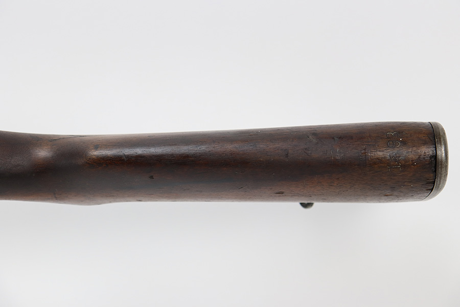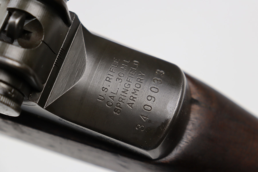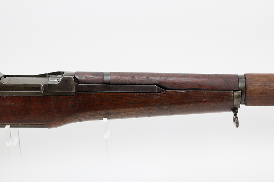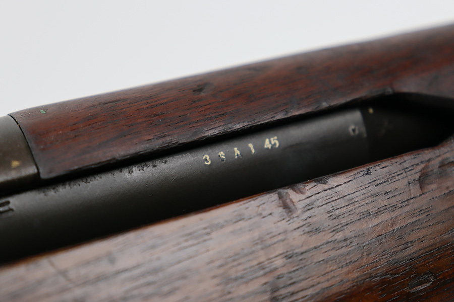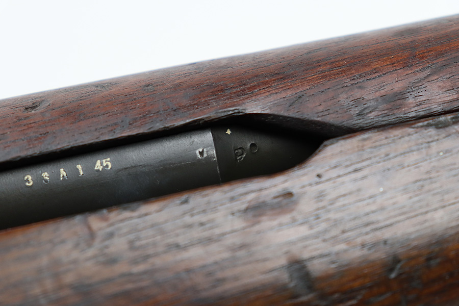 8/4/23 – This is a very nice example of a Springfield M1 Garand. The serial number on the receiver dates to about January of 1945. The barrel is Springfield-marked and dated January of 1945. Springfield-marked small parts. The stock has a “P” proof on the wrist and faint SA and cross canon cartouches on the left side. The metal parts have retained about 97% of their finish with minor wear around the muzzle and on the high edges in general. Nice wood stock but there are minor dings and scratches throughout and a series of more noticeable scuffs on the underside. The bore has great rifling, but there is very light pin-pricking in the grooves. Muzzle reading: 3. Throat reading: 1.