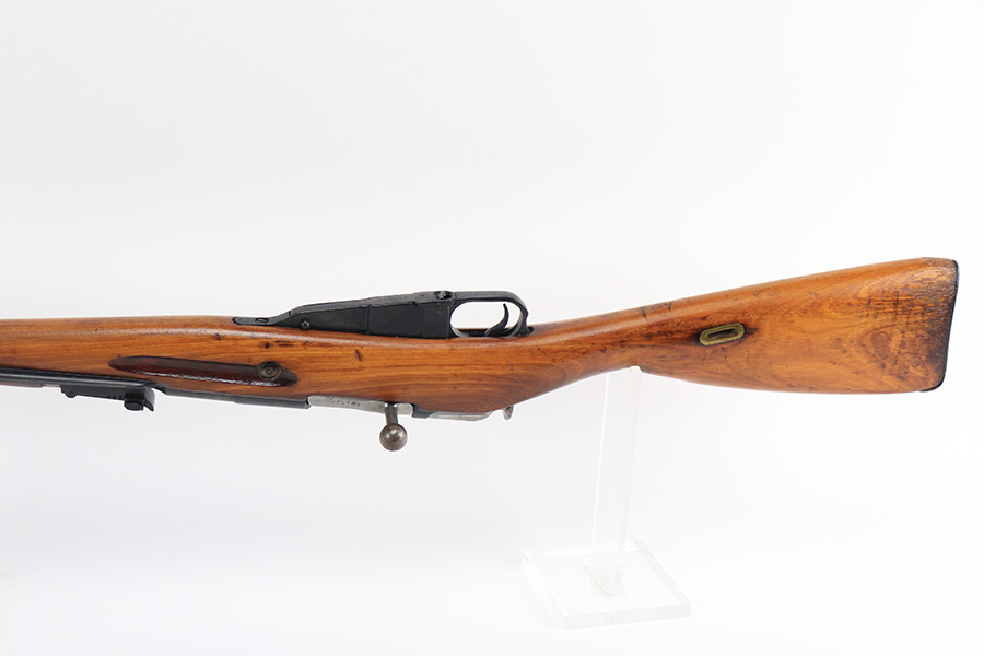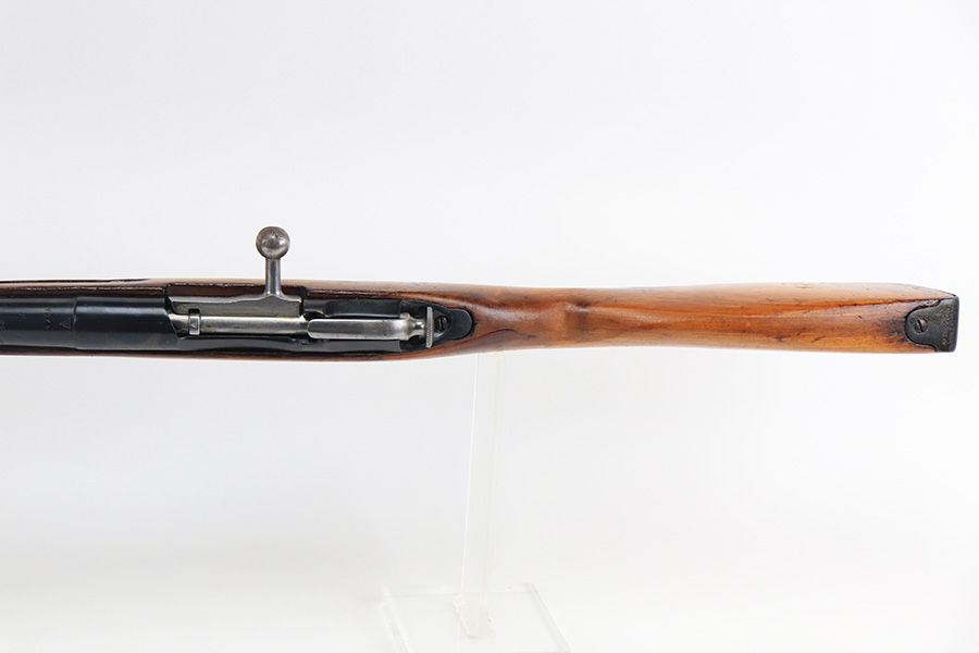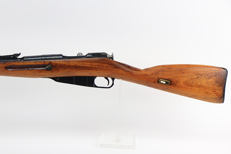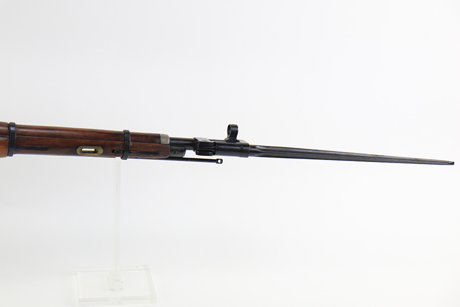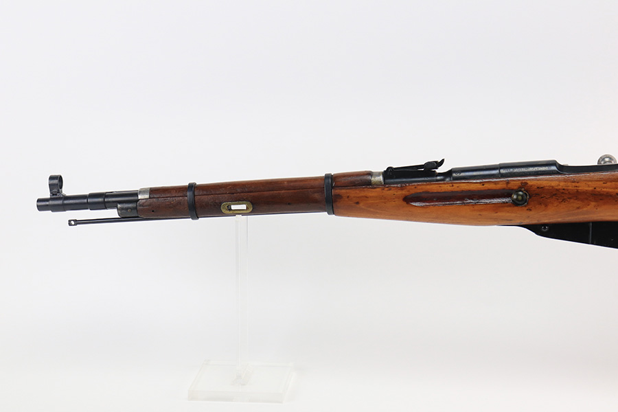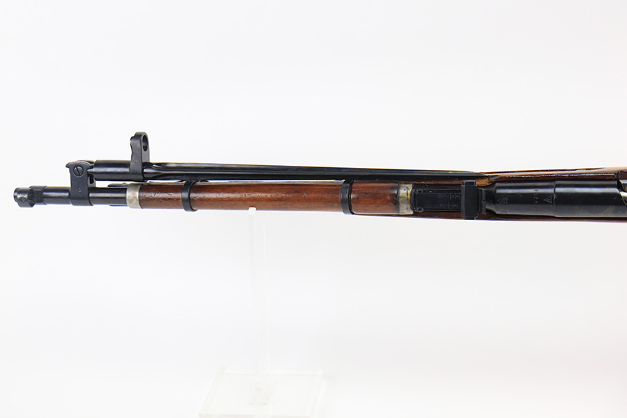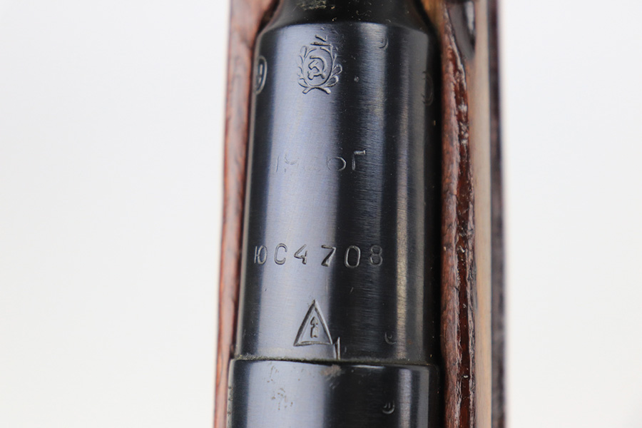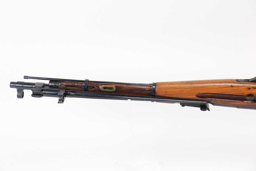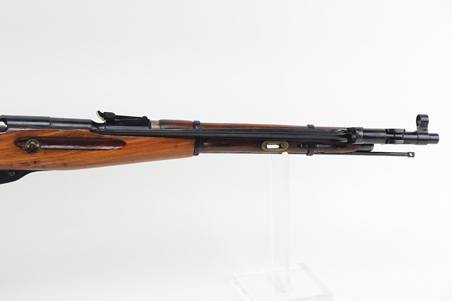 12/15/21 – This is a minty example of a Mosin Nagant M44 Rifle issued to the Soviet military in 1946. It is all matching and has an import mark on the left side of the receiver. The date marking on the chamber has been buffed and is very faint. Comes with an original flip-out bayonet. We believe the gun has been arsenal-refurbished. As a result, the bluing is excellent. It has retained virtually all of its finish with some very light handling marks here and there. The stock is excellent and has no markings. It was most likely sanded. The bore is minty – shiny with very strong rifling.