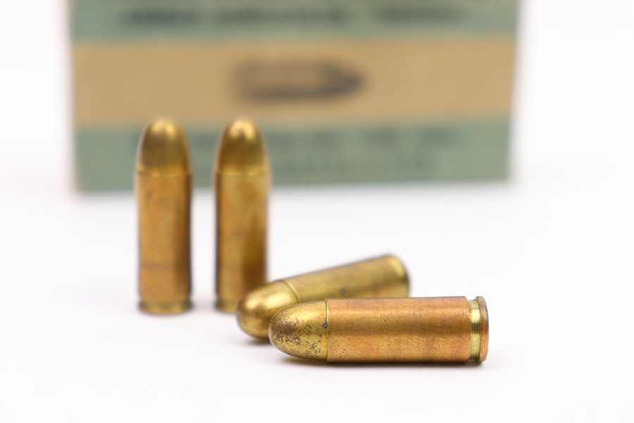 9/20/22 – This is a vintage box of 7.65mm pistol ammunition. The box indicates the ammo is for a Mannlicher pistol, but this ammo would work with any 7.65mm handgun. Each round is 1947 dated on the headstamp. All rounds are in great condition. The original box has some mild cosmetic wear but no major issues.