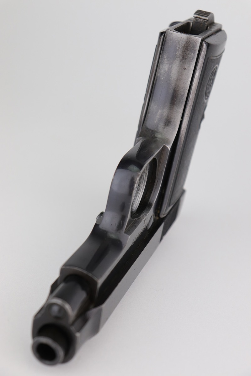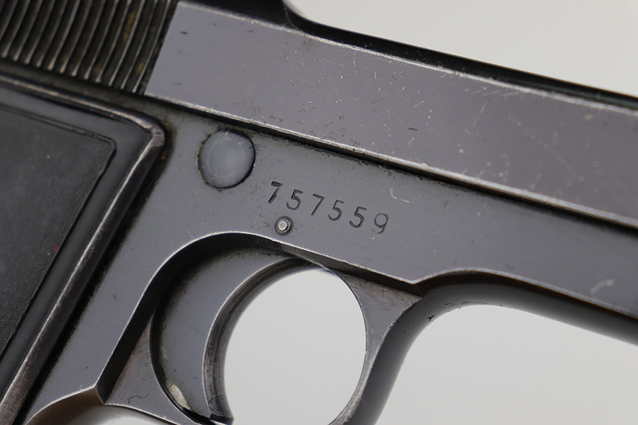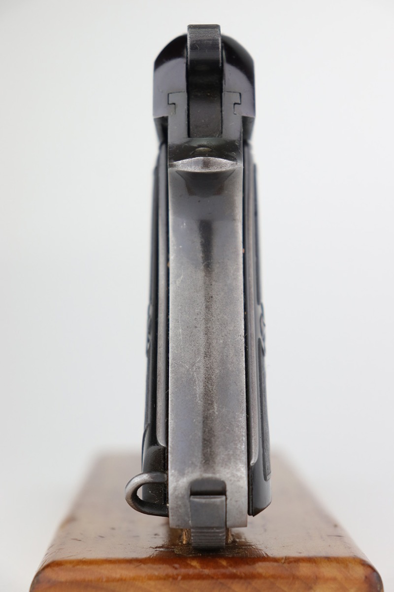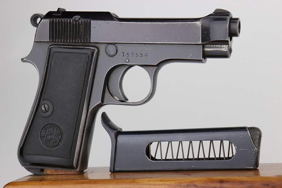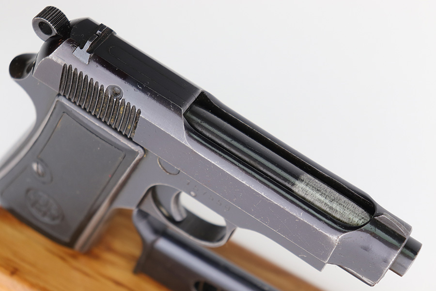 3/21/23 – This is a nice example of a Beretta Model 1935, manufactured in 1950 and chambered in 7.65mm. All matching with the proper Italian proofs. It has retained about 85% of its original high polish finish. Very minor wear around the high edges, thinning on the grip straps, and some tiny scratches on the slide. Very nice period-correct black bakelite grips. Comes with one proper magazine. Excellent, shiny bore.
