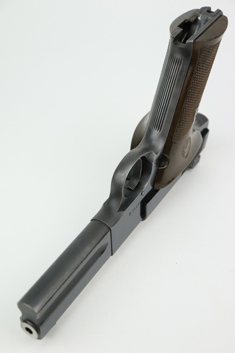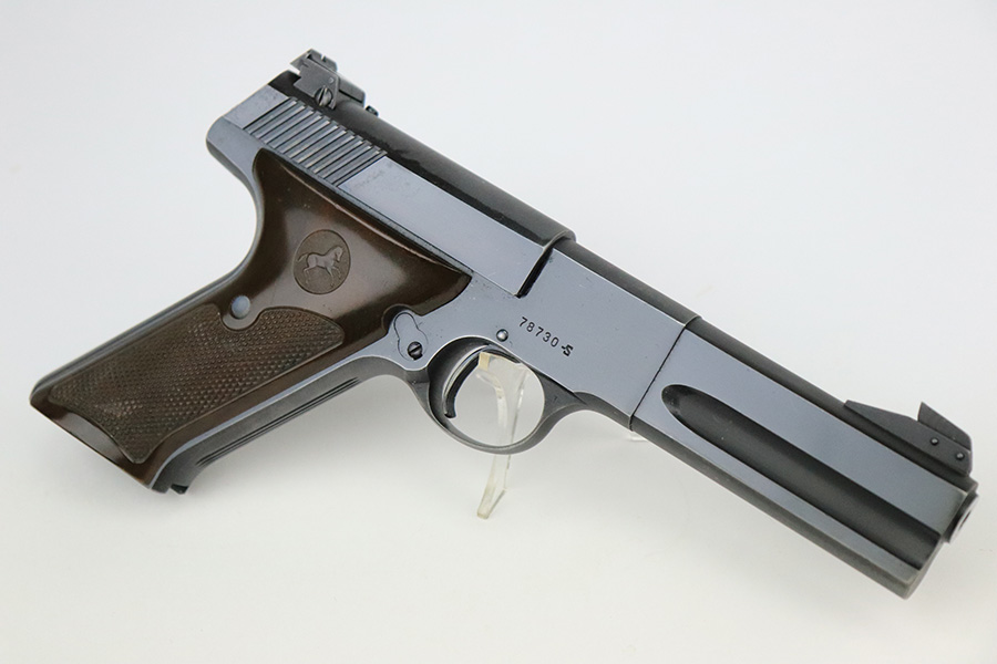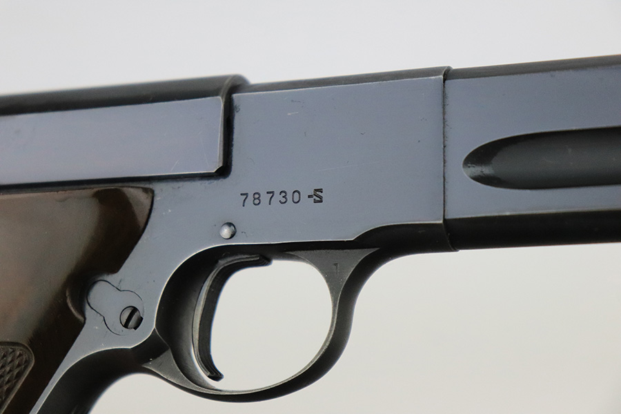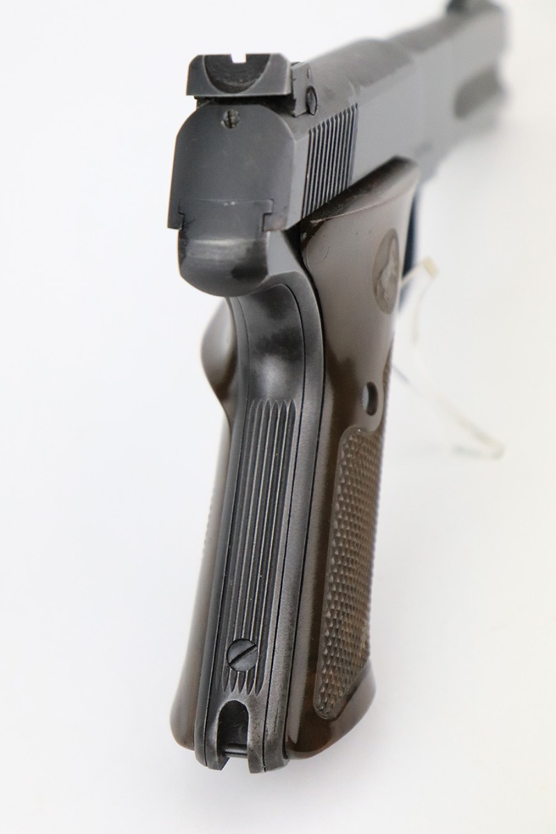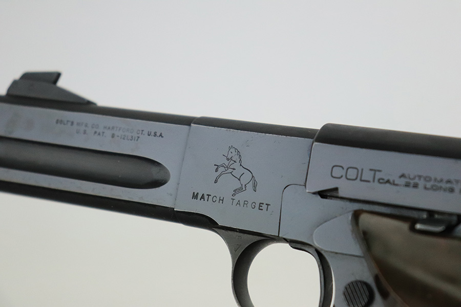 7/25/22 – This is a very nice example of a Colt Match Target manufactured in 1950. The gun is all correct and has retained about 90% of its original finish. Most of the finish loss is on the straps, but there is also very minor wear on some of the high edges and an area of minor discoloration on the left side of the barrel around the muzzle. Comes with excellent brown plastic grips and one proper magazine. Mint bore.