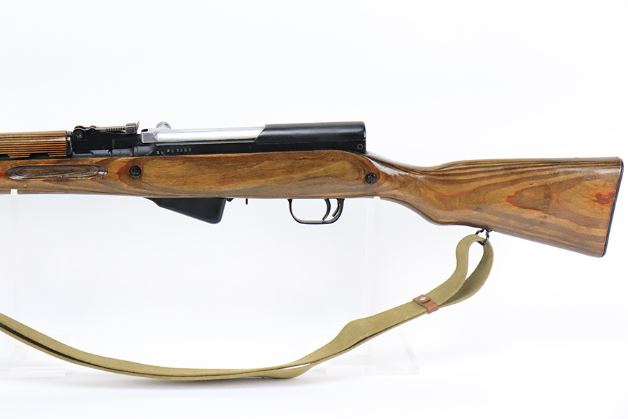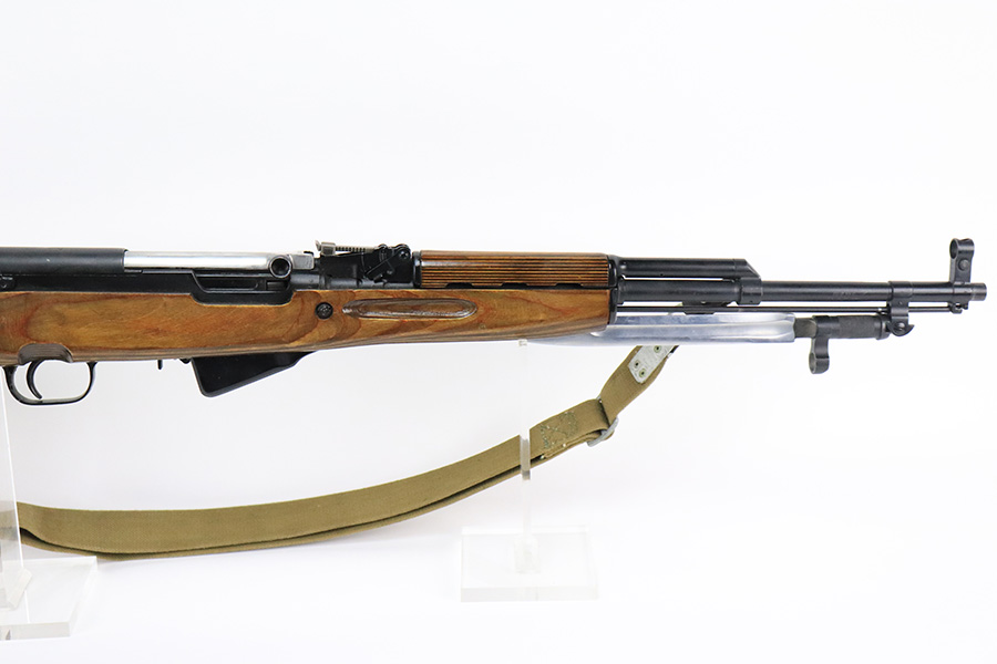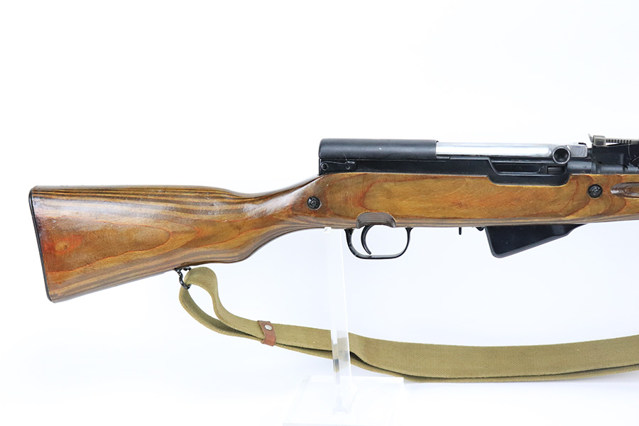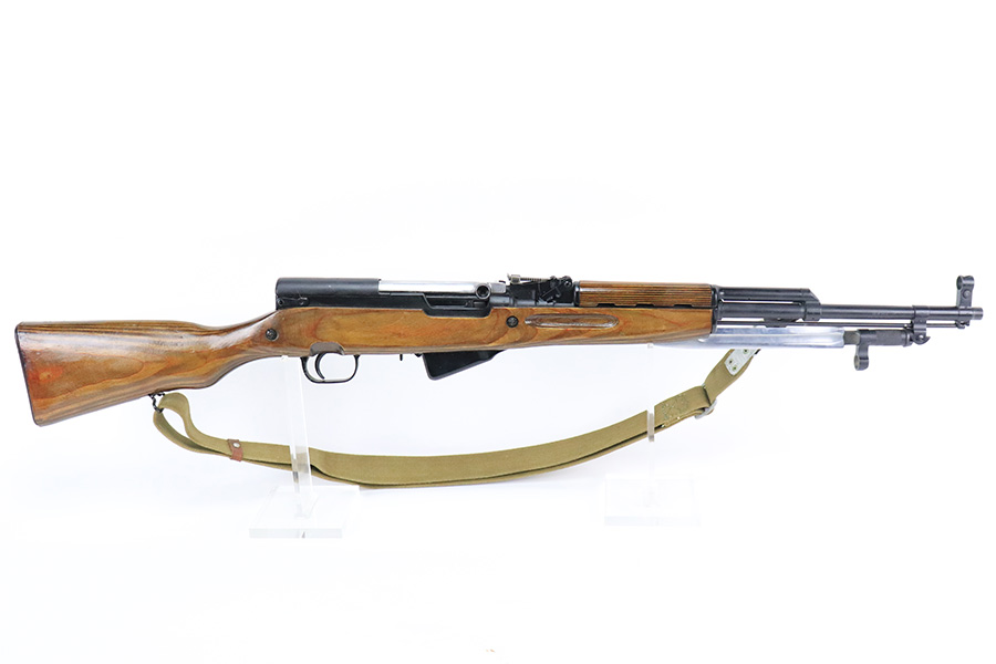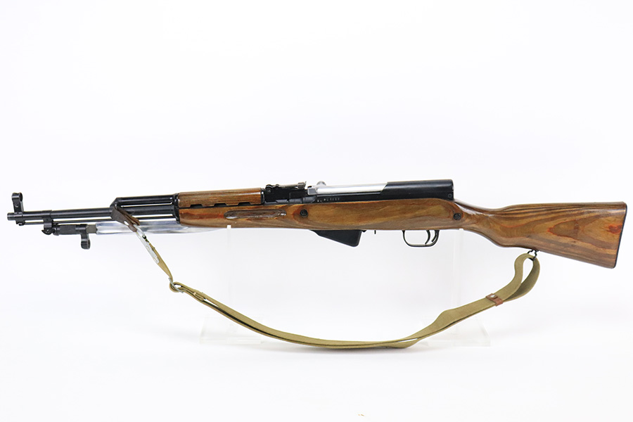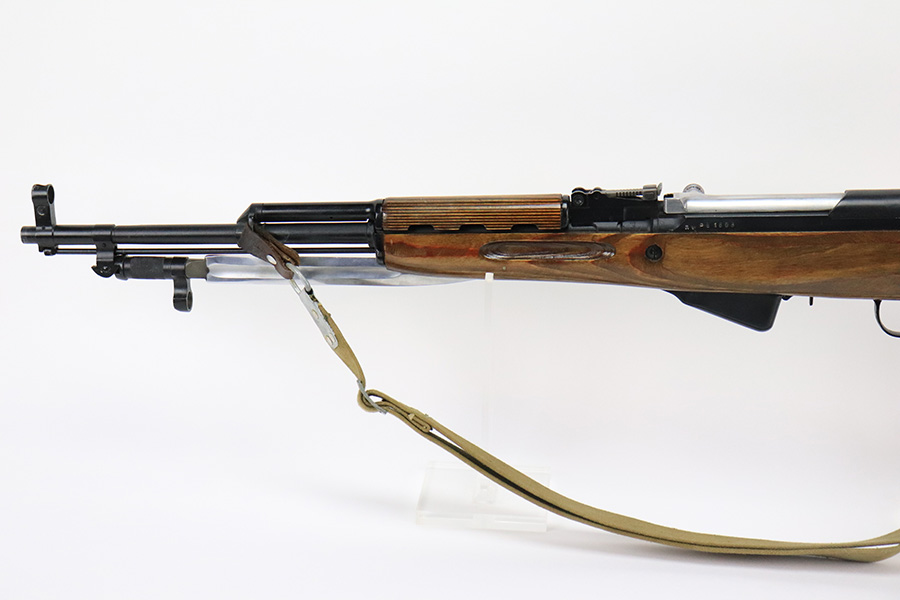 7/29/22 – This is a very nice example of a Russian SKS rifle made in the Tula Factory during 1951. The gun is all matching throughout, though the magazine was re-numbered to match (common for arsenal re-work examples). There is an import mark on the right side of the barrel. The rifle includes an original bayonet and canvas sling. There is some noticeable thinning on the top of the receiver and the muzzle. Overall, the rifle is in excellent condition and has only minor handling marks throughout. The bore shows very strong rifling, but spots of light frosting.