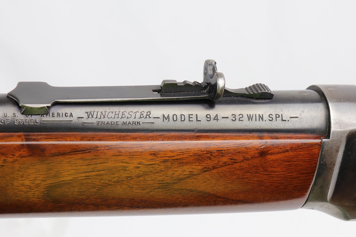 7/24/19 – This is a very nice Winchester Model 94 lever-action rifle that was manufactured in 1951. It is all original with about 80-90% blue remaining, showing excellent bluing on the barrel but general thinning of the receiver. The gun is chambered for the less common .32 Winchester Special. Minty bore. 20 inch barrel. Stock is in fantastic condition.