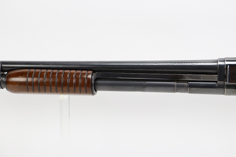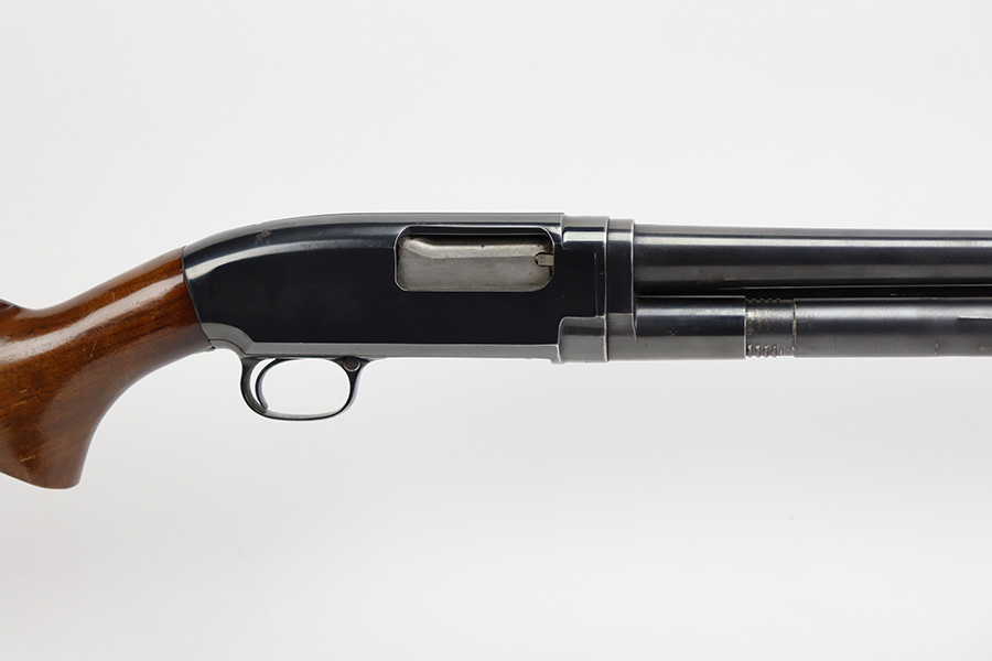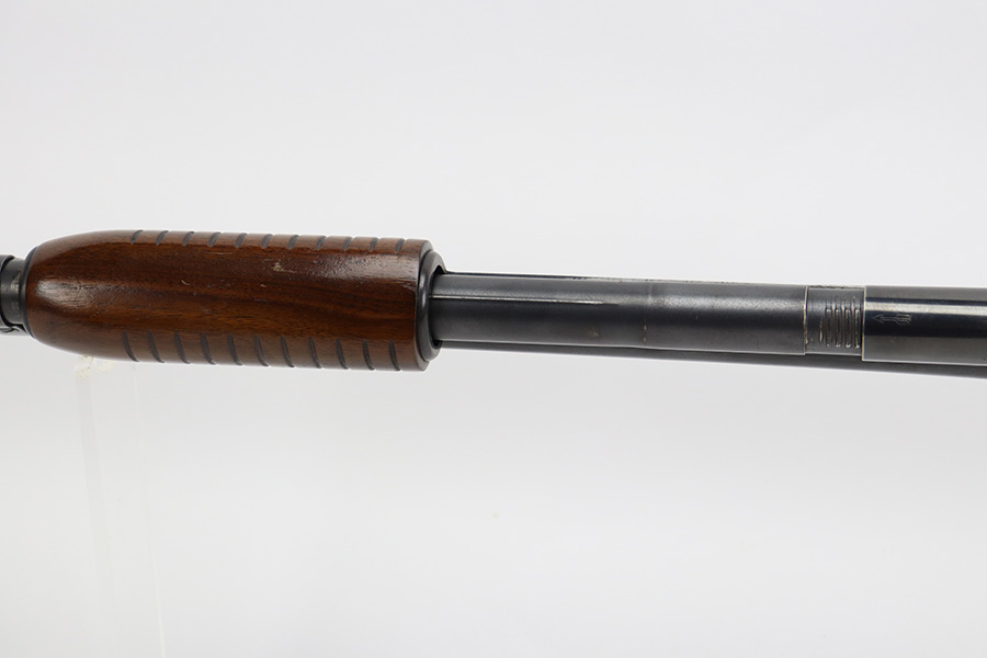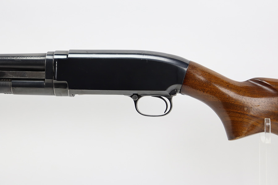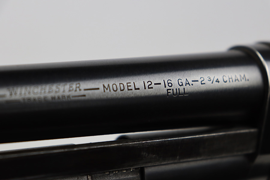 7/25/23 – This is an excellent example of a Winchester Model 12 pump action shotgun, manufactured in 1952 and chambered in 16 GA. All matching, 27″ barrel, 14.25″ LOP, full choke. It has retained about 95% of its original bluing with general minor high edge wear and a few tiny spots of oxidation and very light scratches on the receiver. Very nice wood furniture with only minor handling marks. Excellent, shiny bore.