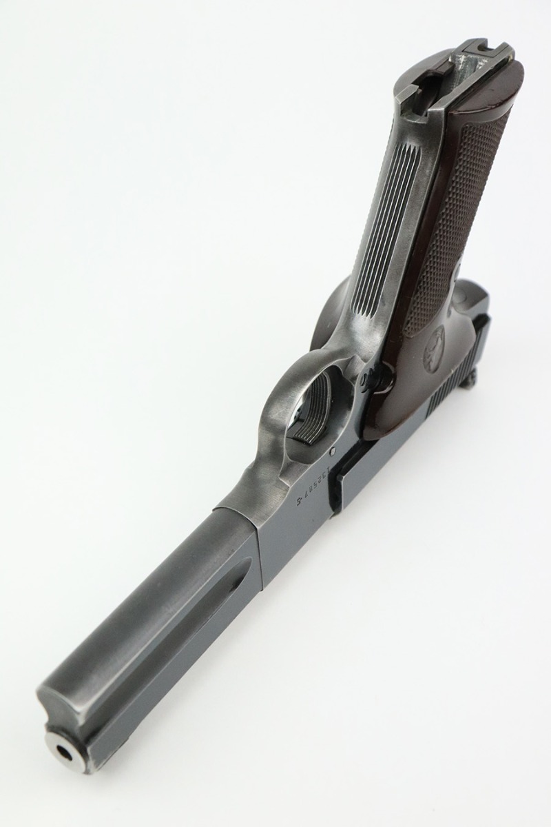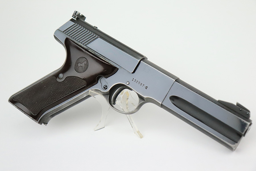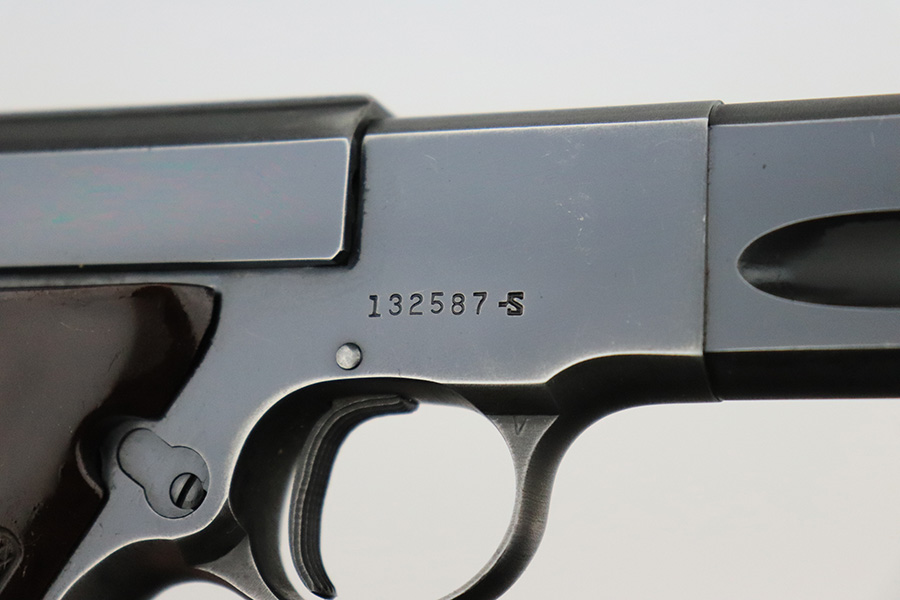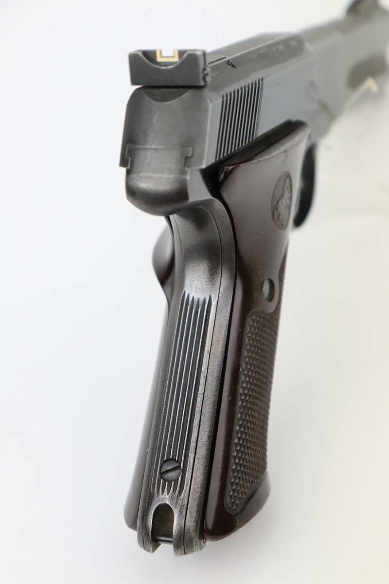 7/22/22 – This is a nice example of a Colt Match Target manufactured in 1953. The gun is all correct and has retained about 85% of its original finish. Most of the bluing loss is on the grip straps, where the finish is thin. There is also minor muzzle wear and minor wear around the high edges in general. Comes with excellent brown plastic grips and one proper magazine. Stone-mint bore.