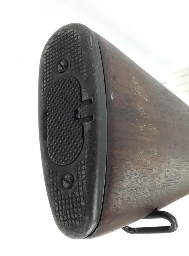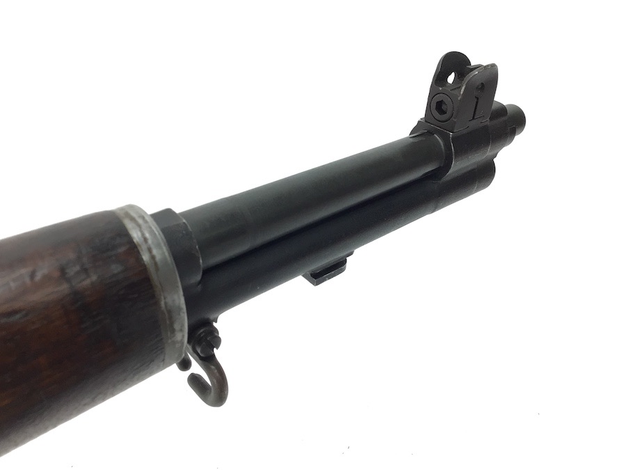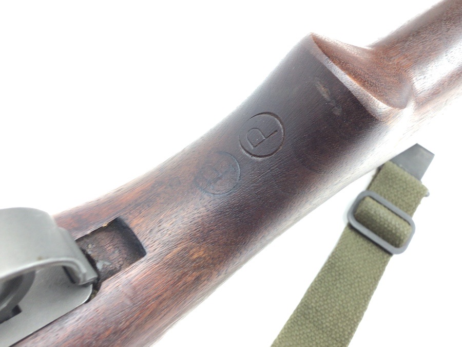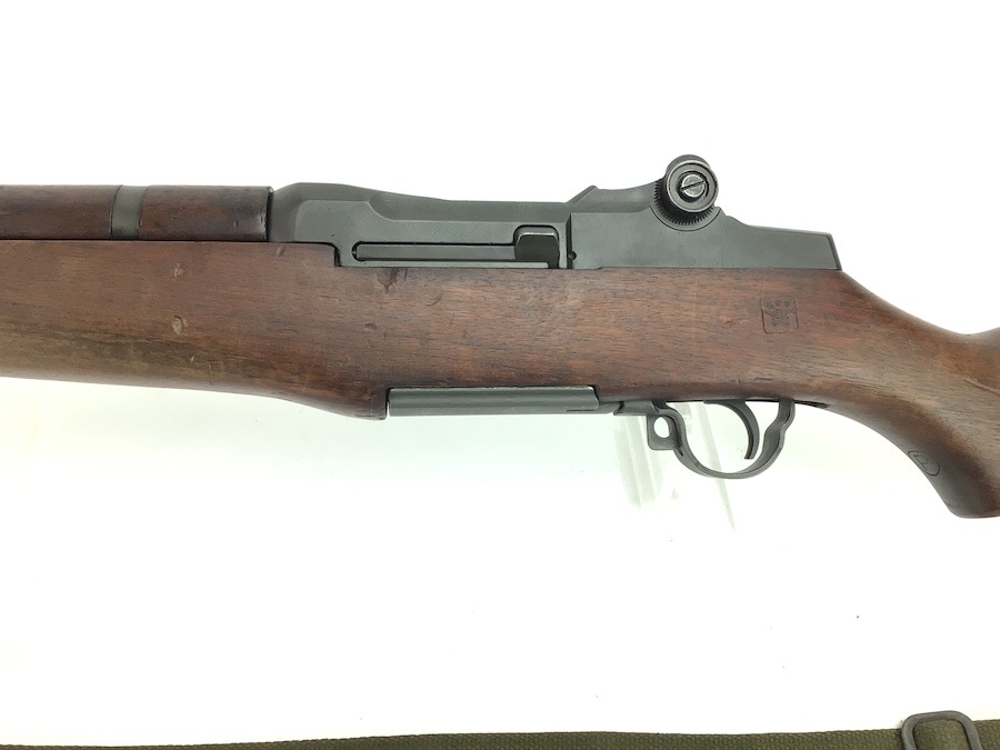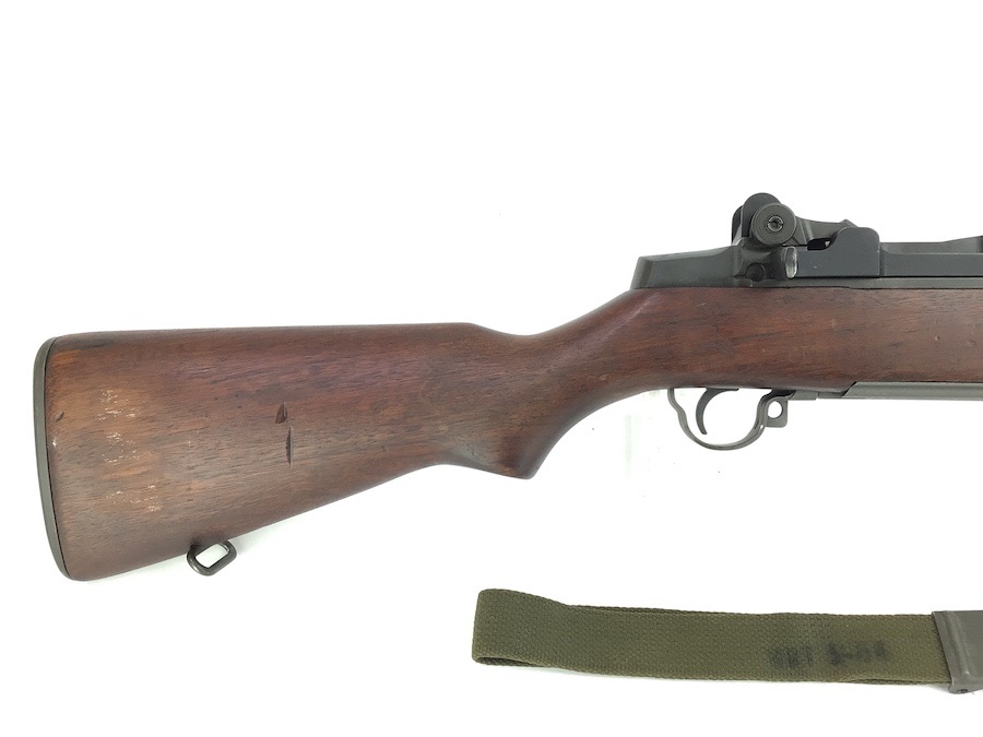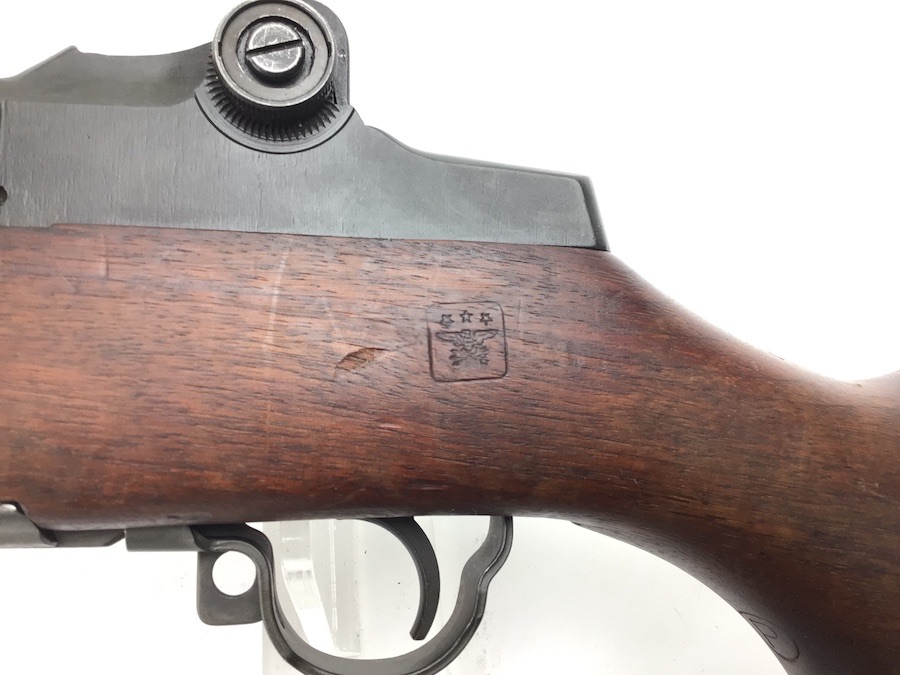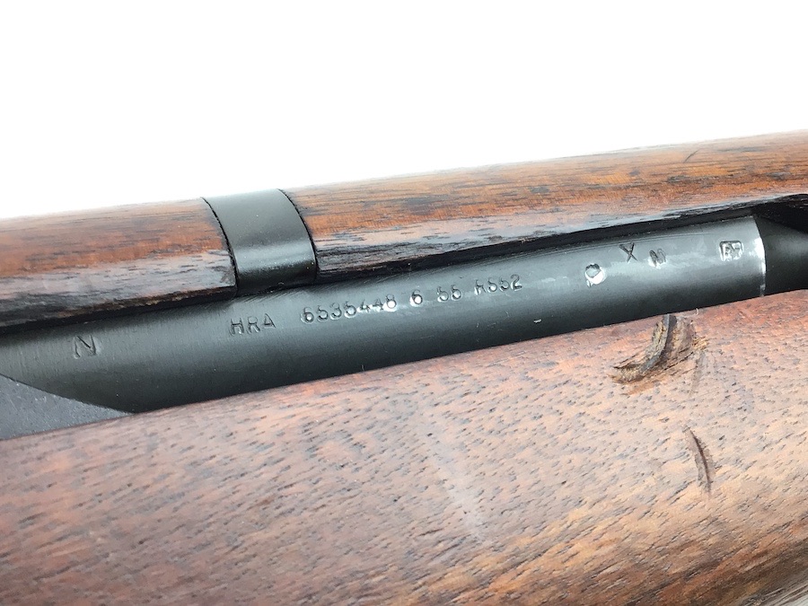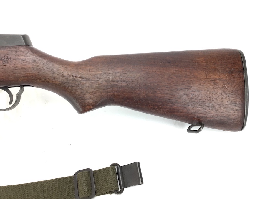10/17/24 – This is a nice example of a Korean War era M1 Garand, produced by Harrington & Richardson in 1955. The finish rates at about 95% with minor thinning on the receiver, and a little bit of finish loss on the barrel. Nice stock with no major flaws, but a few handling marks. ‘P’ in circle proof on wrist. Eagle cartouche on the left side. Barrel is dated to June of 1955. Bore shows strong rifling and rates an 8 of 10. ME and TE both measure a 2 – 2-1/2. Internal parts are all HRA stamped, except for the trigger housing which is WRA. Smooth action and fully functional. Includes wartime sling.