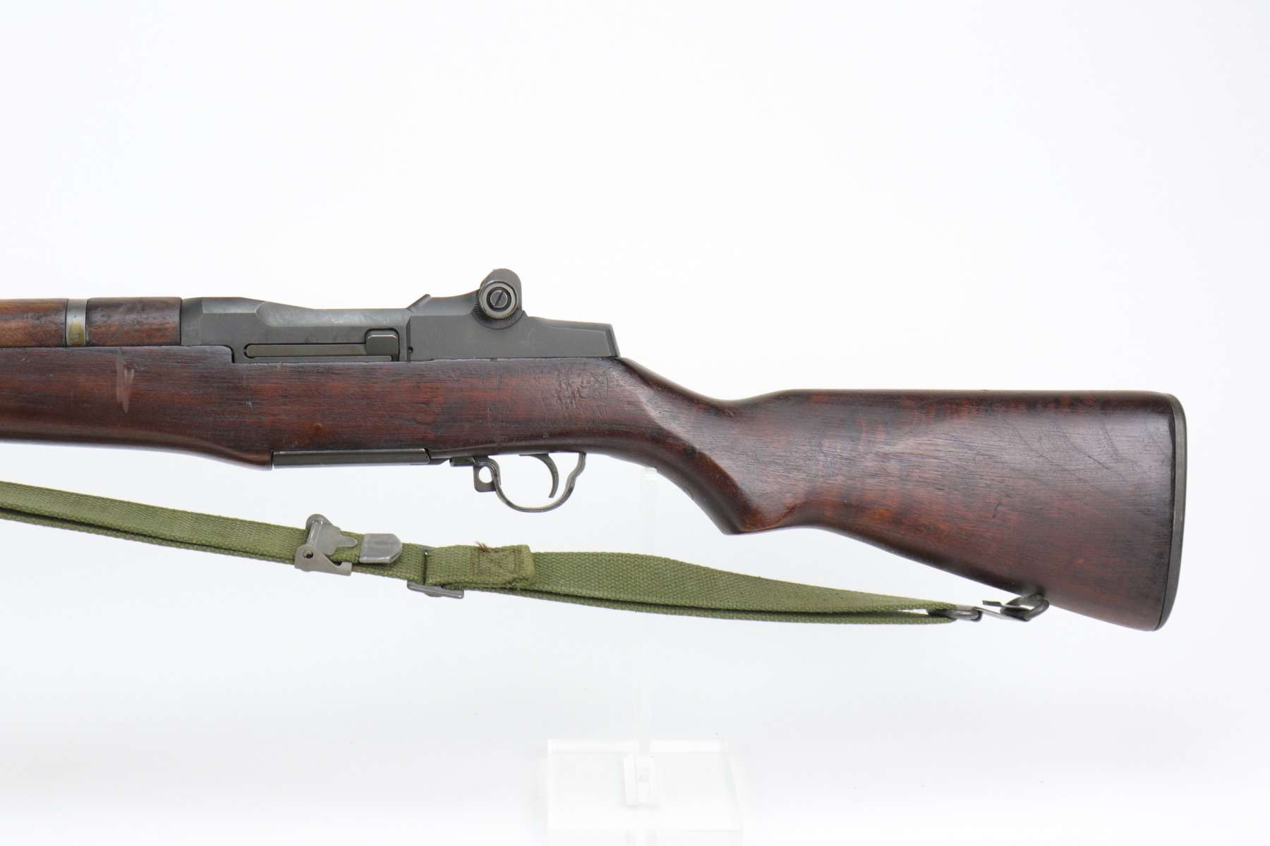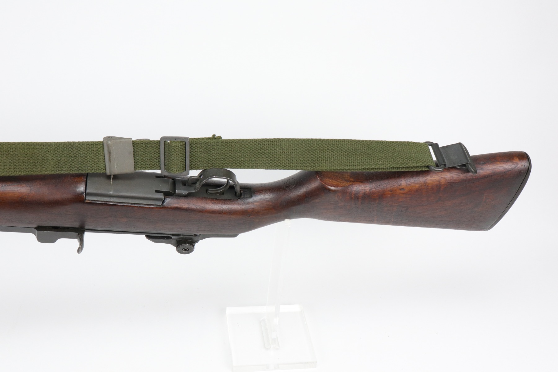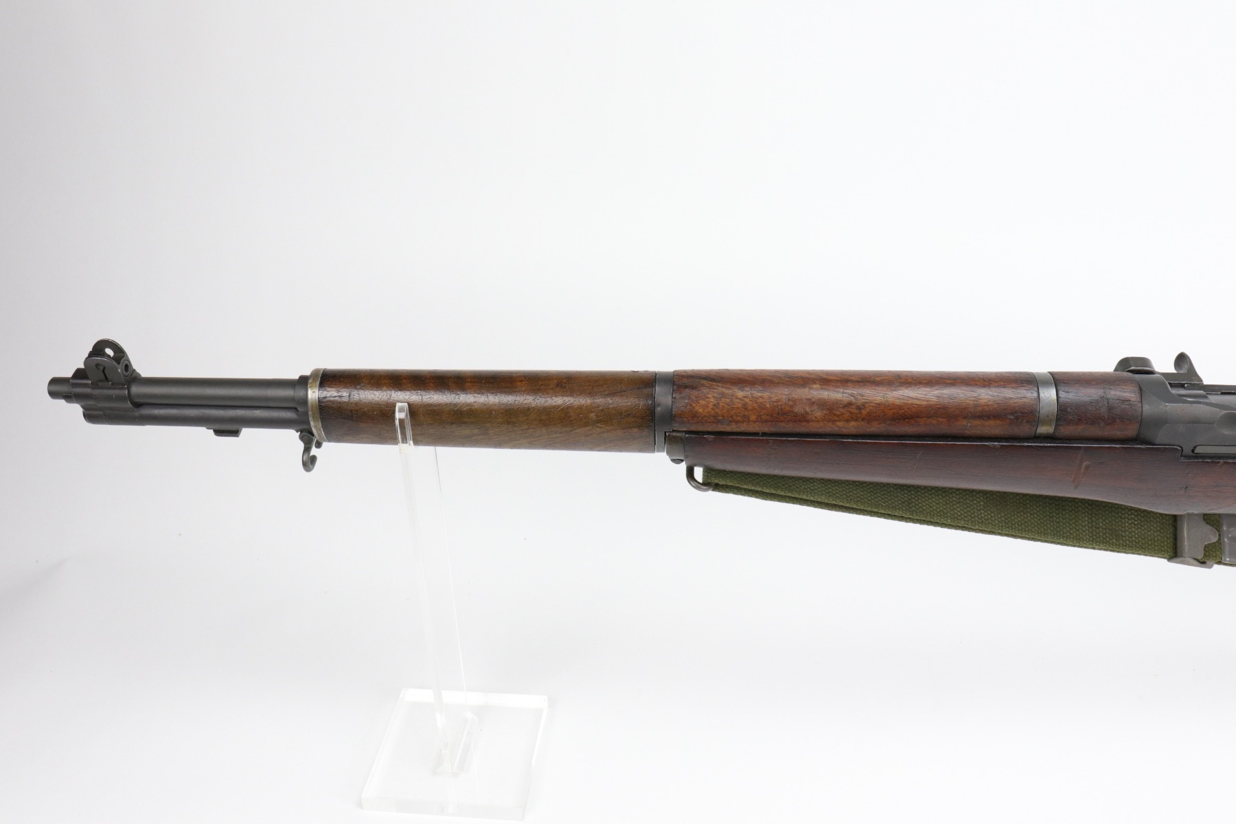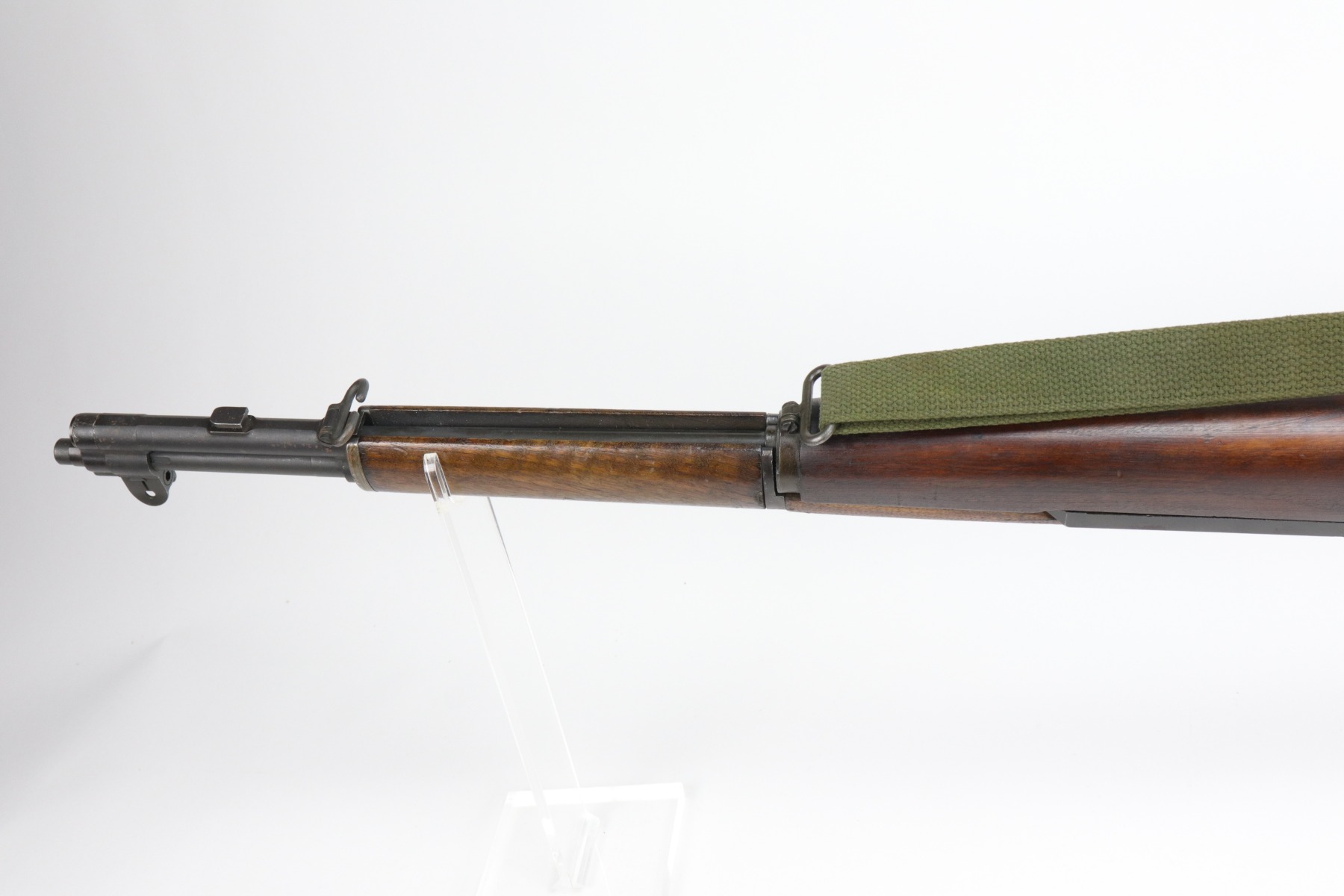 2/15/21 – This is an excellent example of a Springfield M1 Garand, manufactured in 1955. The gun is in excellent condition overall except for a few light handling marks here and there and a few small dots of rust on the barrel. The stock has a DOD stamp and is in nice condition – there are just some light scratches and bruises throughout. The gun comes with a canvas sling. Fully functional and the action is smooth. The bore is very nice – shiny with strong rifling with minor fouling in the grooves.