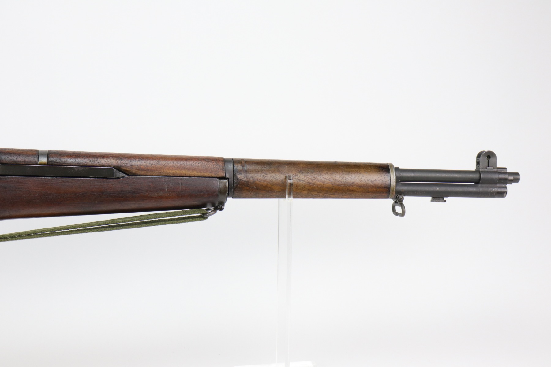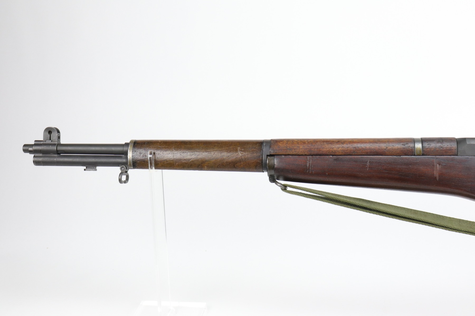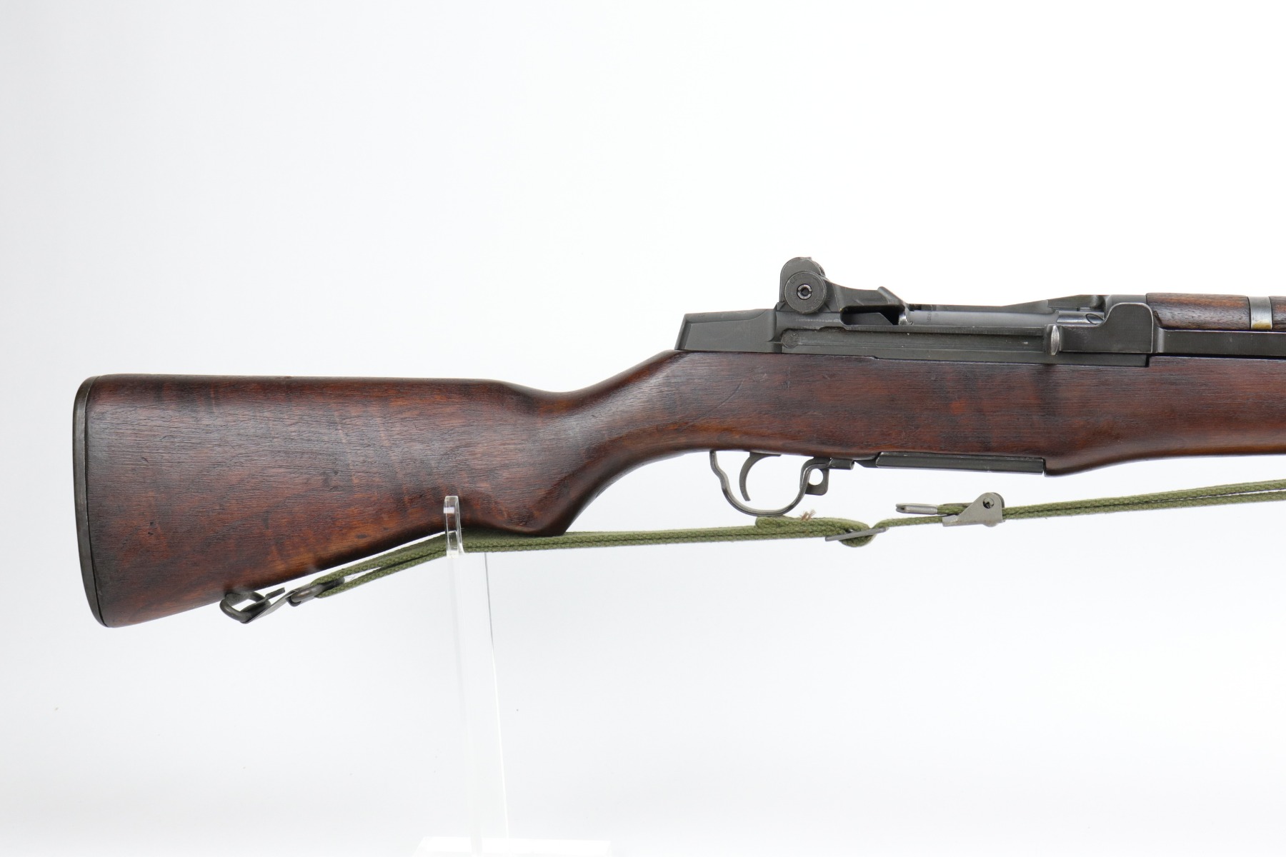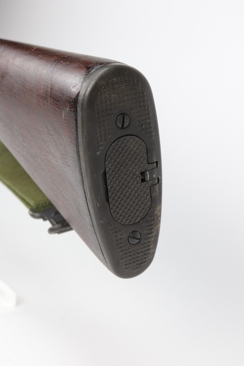 2/15/21 – This is an excellent example of a Springfield M1 Garand, manufactured in 1955. The gun is in excellent condition overall except for a few light handling marks here and there and a few small dots of rust on the barrel. The stock has a DOD stamp and is in nice condition – there are just some light scratches and bruises throughout. The gun comes with a canvas sling. Fully functional and the action is smooth. The bore is very nice – shiny with strong rifling with minor fouling in the grooves.