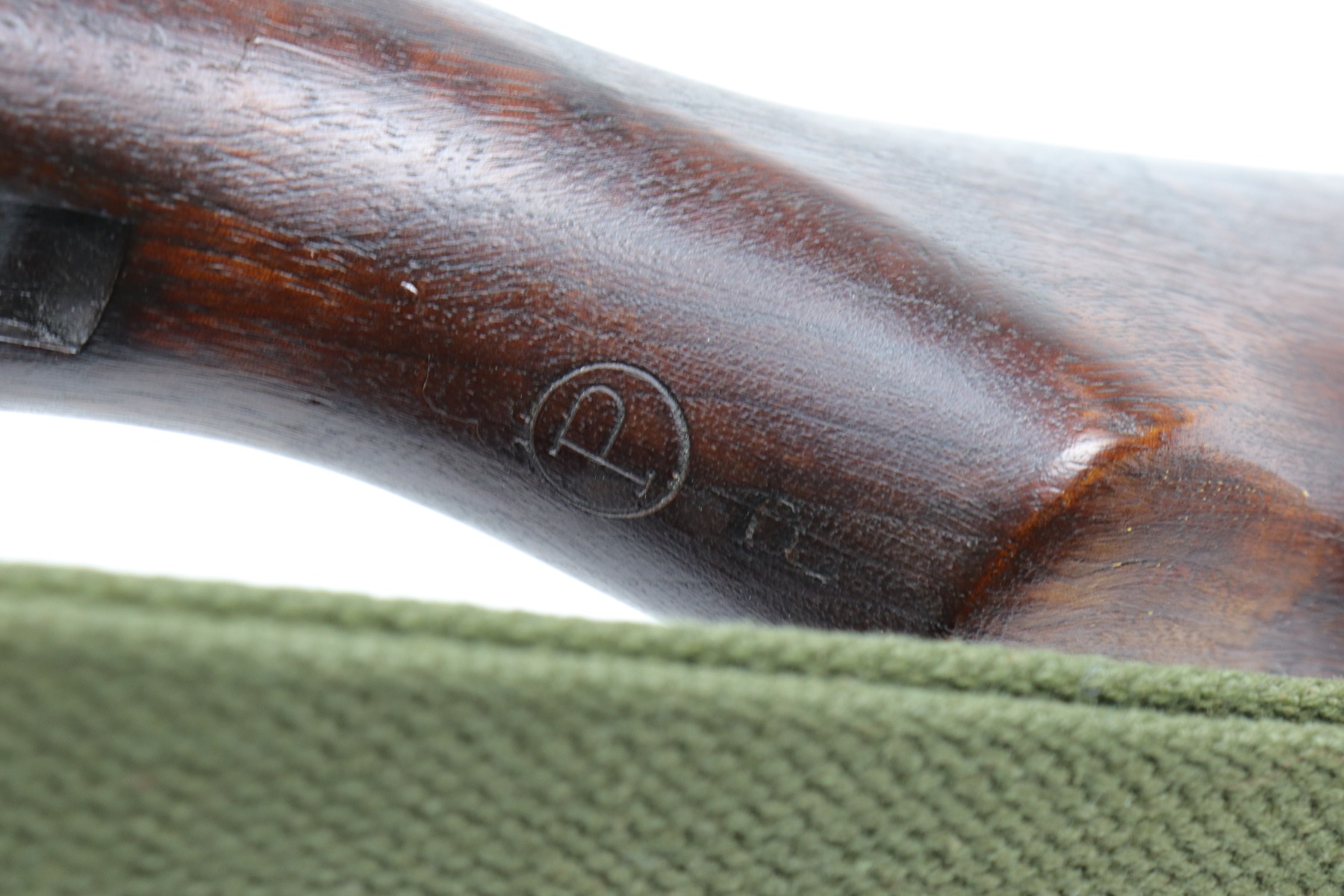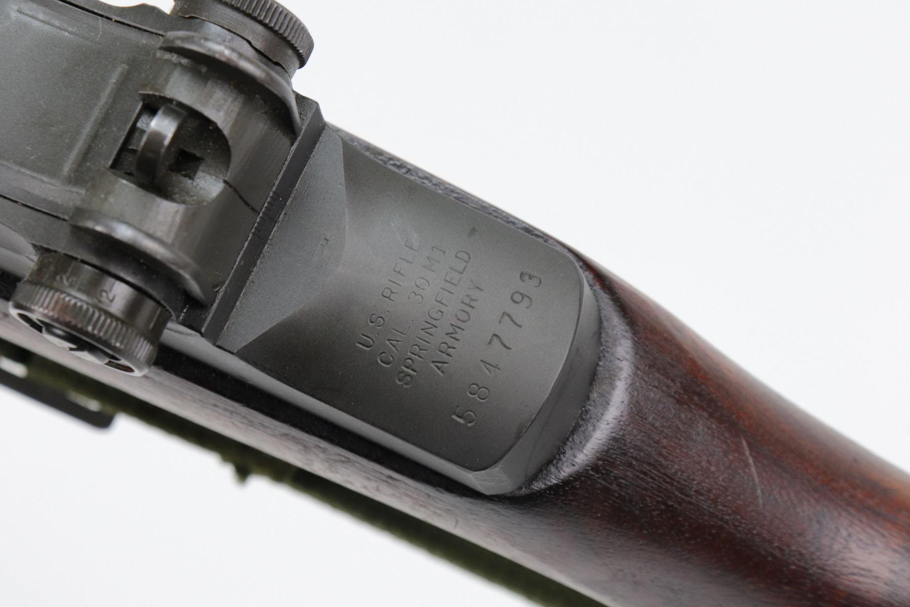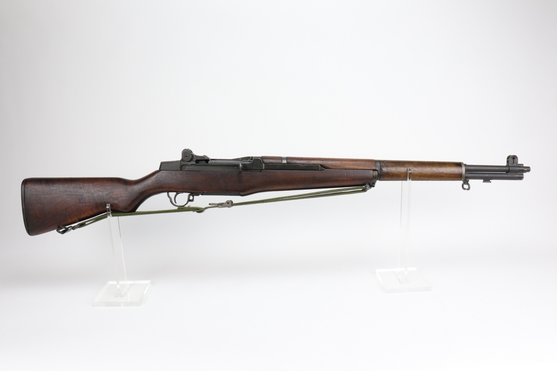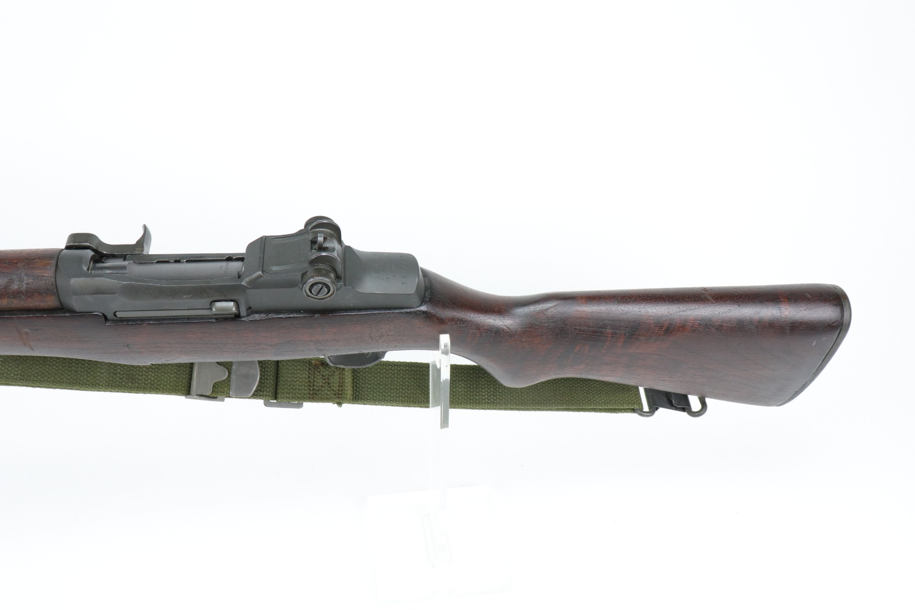 2/15/21 – This is an excellent example of a Springfield M1 Garand, manufactured in 1955. The gun is in excellent condition overall except for a few light handling marks here and there and a few small dots of rust on the barrel. The stock has a DOD stamp and is in nice condition – there are just some light scratches and bruises throughout. The gun comes with a canvas sling. Fully functional and the action is smooth. The bore is very nice – shiny with strong rifling with minor fouling in the grooves.