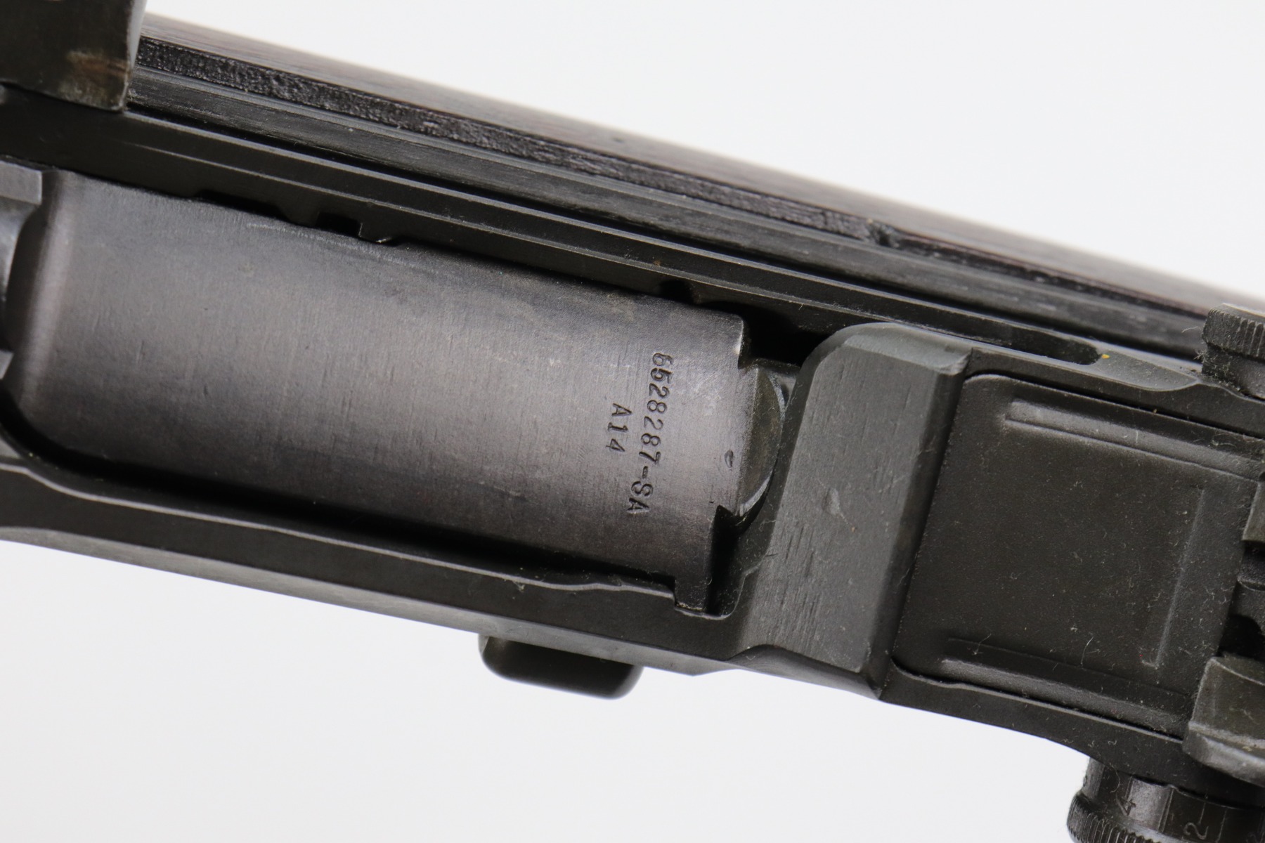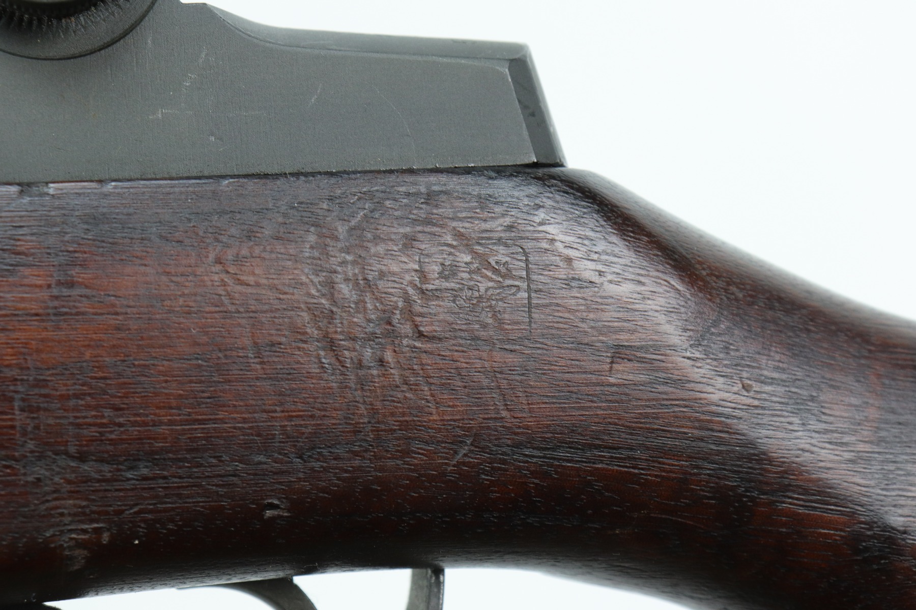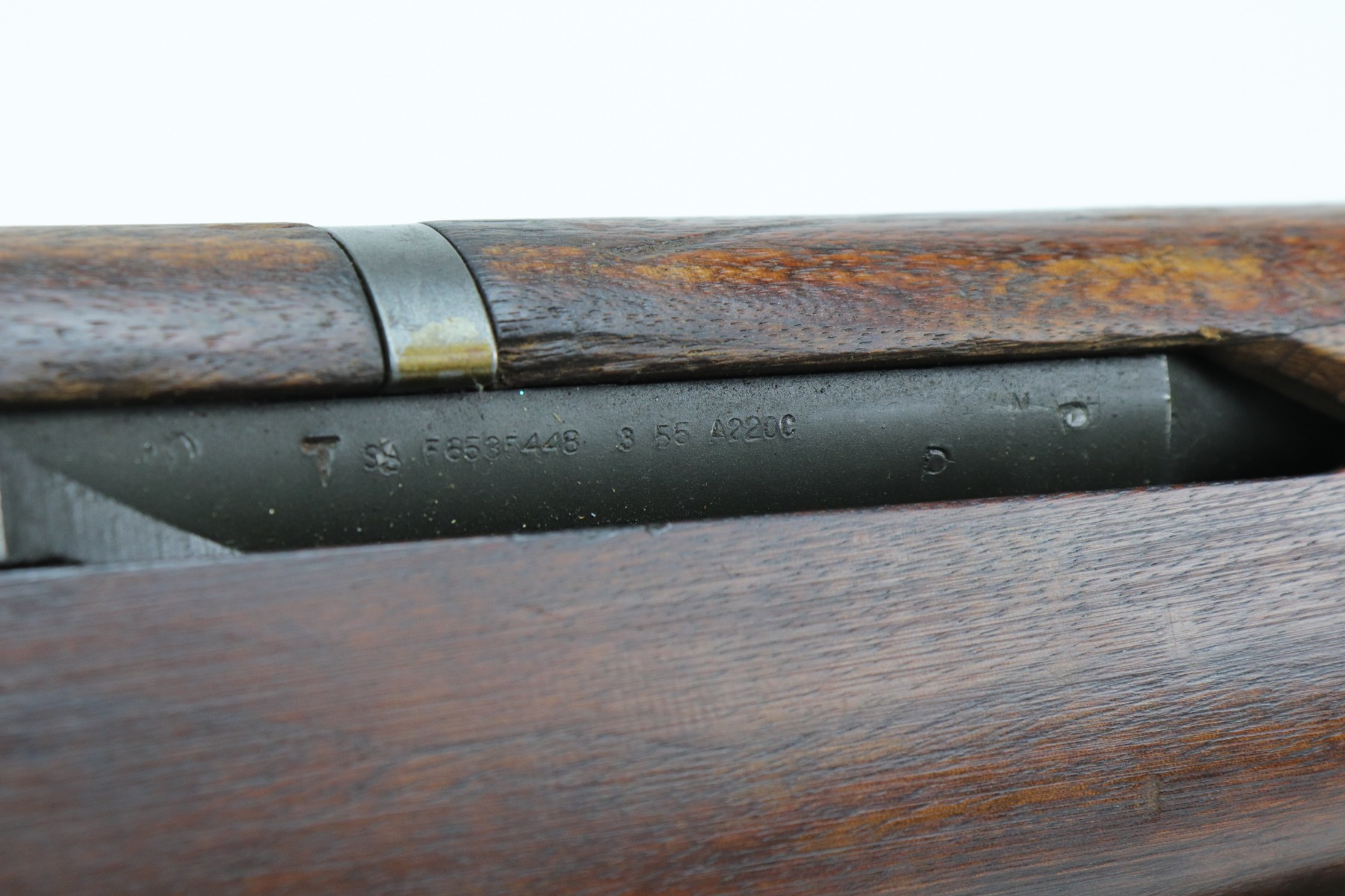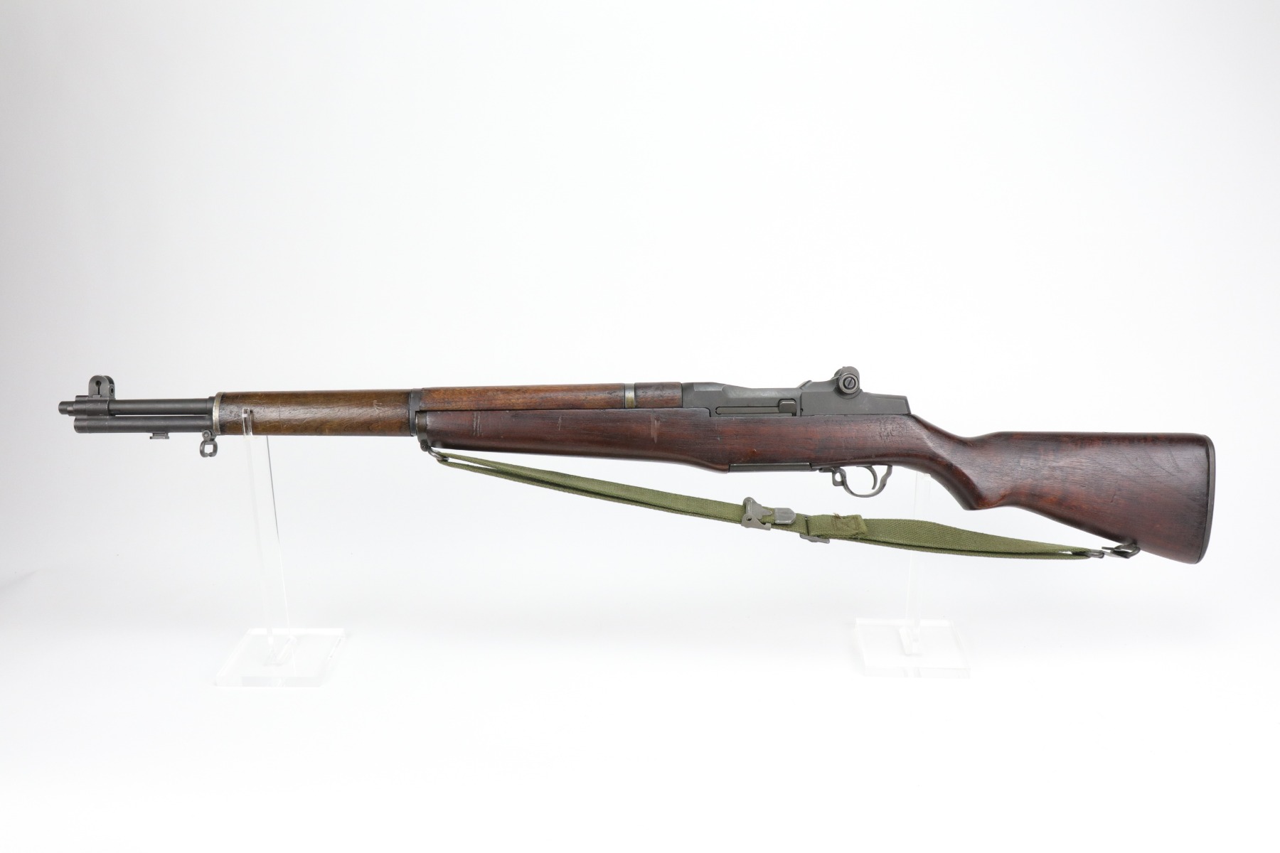2/15/21 – This is an excellent example of a Springfield M1 Garand, manufactured in 1955. The gun is in excellent condition overall except for a few light handling marks here and there and a few small dots of rust on the barrel. The stock has a DOD stamp and is in nice condition – there are just some light scratches and bruises throughout. The gun comes with a canvas sling. Fully functional and the action is smooth. The bore is very nice – shiny with strong rifling with minor fouling in the grooves.