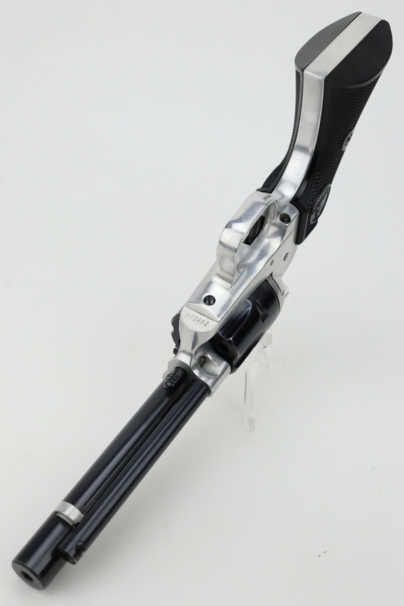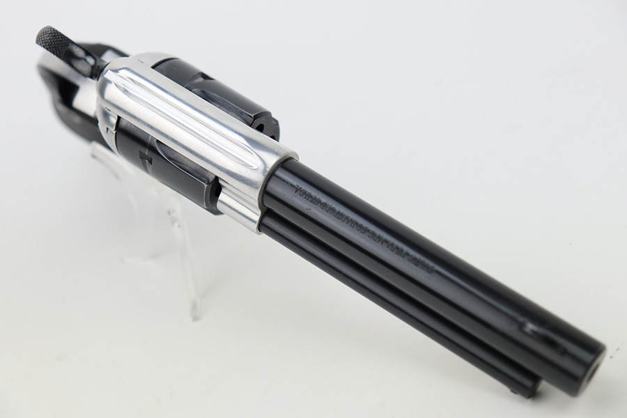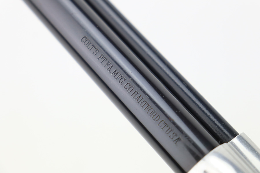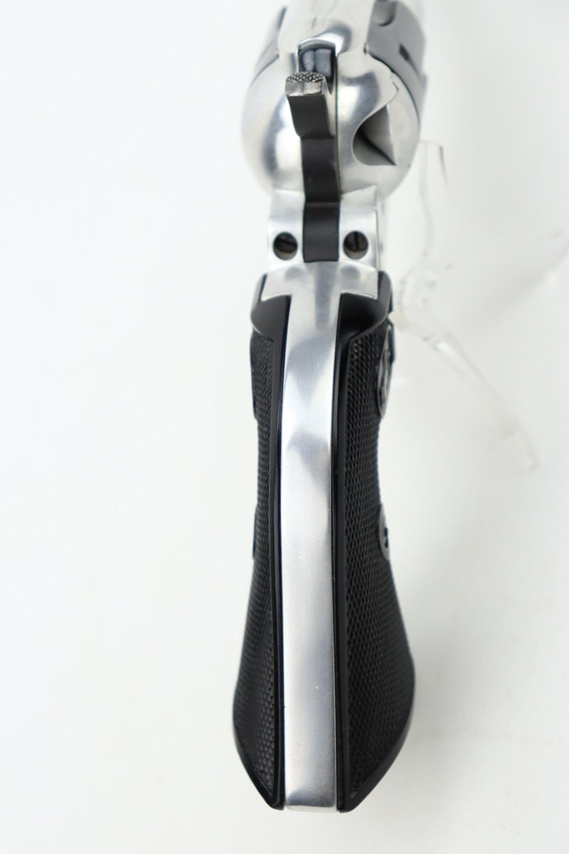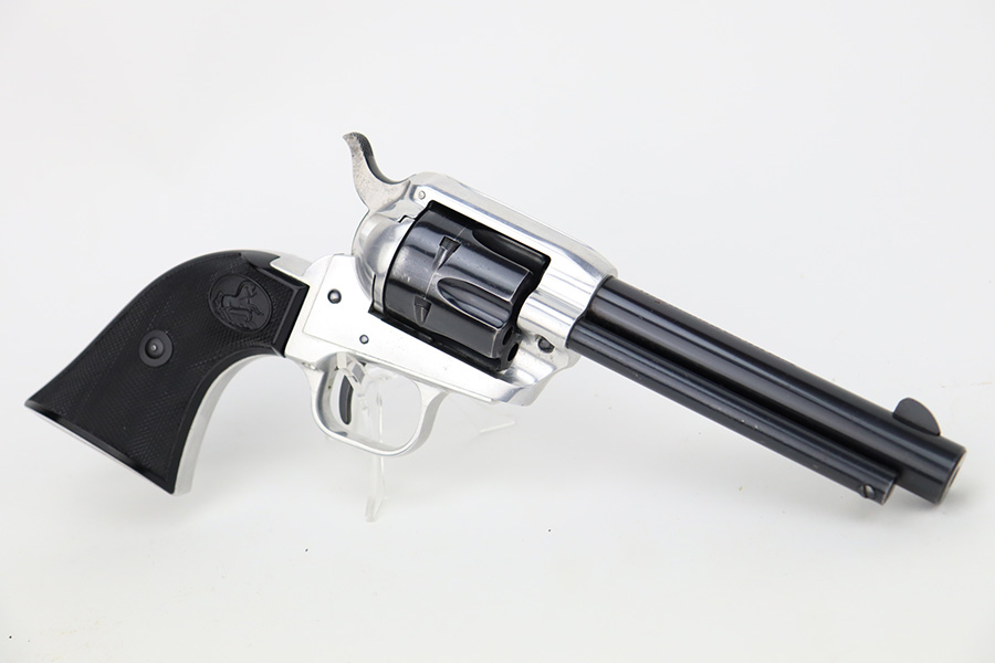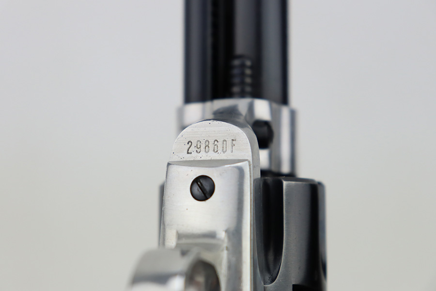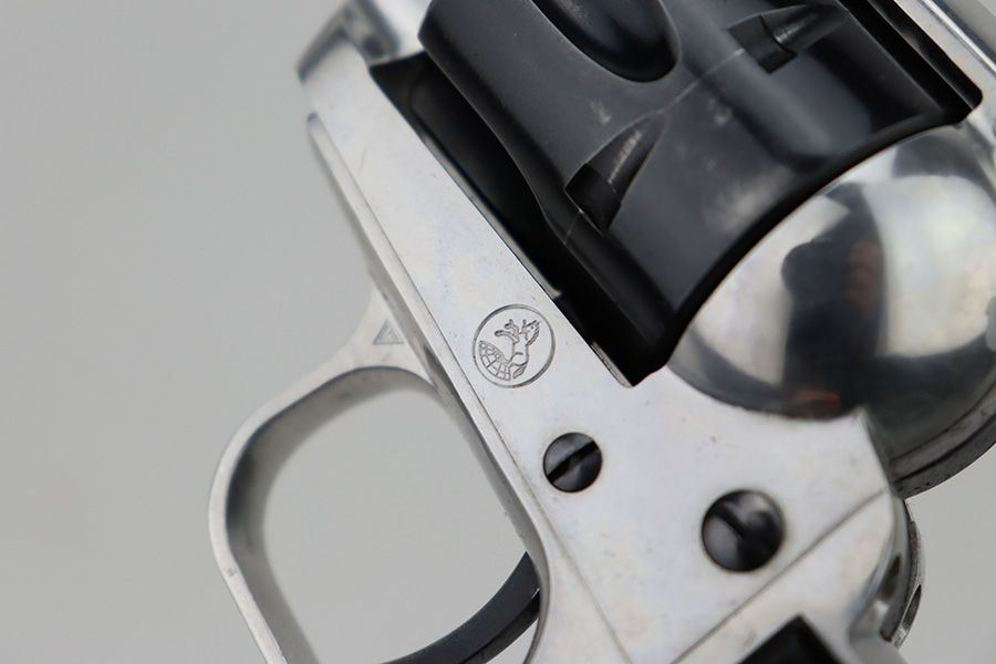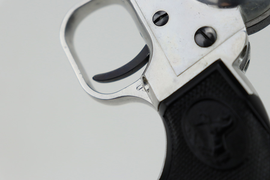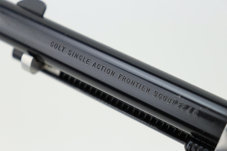1/8/24 – This is a Colt Frontier Scout Revolver, manufactured in 1958 and chambered in .22 LR. It has retained about 97% of its finish with minor muzzle wear, some minor wear on the high edges of the cylinder, and a light roll mark on the cylinder. Fitted with excellent black plastic grips. Mint bore. Smooth action.