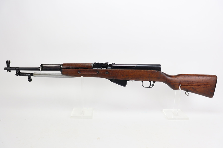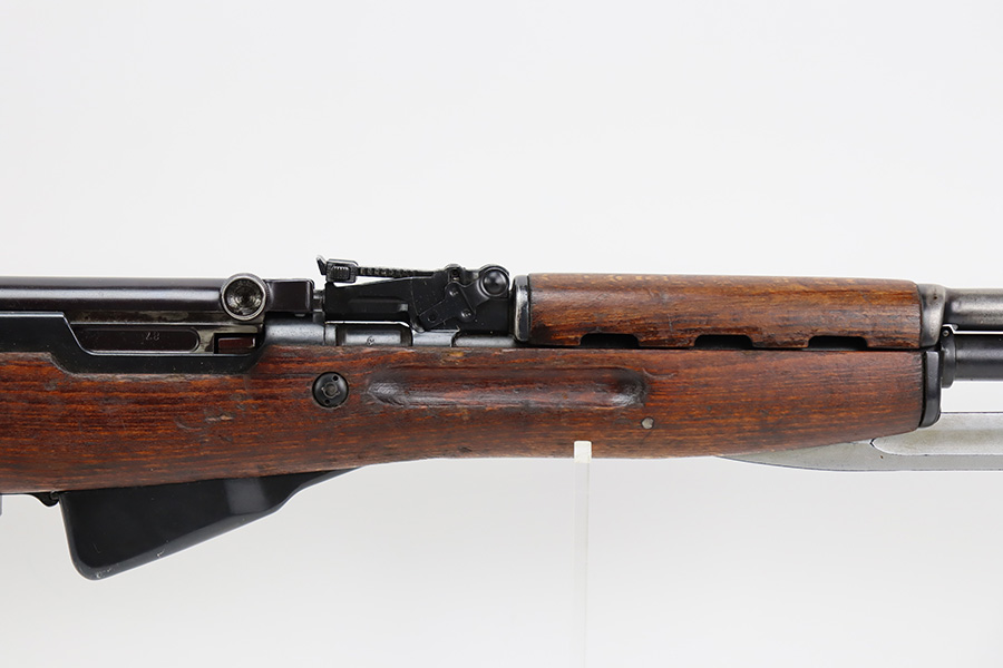 8/25/23 – This is a very nice example of a Romanian Cugir SKS, manufactured in 1959 and chambered in 7.62x39mm. It is all matching, except for the stock, and there is an import mark on the barrel. The metal parts have retained about 90% of their finish with some finish loss on the piston tube. Excellent wood furniture with only minor dings and bruises here and there. Stone-mint bore.