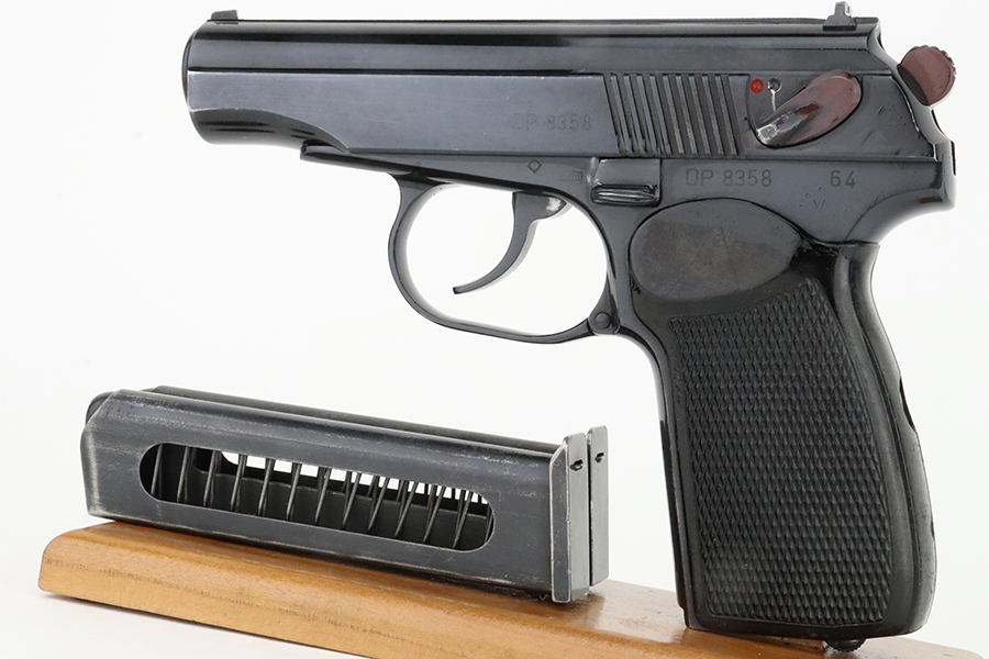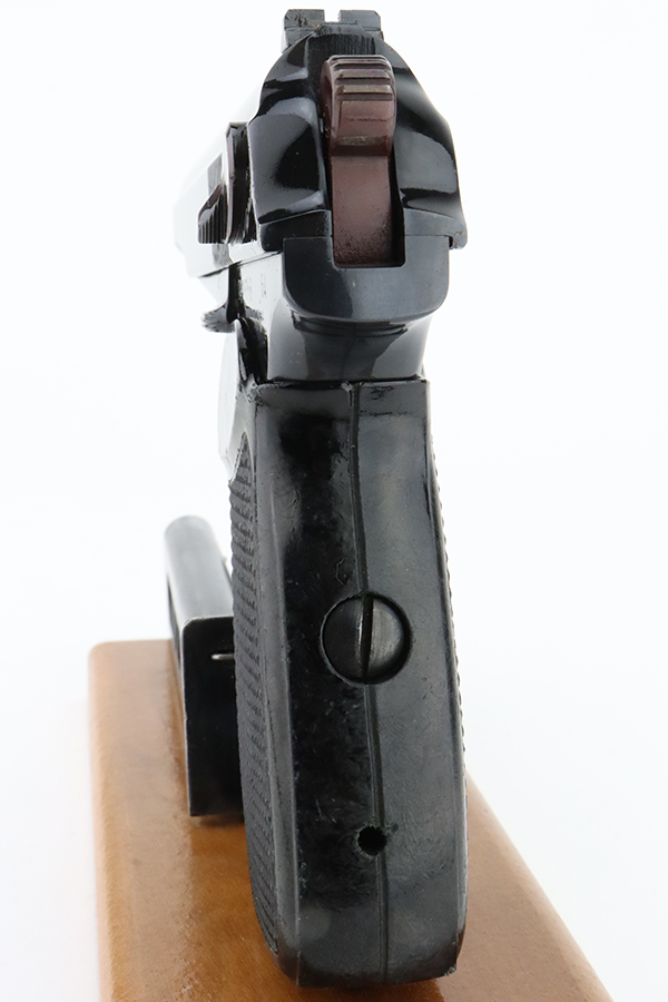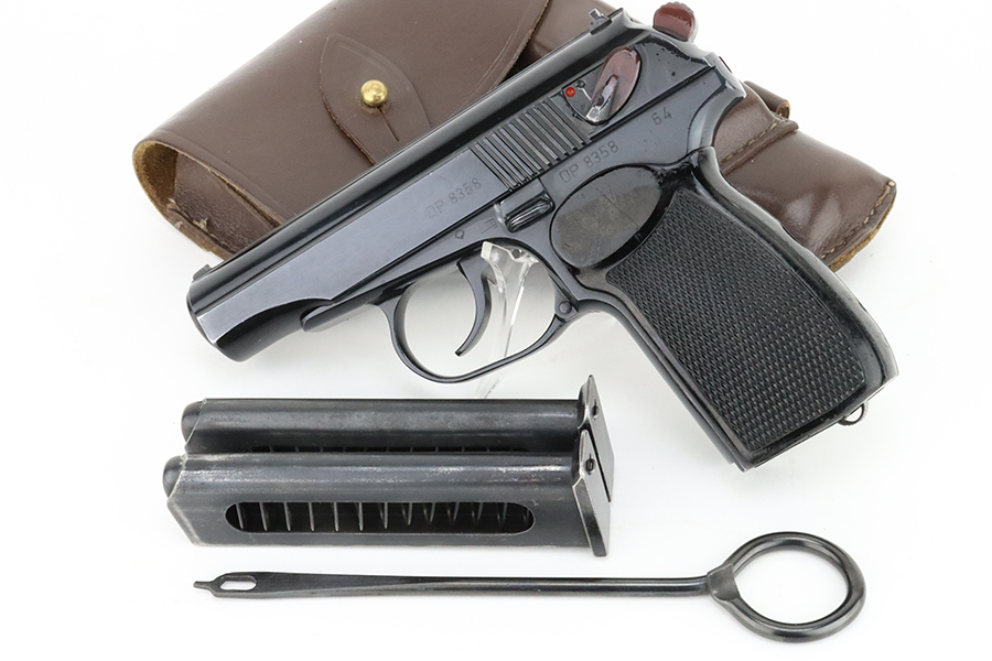 2/28/24 – This is a minty example of an East German Makarov from 1964. All matching and import marked on the frame. It comes as a rig with two proper magazines, a minty 1976-dated holster, and cleaning rod. The gun itself has retained nearly all of its original high polish finish with just minor muzzle wear. Fitted with period-correct bakelite grips. Minty bore.