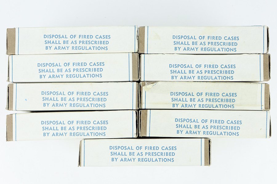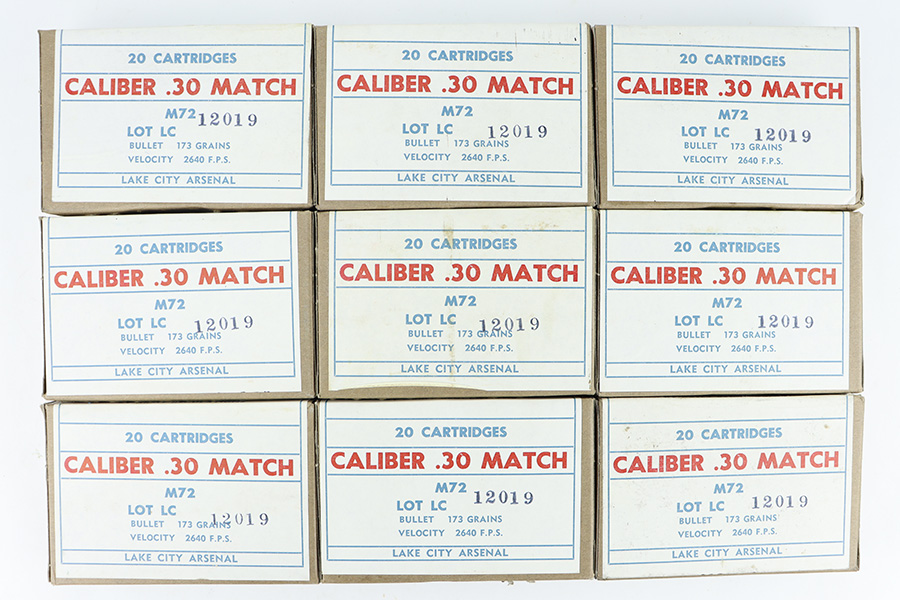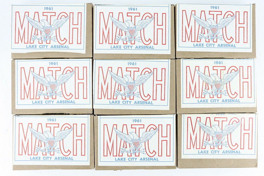 1/4/24 – These are 9 boxes of 1960’s vintage Lake City Arsenal National Match rifle ammunition. 20 rounds per box, 180 rounds total. The boxes are unopened with the original labels intact. There’s some cosmetic wear and light damage on the boxes, but the rounds are excellent. .30-06 ammo for M1 Garand and M1903 rifles.
