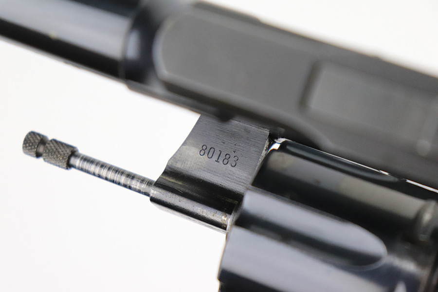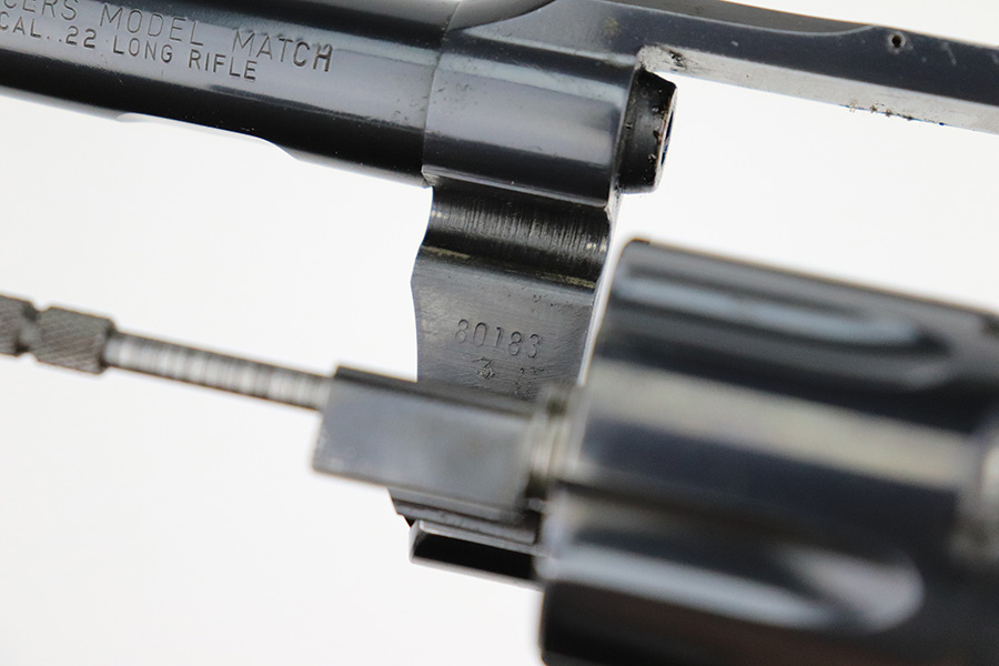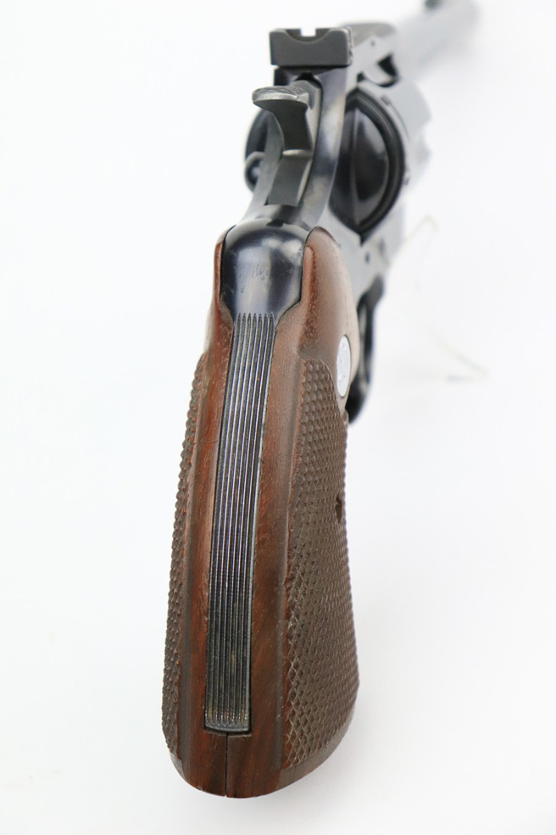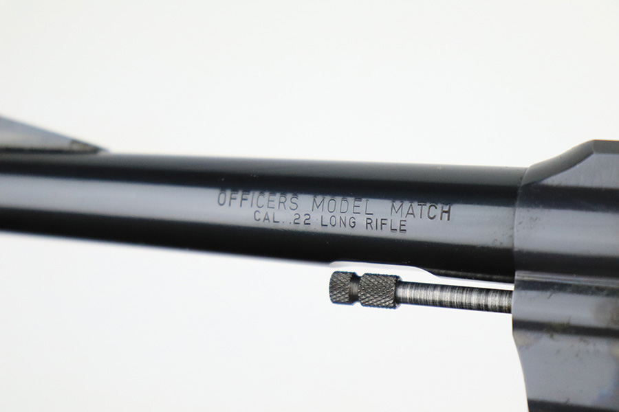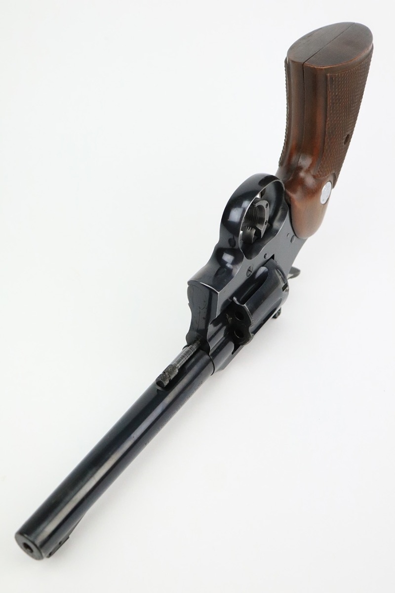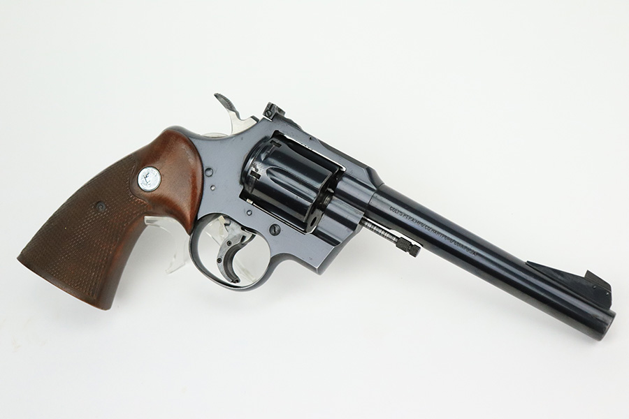 8/11/22 – This is a very nice example of a Colt Officers Model Match revolver, manufactured in 1961 and chambered in .22 LR. The gun is all matching and has retained about 90% of its original high polish bluing. There is just a hint of wear and light oxidation around the muzzle. Most of the finish loss comes in the form of splotchy discoloration on the cylinder. The rest of the gun is actually very nice. Comes with excellent Walnut grips. The bore has strong rifling, but there is a small area with tiny dots of oxidation. The cylinder is tight, and the action is very smooth.