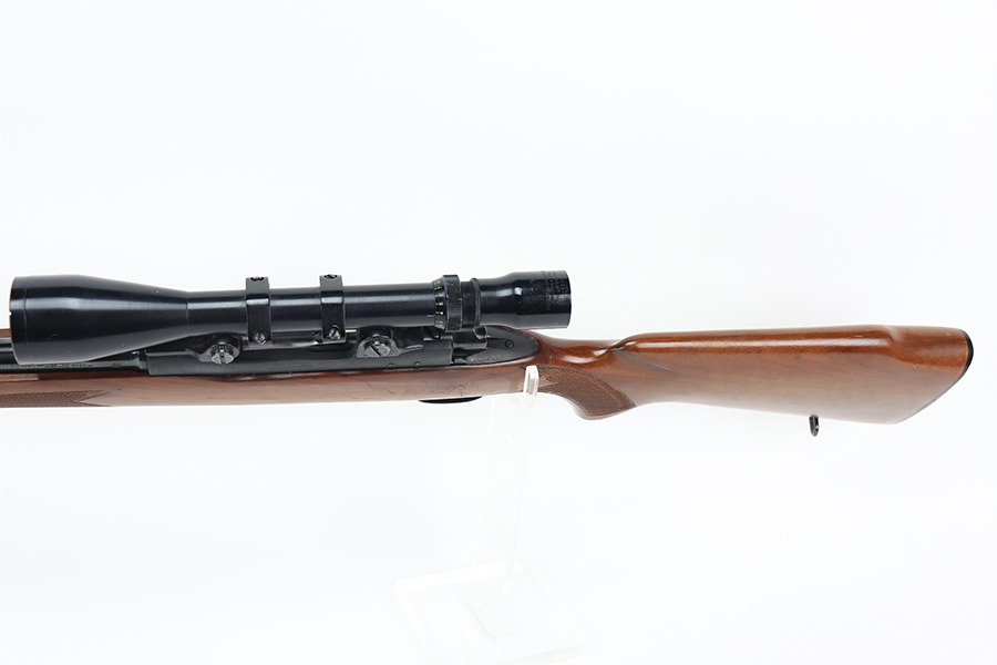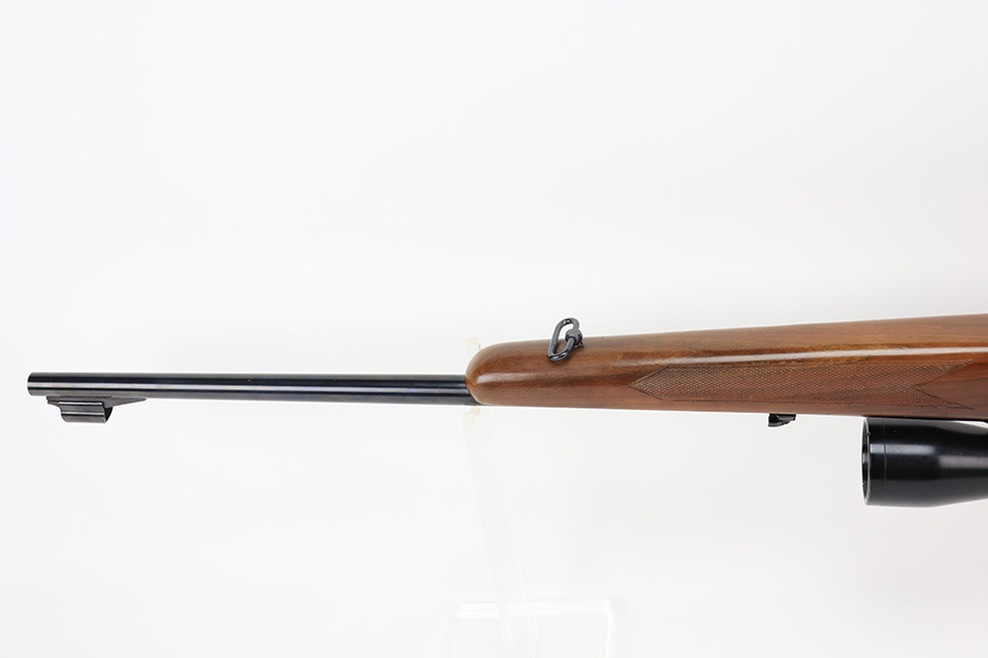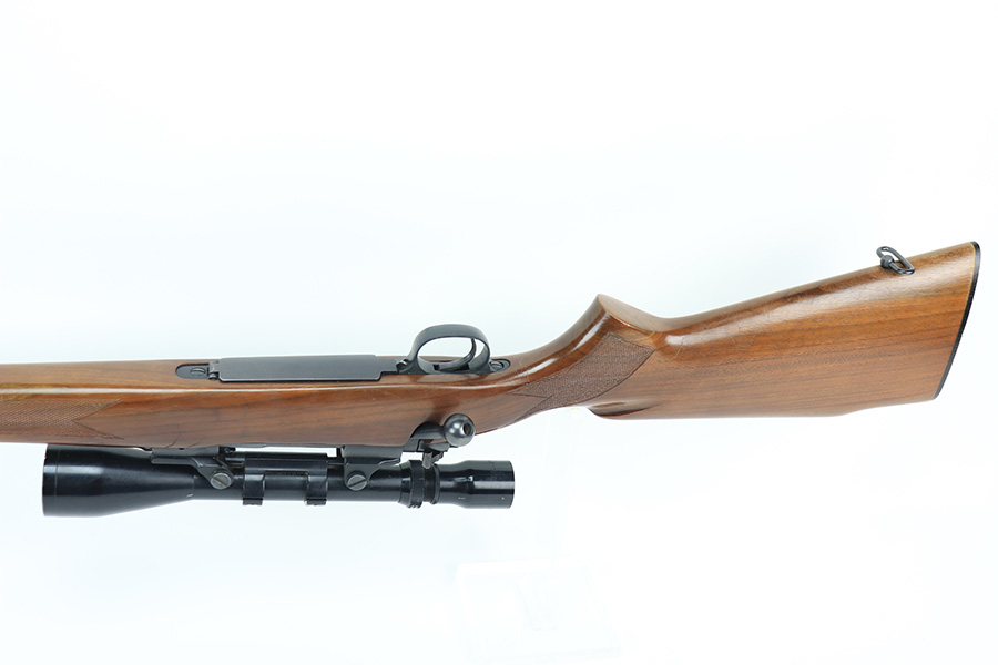 1/19/22 – This is an excellent example of a Winchester Model 70 bolt action rifle manufactured in 1961. The gun comes equipped with Bausch & Lomb Optics Scope rings and a vintage 2.5-8x Bausch & Lomb rifle scope. The optics are nice but slightly cloudy (probably could use a cleaning). The gun is all correct and in excellent condition, retaining nearly all of its finish. There is just a hint of wear around the muzzle, very minor thinning on the floor plate, and some light freckling on the trigger guard. The stock is very nice with a few minor scratches and very light chipping in the finish on both sides. The bore is mint. It is fully functional, and the action is very smooth.