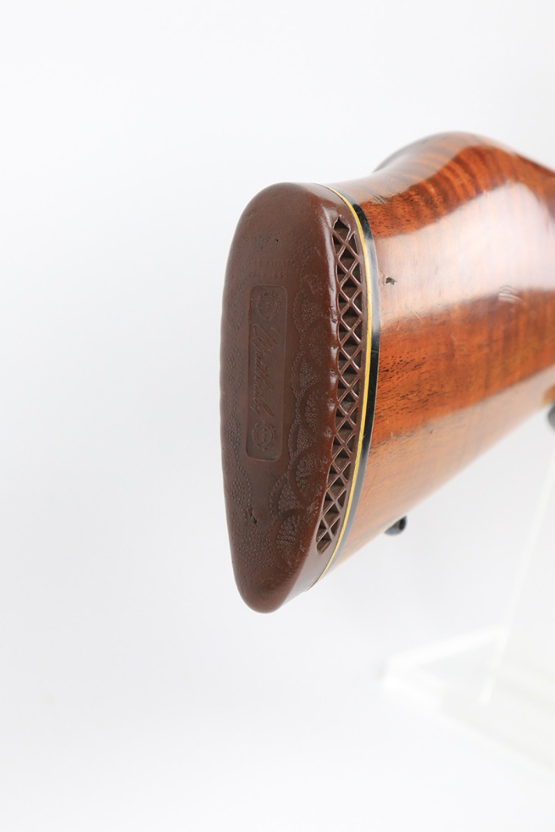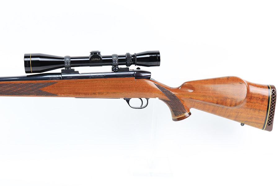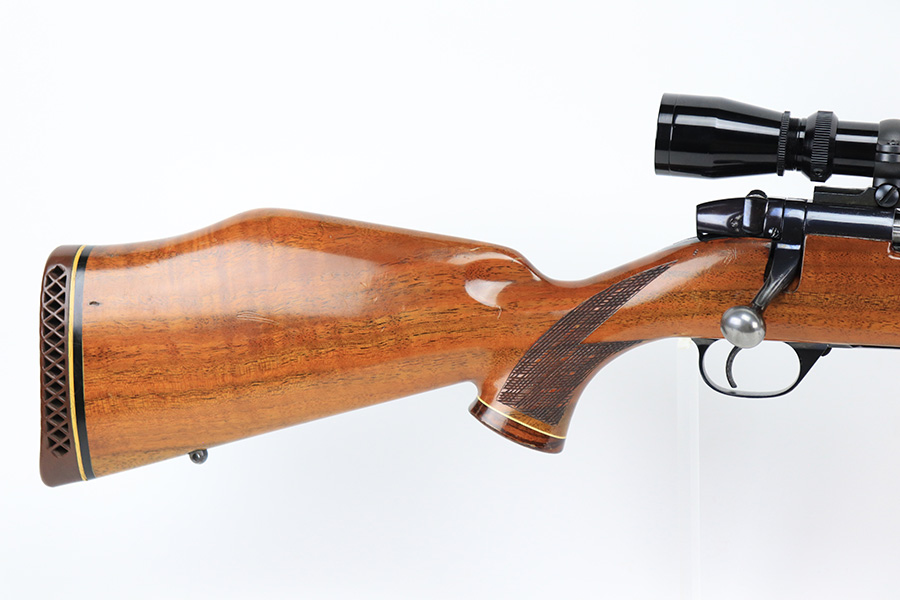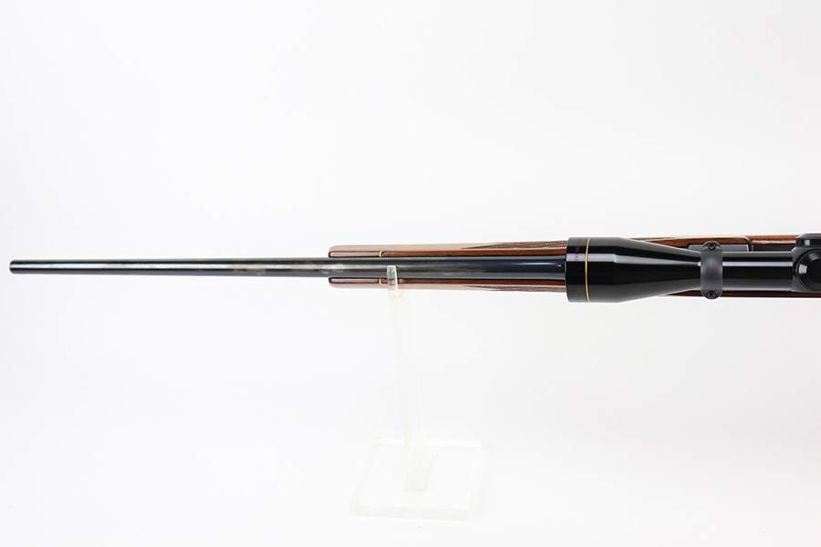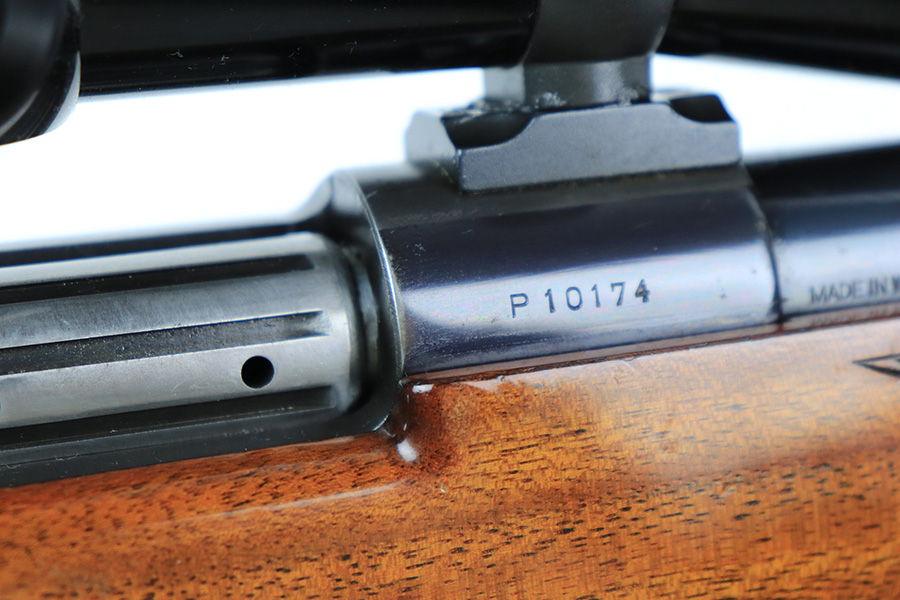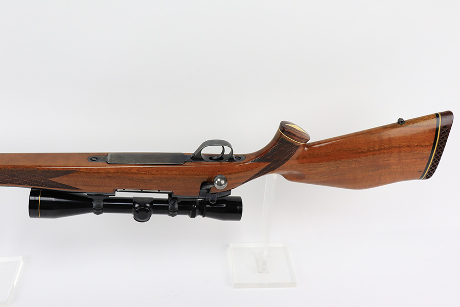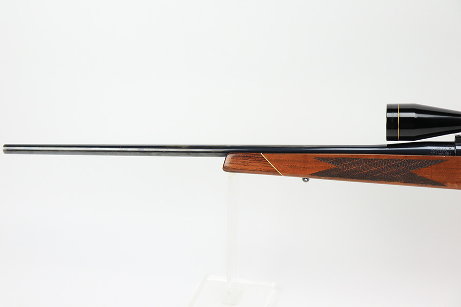 4/26/22 – This is an excellent example of a Weatherby Mark V Deluxe bolt action rifle. It was manufactured in 1964 and is chambered in .257 Weatherby Magnum. It has a 24 inch barrel that was cold hammer forged by JP Sauer. Comes equipped with a Leupold 3-9x rifle scope (excellent optics). Overall, the gun is in excellent condition. It has retained most of its original high polish bluing, but there is an area of noticeable wear on the top of the barrel, light scratches along the barrel, and minor muzzle wear. Some light scratchy wear on the floor plate. Comes with an excellent hand-checkered wood stock with minor handling marks here and there. The action is super smooth. Mint bore.