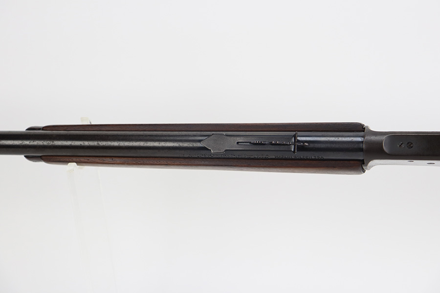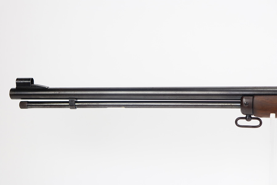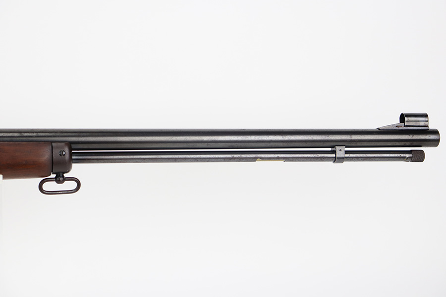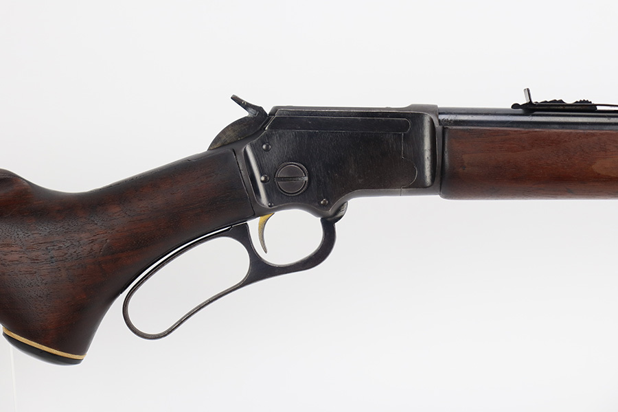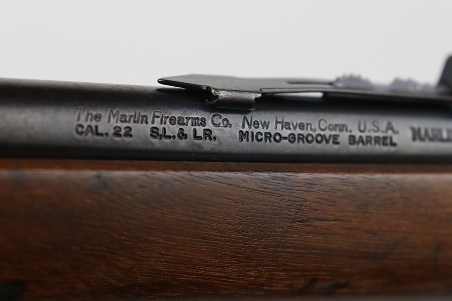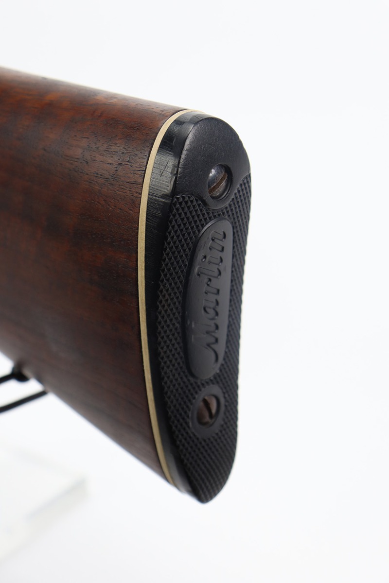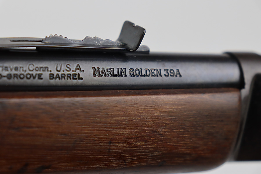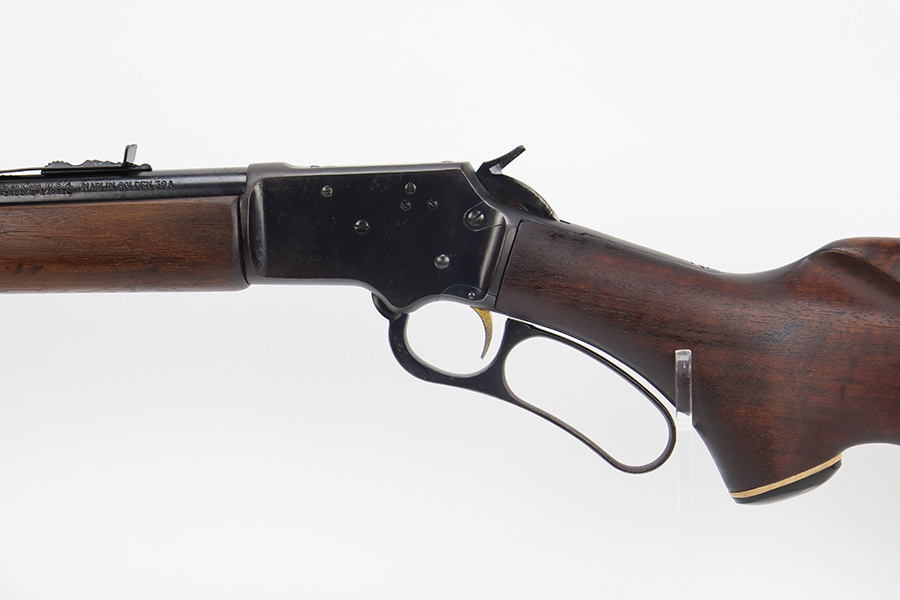 8/16/23 – This is a very nice example of a Marlin Golden 39A lever action rifle, manufactured in 1965 and chambered in .22 short, long, and long rifle. There is almost no actual finish loss on the metal parts. However, there is light spotty oxidation throughout. Minty wood furniture. Mint bore.