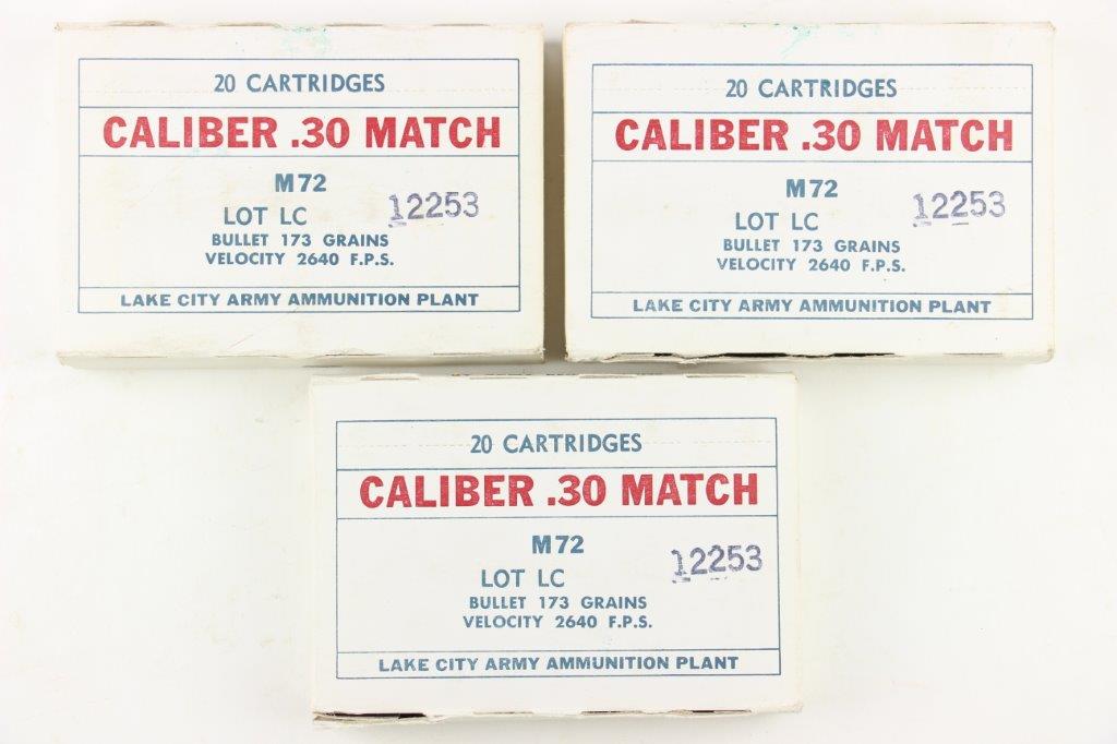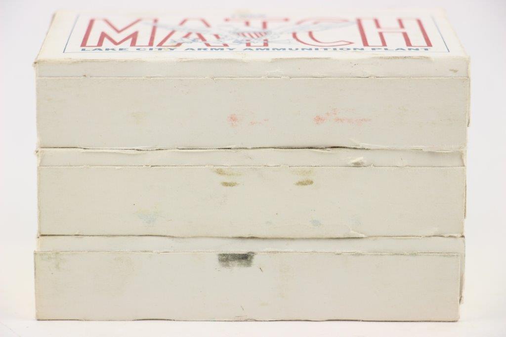 6/18/24 – These are 1968 production National Match .30-06 ammunition from Lake City Army Ammunition Plant. 3 boxes, each with 20 rounds and completely sealed. Each box is ink stamped with the same lot number “12253”. Excellent condition collector ammo.