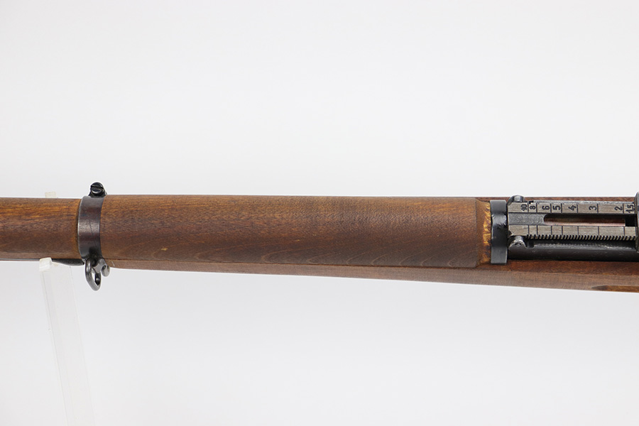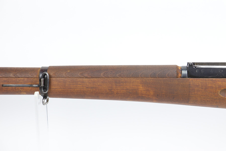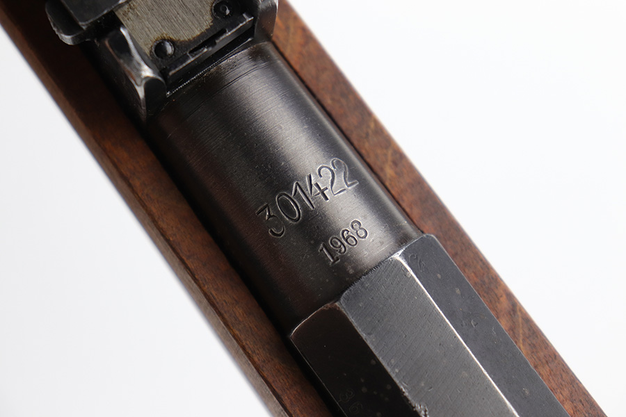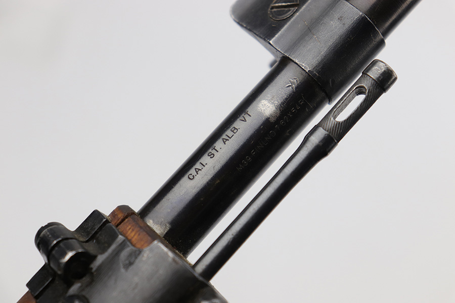 6/16/23 – This is an excellent example of a Finnish Sako Mosin-Nagant M39 rifle, manufactured in 1968. Bolt and receiver are matching, but there is an import mark on the barrel. These are sometimes referred to as “sneak” rifles, due to their lack of identifying manufacturer markings. The metal parts have retained about 90% of their finish. The majority of the wear is on the butt plate, but there is also minor muzzle wear, very minor wear on the high edges, some light scratchy wear on the magazine, and some tiny dots of discoloration on the receiver. Minty wood furniture. Near-mint bore.