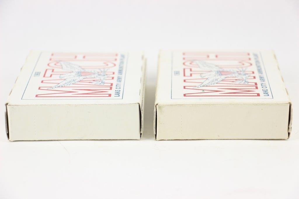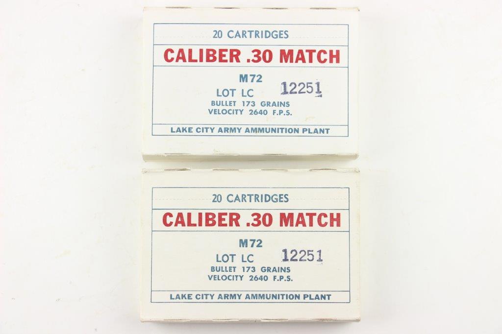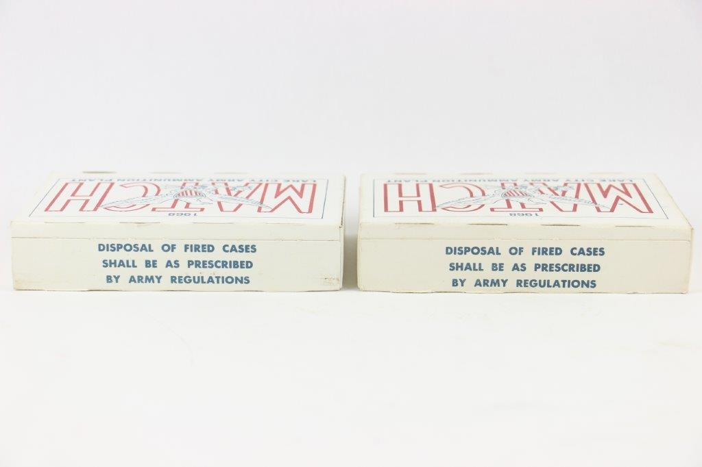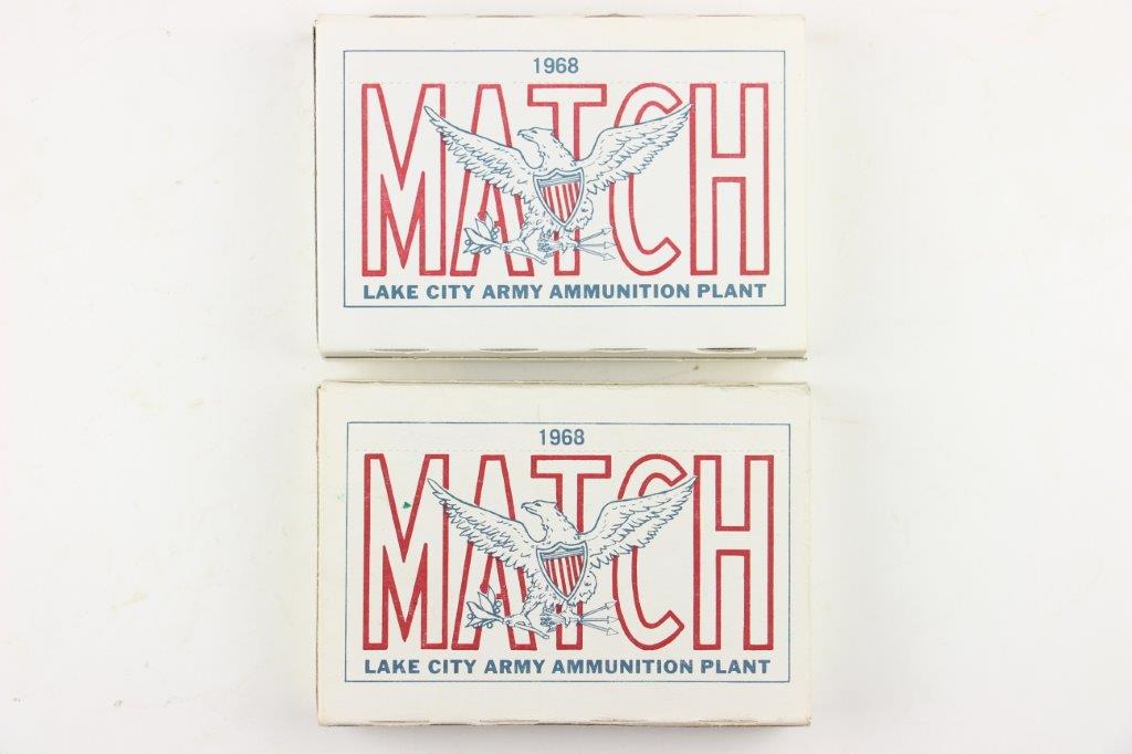 6/16/24 – These are two original boxes of 1968 production M72 Caliber .30 Match rifle ammunition. 40 rounds total. Both boxes are in great condition, unopened with all rounds contained inside. Both are Lot LC 12251.