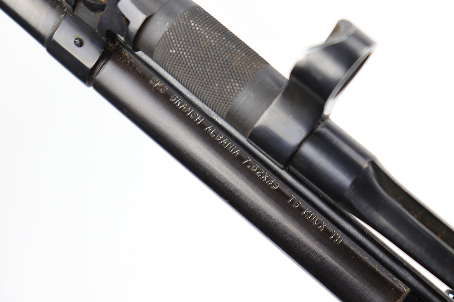 6/15/23 – This is an excellent example of an Albanian SKS Type 56 manufactured at the Gramsh Factory in 1969. It is completely matching but has an import mark on the underside of the barrel. The metal parts have retained about 96-97% of their finish with just some small dots of discoloration and tiny scratches here and there. Very nice wood furniture, but there is some light chipping in the finish and some minor scratching. Mint bore. Comes with a green canvas sling.