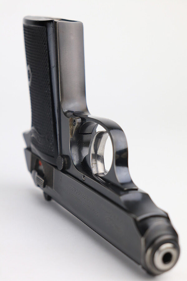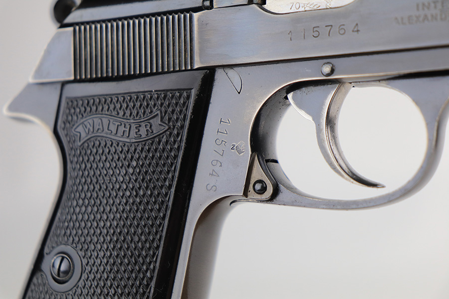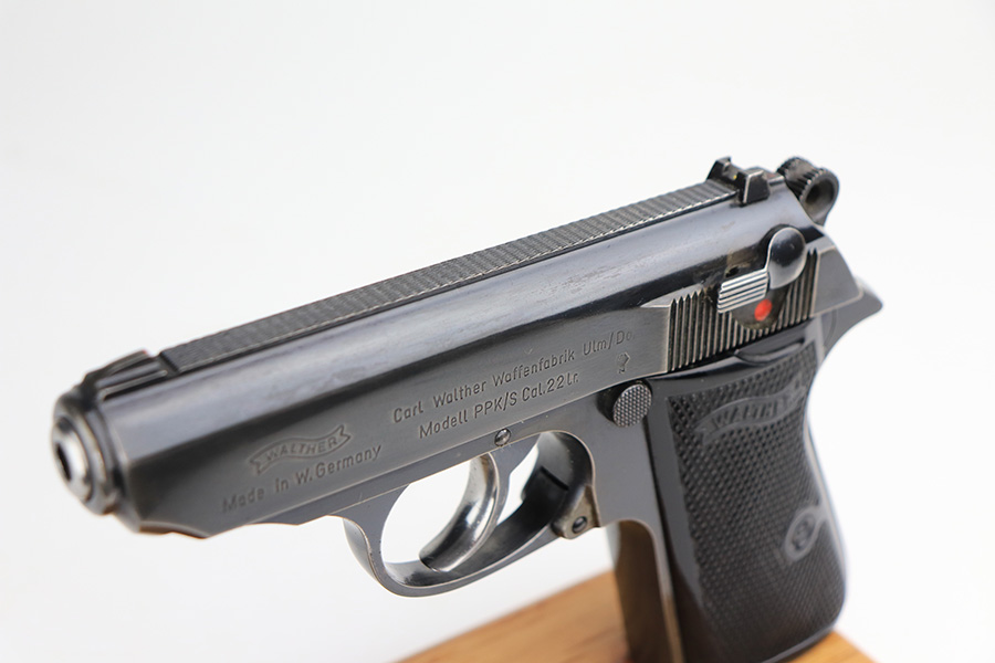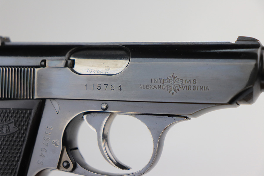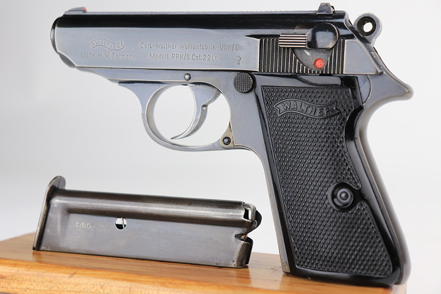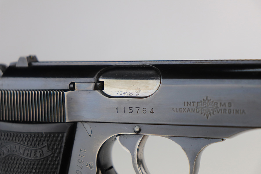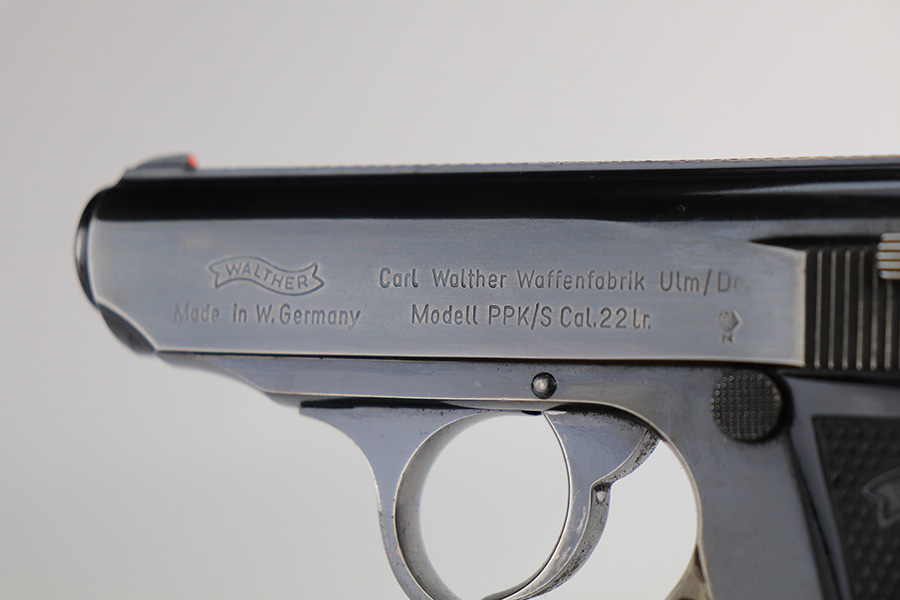 1/13/22 – This is a nice example of a Walther PPK/S manufactured in 1970 and chambered in .22 LR. The gun is all matching and has the proper West German proofs. Interarms import mark on the right side of the slide. The bluing on the gun has been touched up in a few places. Generally, there is minor wear around the high edges and some minor thinning on the grip straps. Comes with excellent black plastic grips and one proper magazine. The bore is near-mint. This gun would make a fantastic shooter.