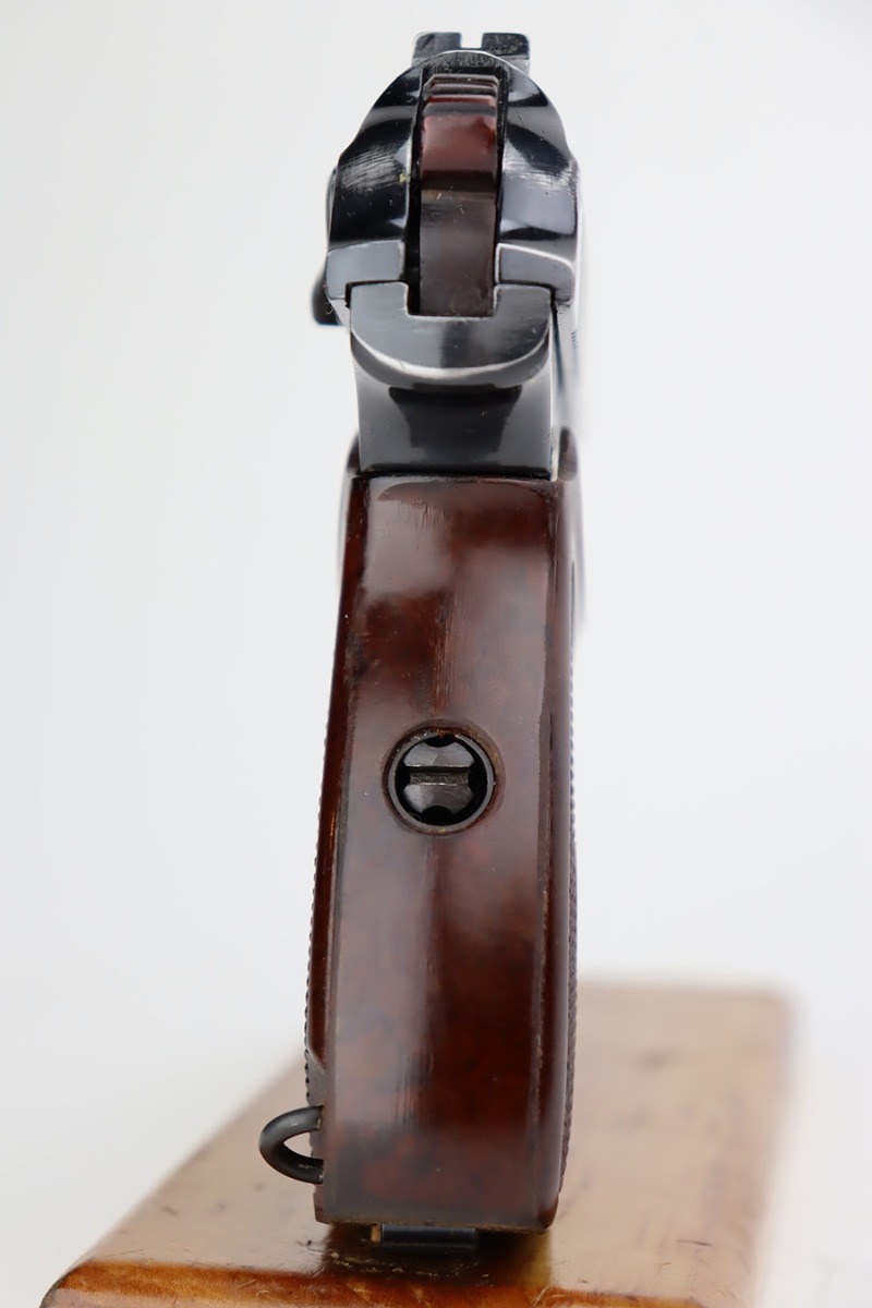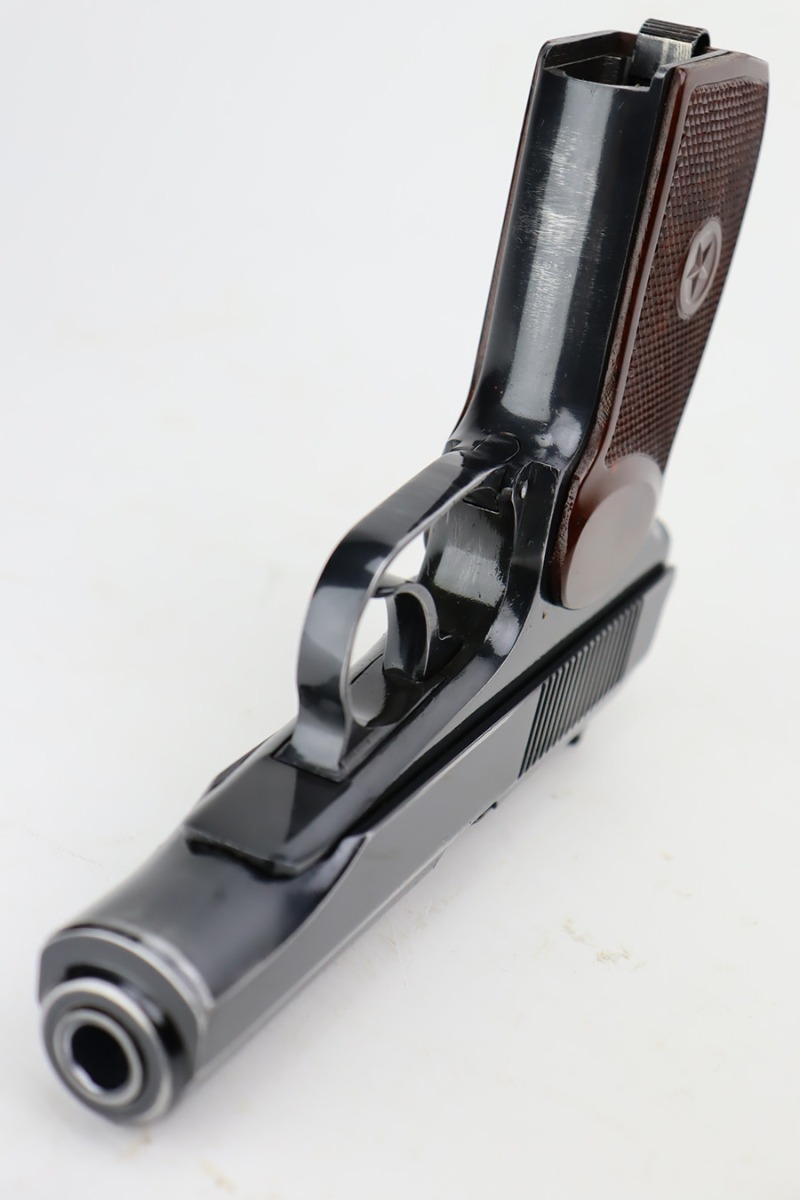 9/19/23 – This is a very nice example of a Bulgarian Makarov manufactured in 1979. It is all matching, has the proper “Circle 10” arsenal marking, and has no import marks. It has retained somewhere between 85-90% of its original high polish finish. There is general high edge wear and thinning on the front strap. Fitted with an excellent reddish bakelite grip. Mint bore.