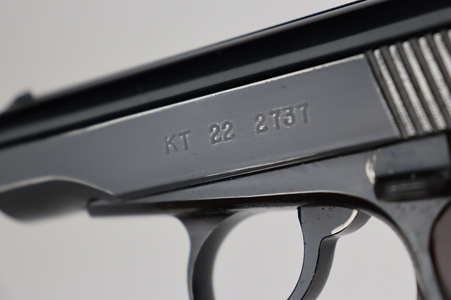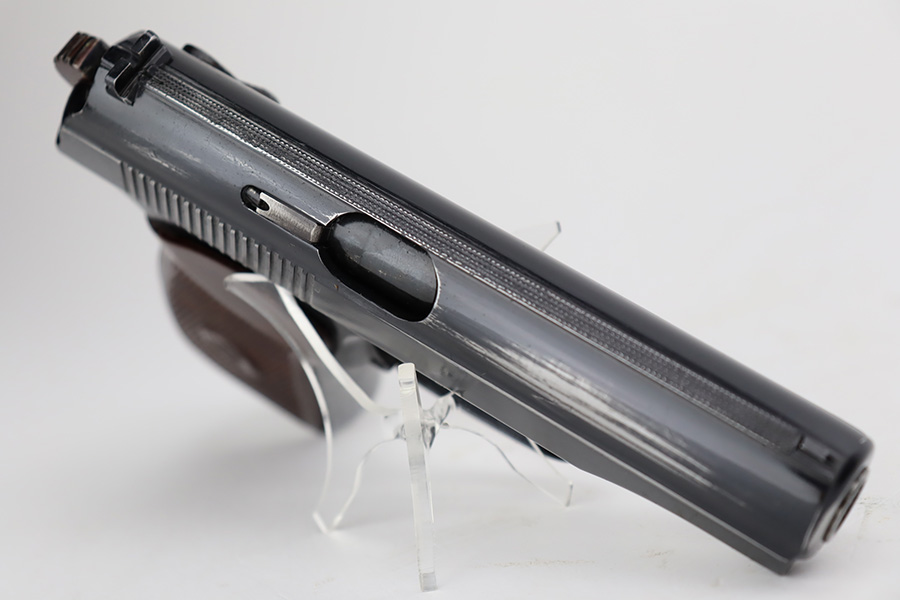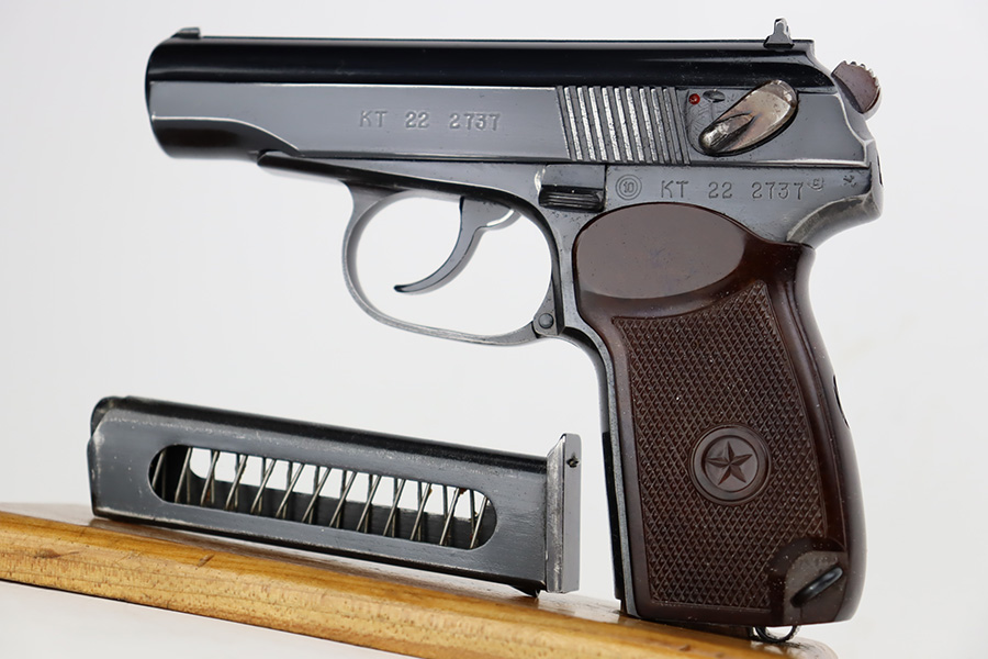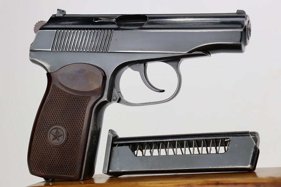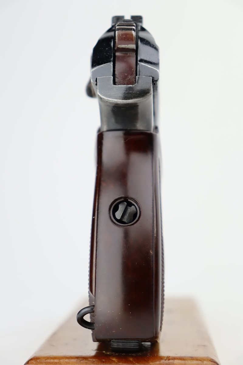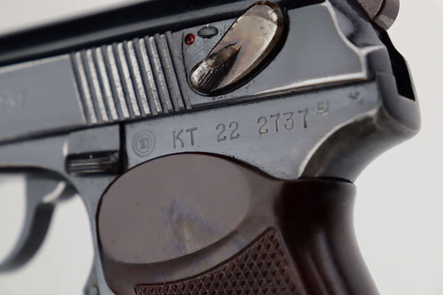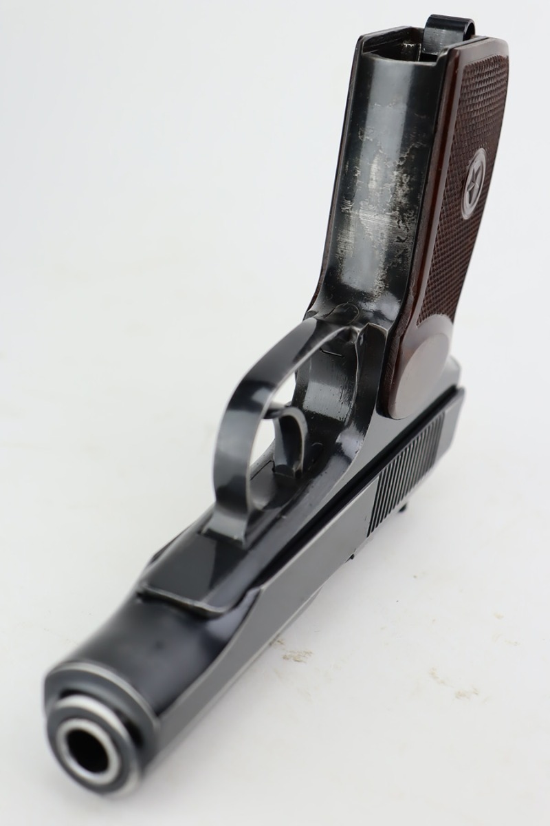 9/26/23 – This is a nice example of a Bulgarian Makarov manufactured in 1982. It is all matching, has the proper “Circle 10” arsenal marking, and has no import marks. It has retained roughly 80% of its original high polish finish. There is general high edge wear, wear along the right side of the slide, and obvious splotchy discoloration on the front strap. Fitted with an excellent reddish bakelite grip. Mint bore.