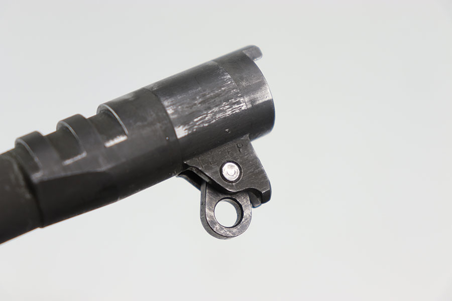 7/15/24 -This is a 1986 USGI replacement barrel that has been magnafluxed and proof tested. The barrel is marked “M” on the left side of the lug and “P” on the right side of the lug.. The injection port area has a serial number starting with “779…” which is the blueprint number for a replacement barrel. In that same area it is dated “85.” The finish on this barrel is in good+ condition with some honest wear but it has a very clean bore 9/10. Comes with link and pin.