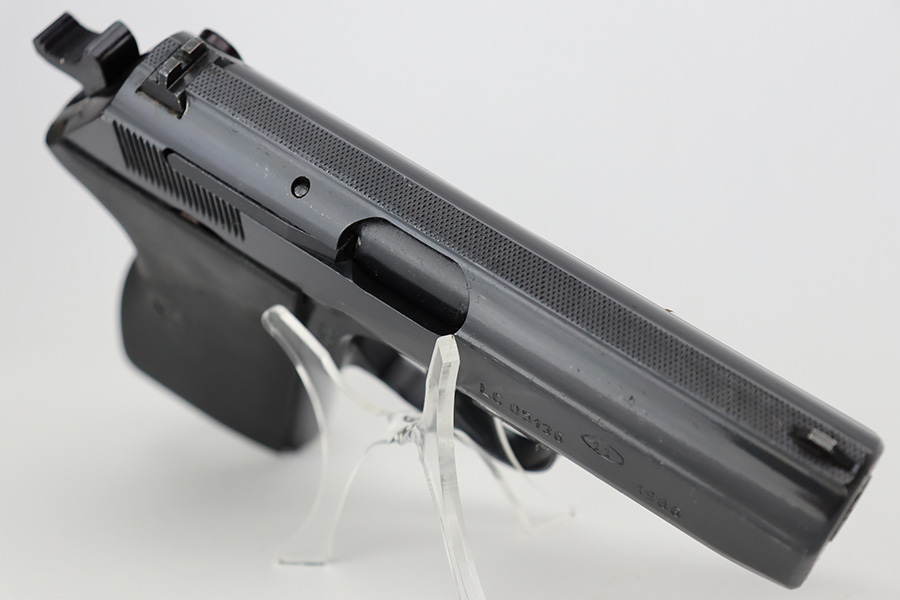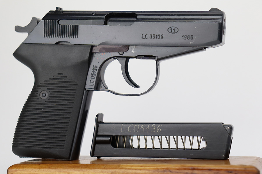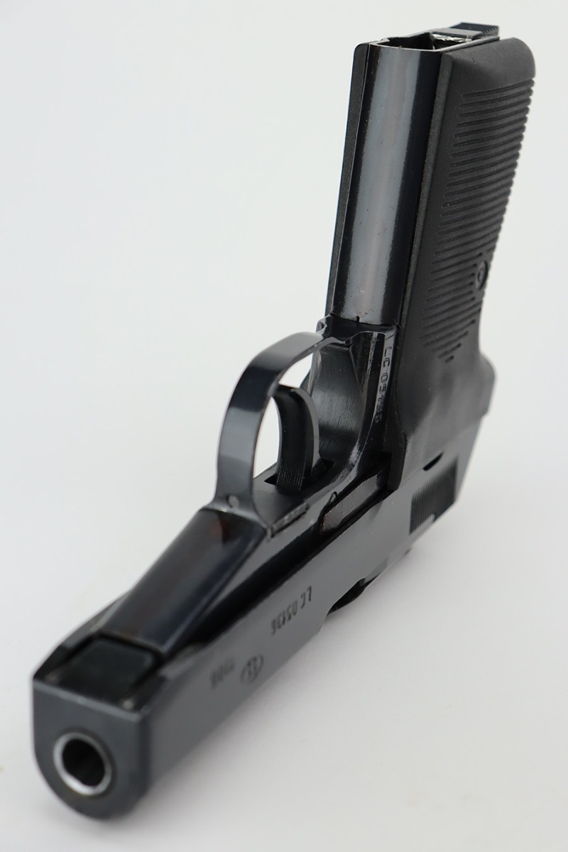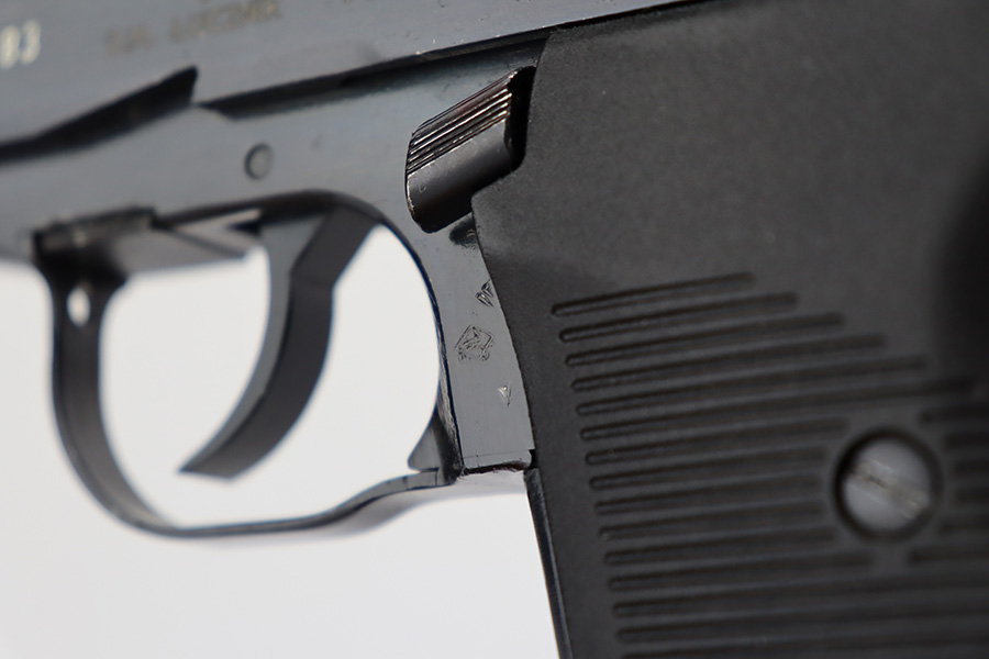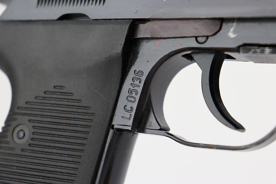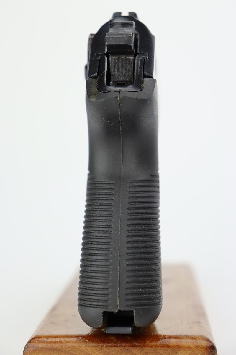 8/2/23 – This is a minty example of a Polish Radom P-83 double action pistol, manufactured in 1986 and chambered in 9mm Makarov. All matching with an import mark on the left side of the slide. It has retained nearly all of its finish with just some tiny scratches along both sides of the slide. Fitted with excellent black plastic grips. Comes with one matching-numbered magazine. Mint bore.