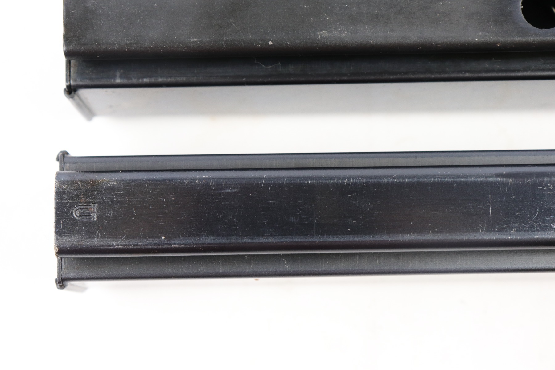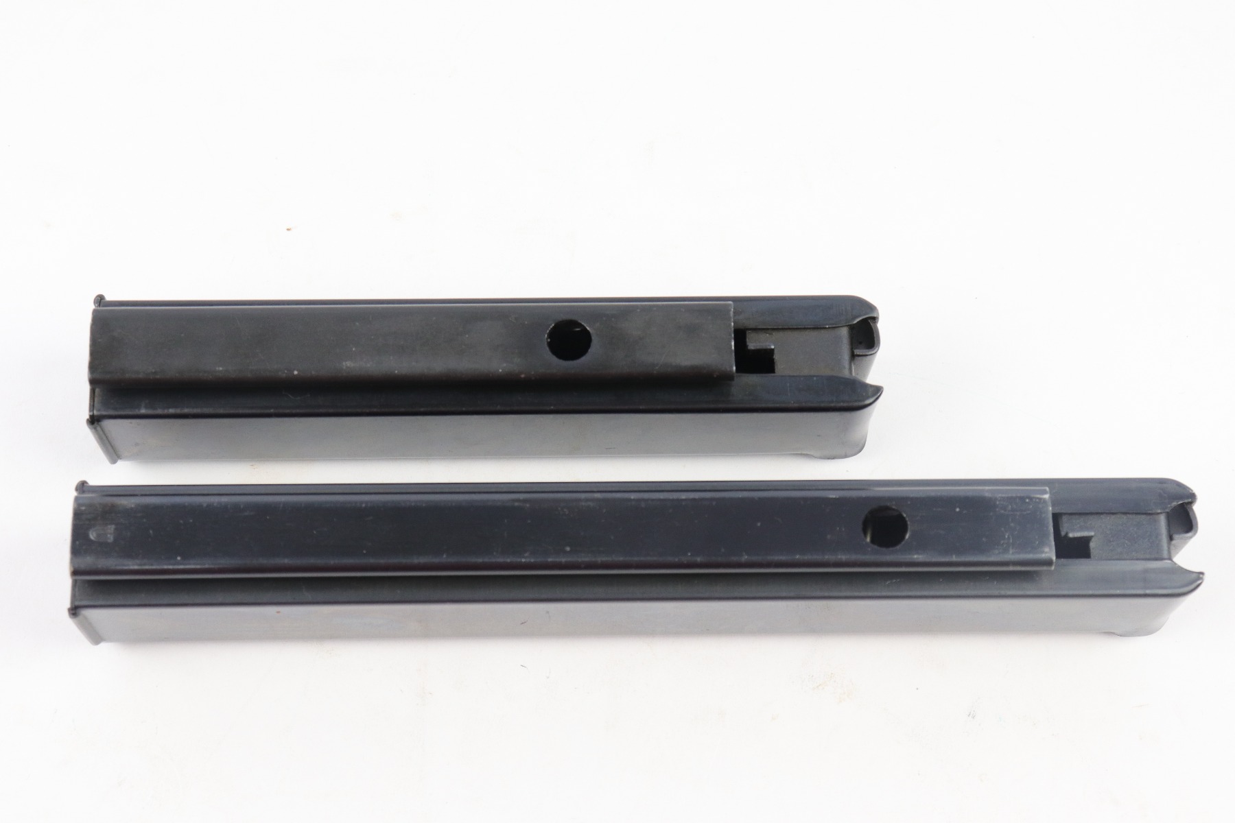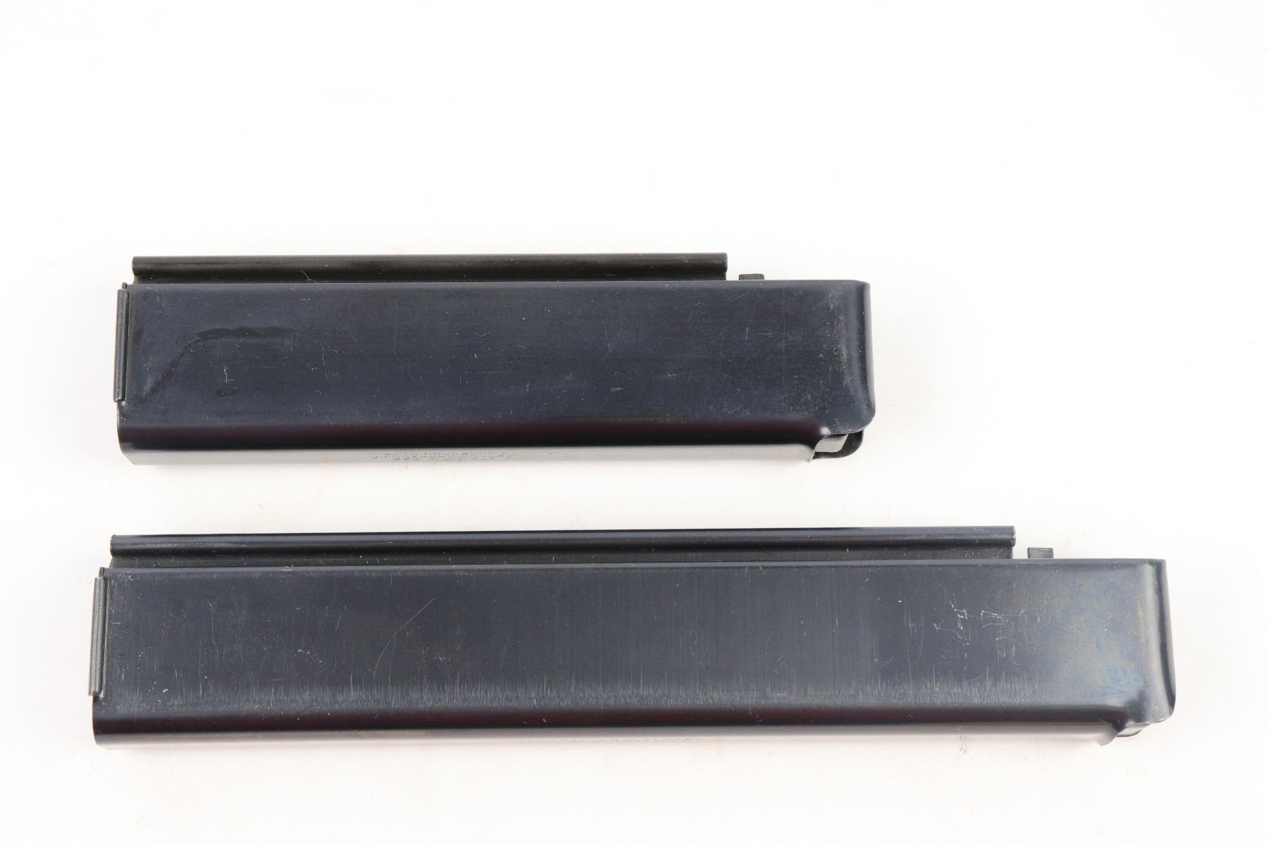 4/9/18 – This is a set of two original Auto-Ordnance Thompson submachine gun magazines. The magazines hold 20 and 30 rounds. They’re both in excellent condition and Auto-Ordnance maker marked on the front spine. The springs are strong and fully functional with no mechanical issues. Guaranteed original and authentic.