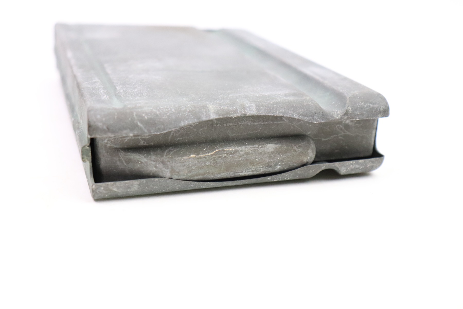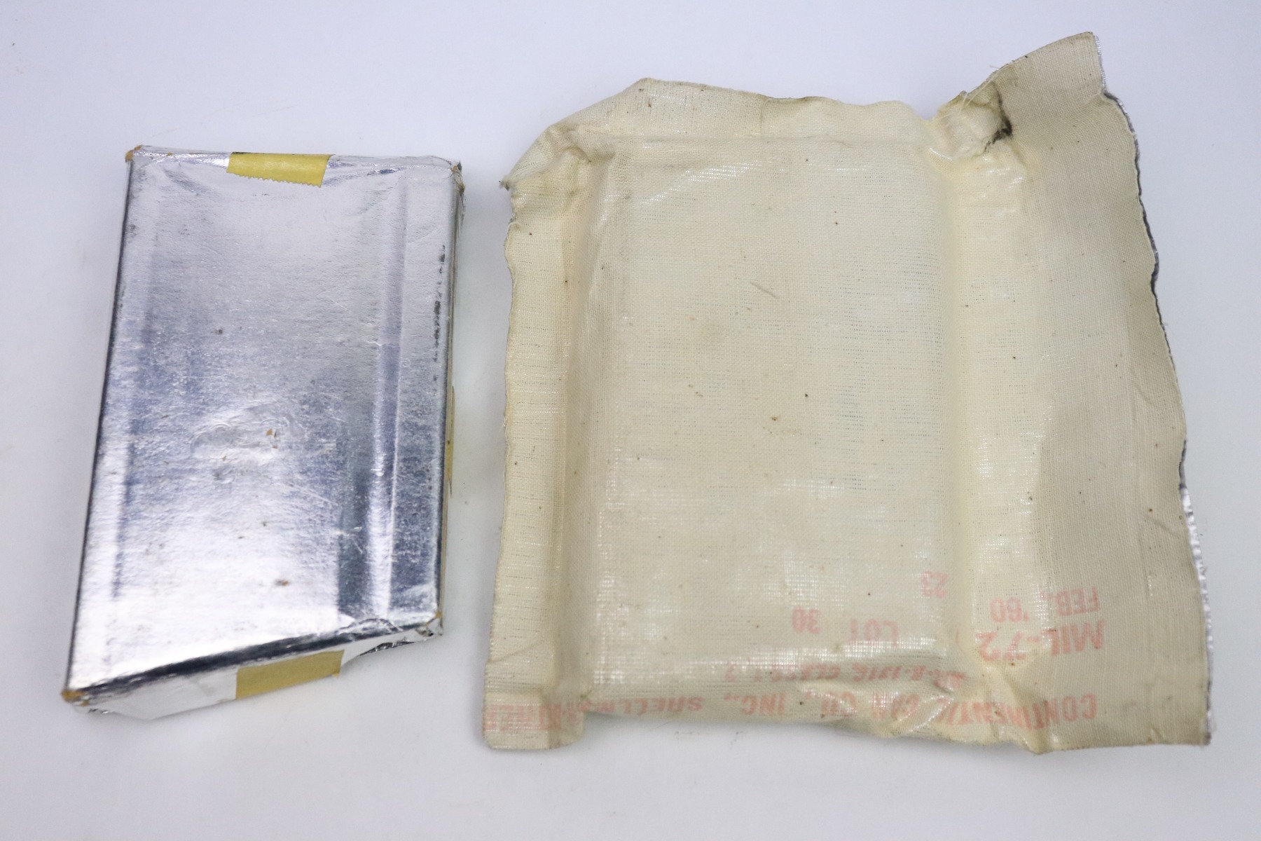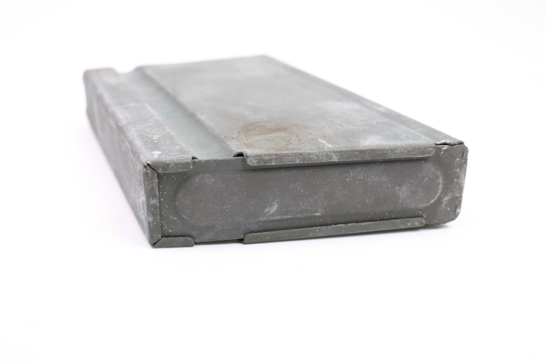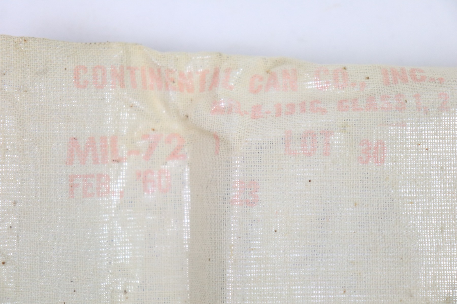12/1/22 – This is a pair of BAR M1918 magazines. The magazines both come in their original wrapping, as shown. We opened / unwrapped one of the magazines for photos, and this magazine had no markings or stamps but is in great overall condition with some mild surface discoloration as shown. The spring is strong and excellent. We assume these both hold 20 rounds of .30-06 ammunition. The magazine with unopened wrapping is dated 1960 on the exterior in ink.