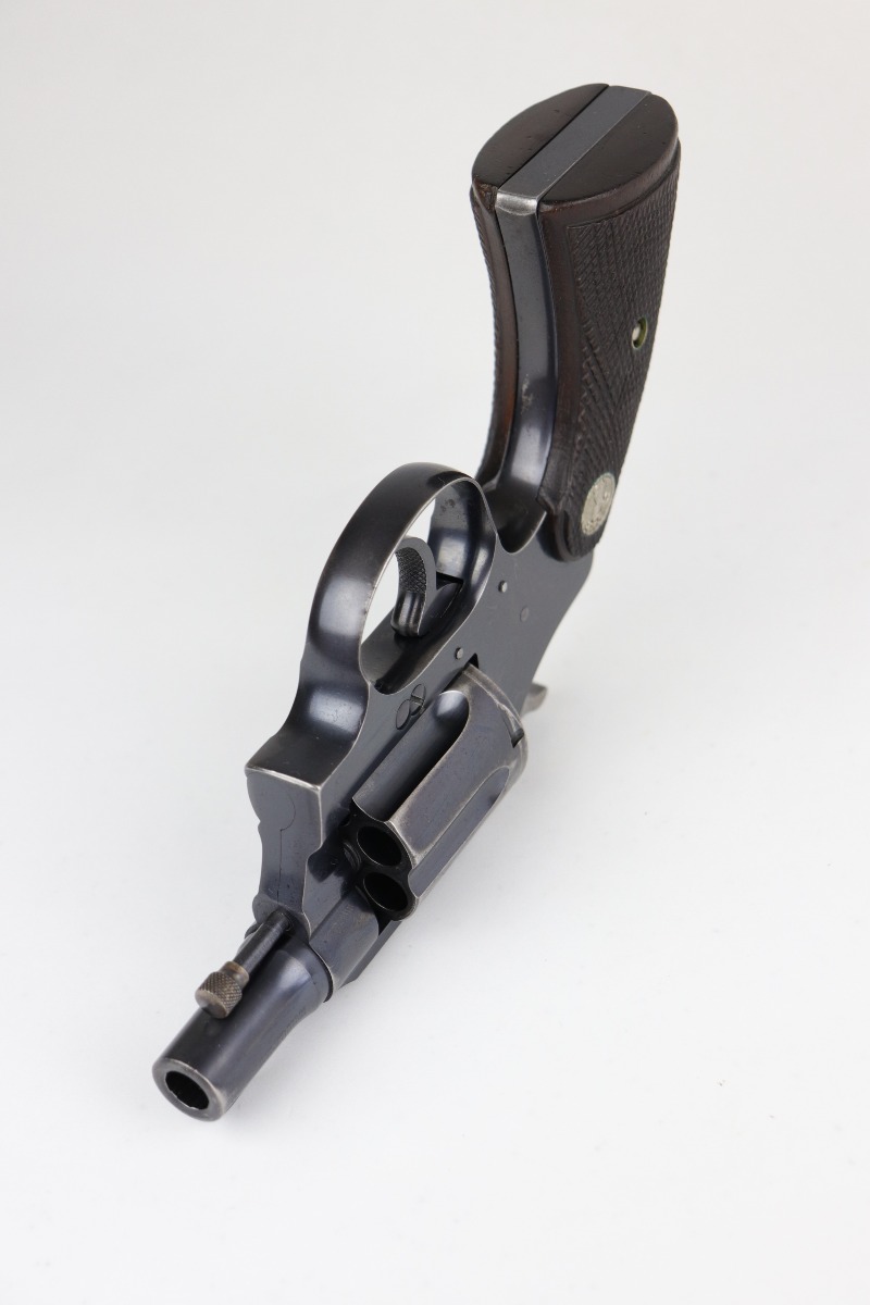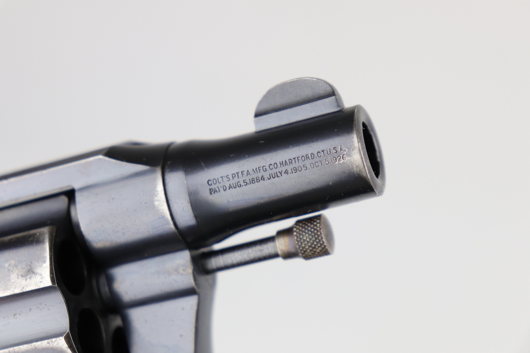 7/10/20 – This is a 2″ Colt Detective Special revolver, chambered in .38 Special. From the serial, this gun was manufactured in 1931. Overall, the gun is in nice condition. It has retained roughly 75% of its original finish. There is wear on the high edges of the cylinder and a roll mark, minor muzzle wear, wear on the high edges of the butt, and thinning on the rear strap. There are also a few small scratches on the right side of the frame. The bore is minty. The grips are excellent. The cylinder is tight and the action is smooth.