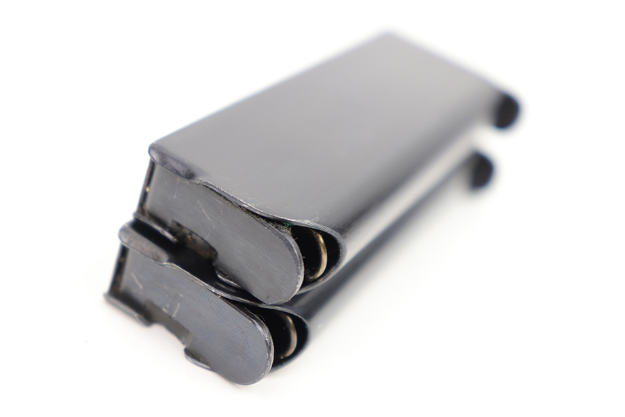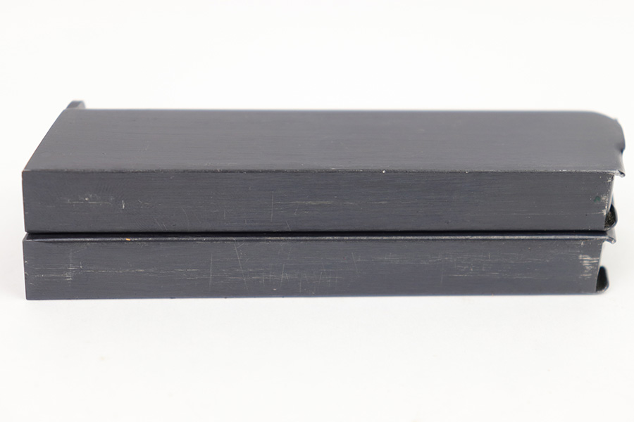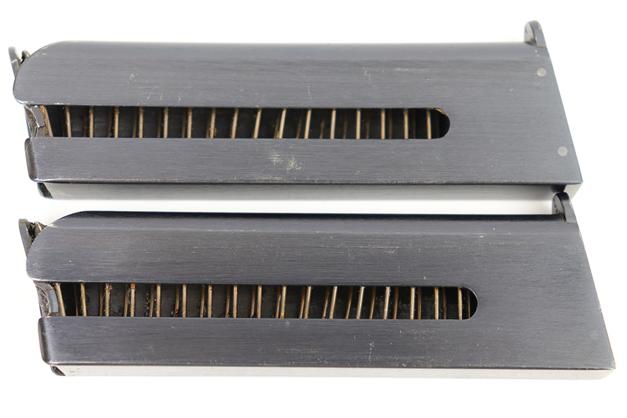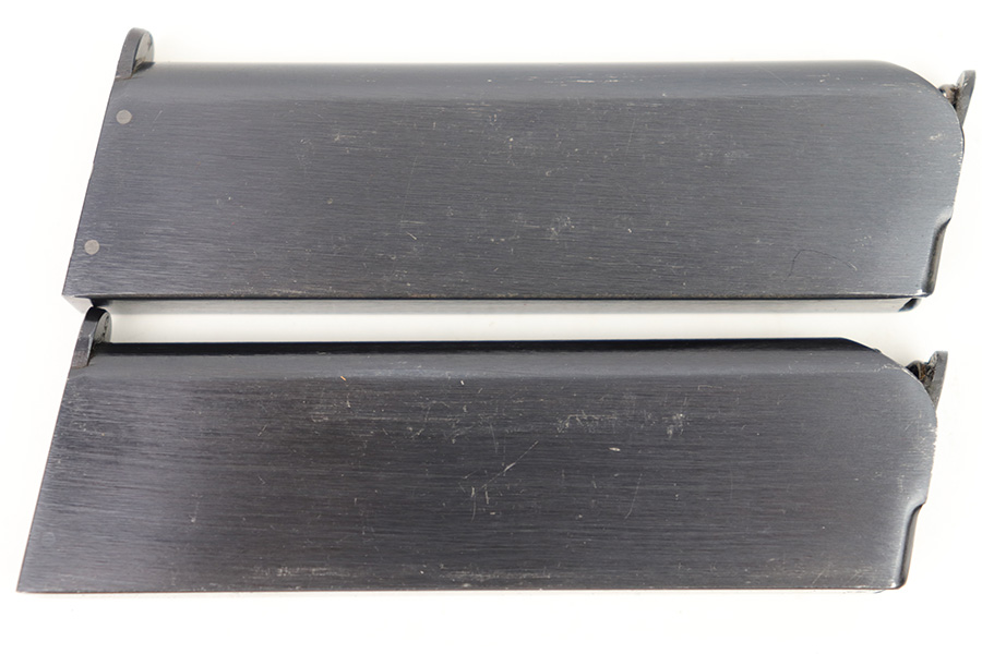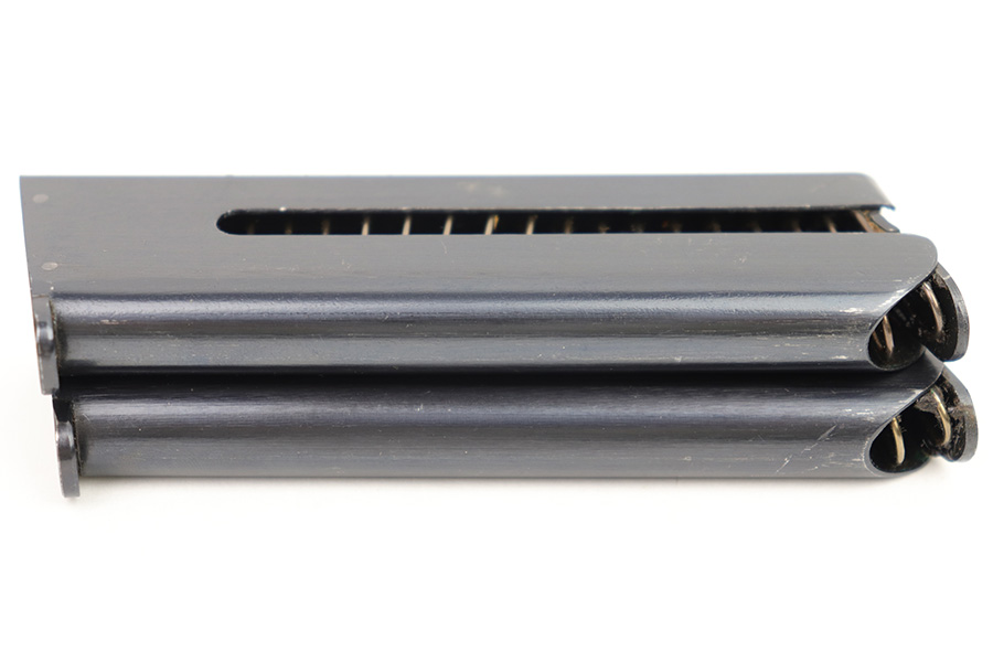 3/7/23 – Price is for BOTH magazines. This is a pair of excellent condition magazines for a Husqvarna Model 1903 or M1907 Browning Pistol. 9x20mm long with 7 round capacity. Excellent condition with all original finish and minimal surface wear. Strong, fully functional springs.