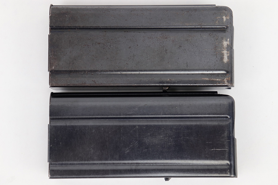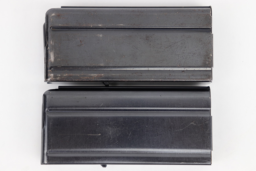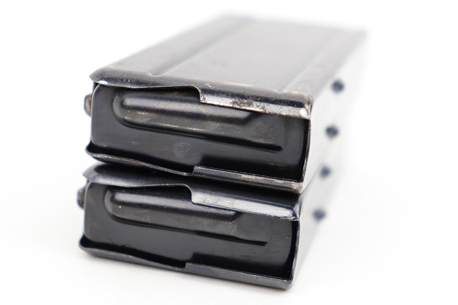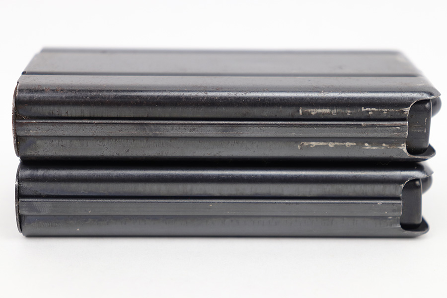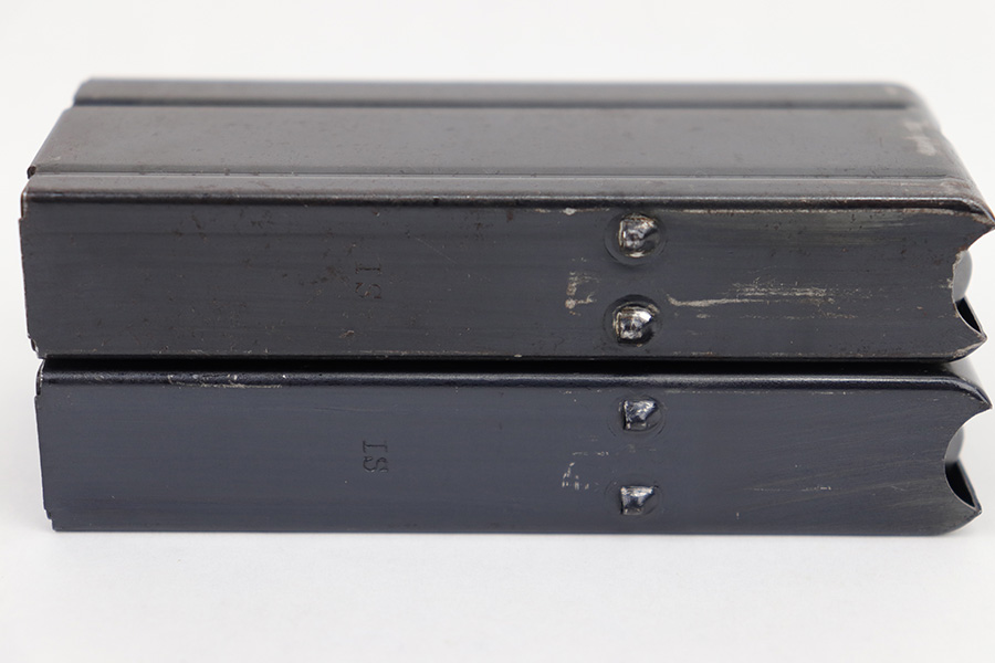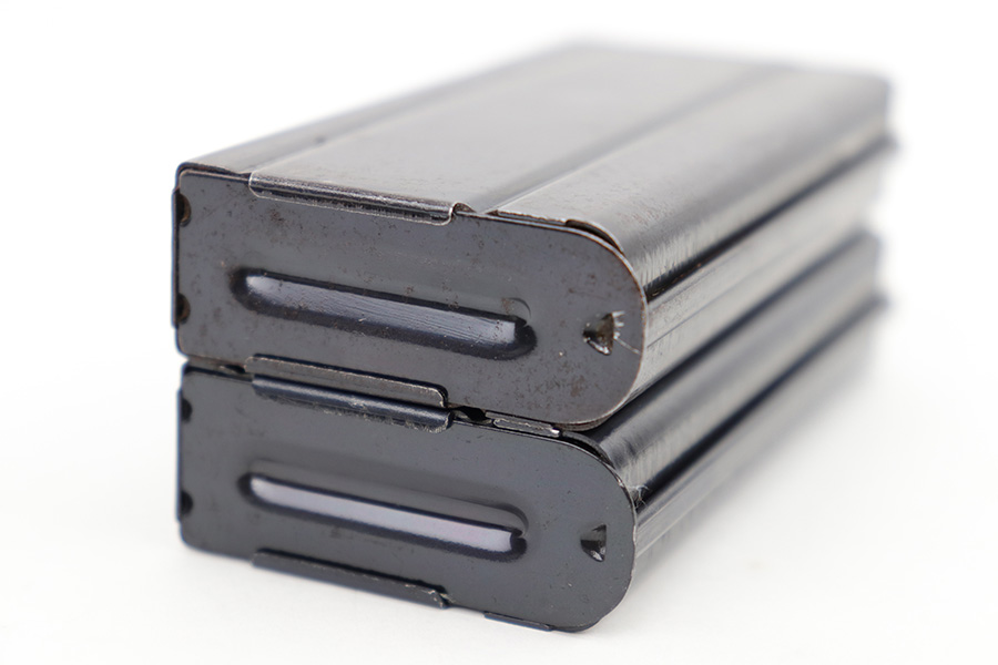 4/25/23 – This is a pair of original M1 Carbine magazines. Both magazines are maker stamped “IS” by International Silver on the spine. Great condition with some mild surface patina but no major issues. Strong, fully functional springs. Each magazine holds 15 rounds, so please do not purchase if you can’t own high-capacity magazines in your state!