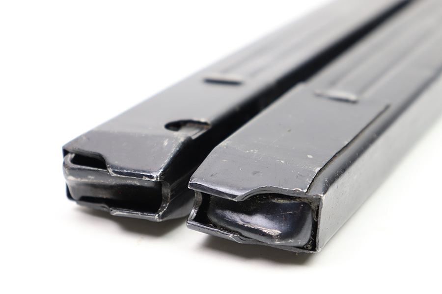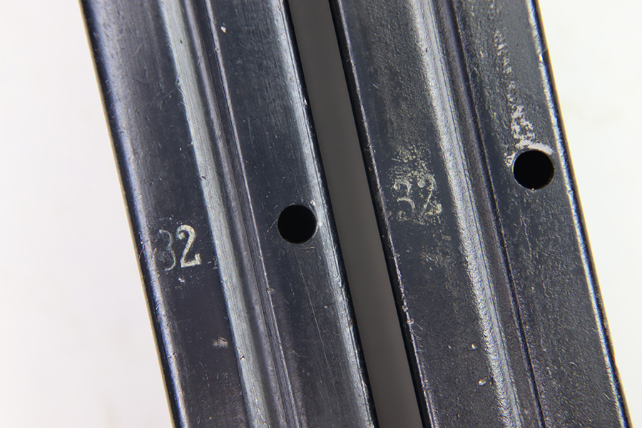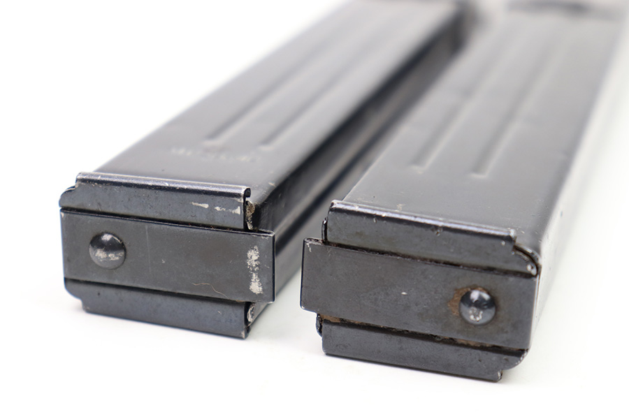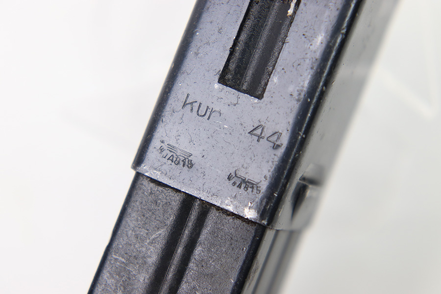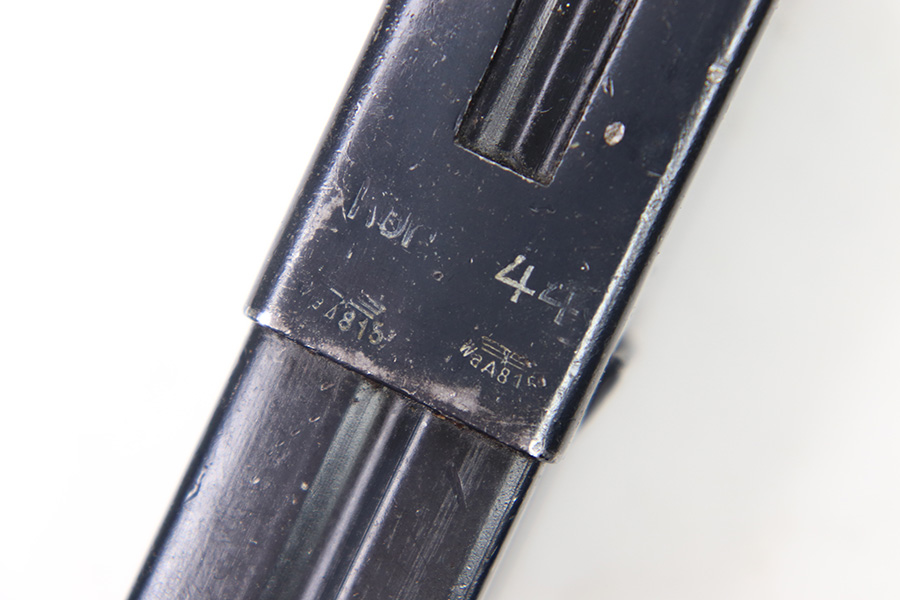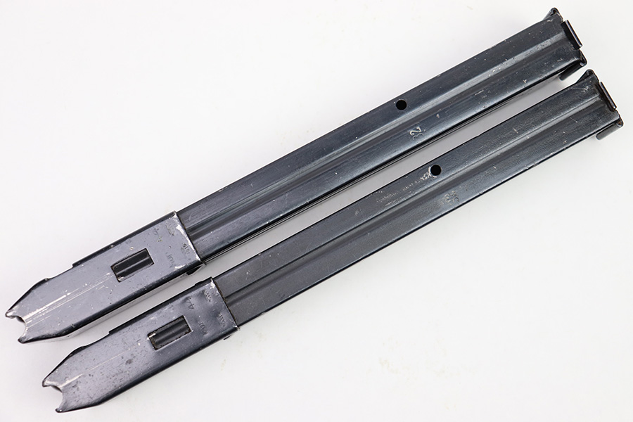 1/12/23 – These are two original 1944 production MP.40 magazines. Each magazine holds 30 rounds of 9mm luger ammunition. Please do not buy if you can’t own high capacity magazines in your state! These magazines are in great condition with very minimal finish loss and some mild signs of use and aging. Most of the original finish is intact as shown, and each magazine is maker stamped, waffen proofed, and dated on the spine. Fully functional springs.