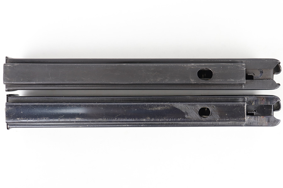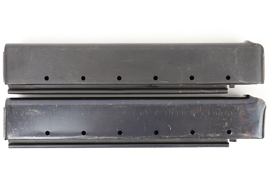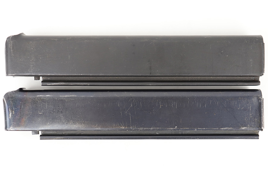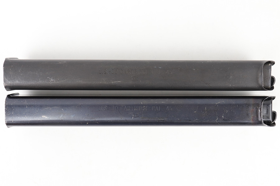 6/6/23 – These are two Thompson 30 round magazines for the M1928 submachine gun. Excellent condition and fully functional. One has a dull blued / parkerized finish while the other has a darker blued finish. Light surface wear but no rust or pitting.