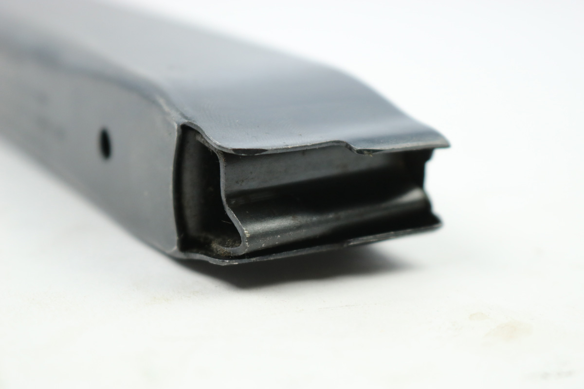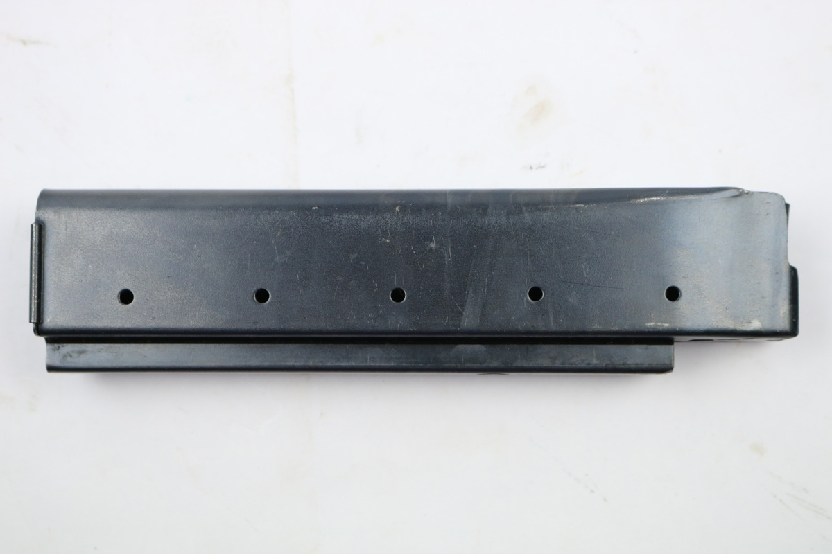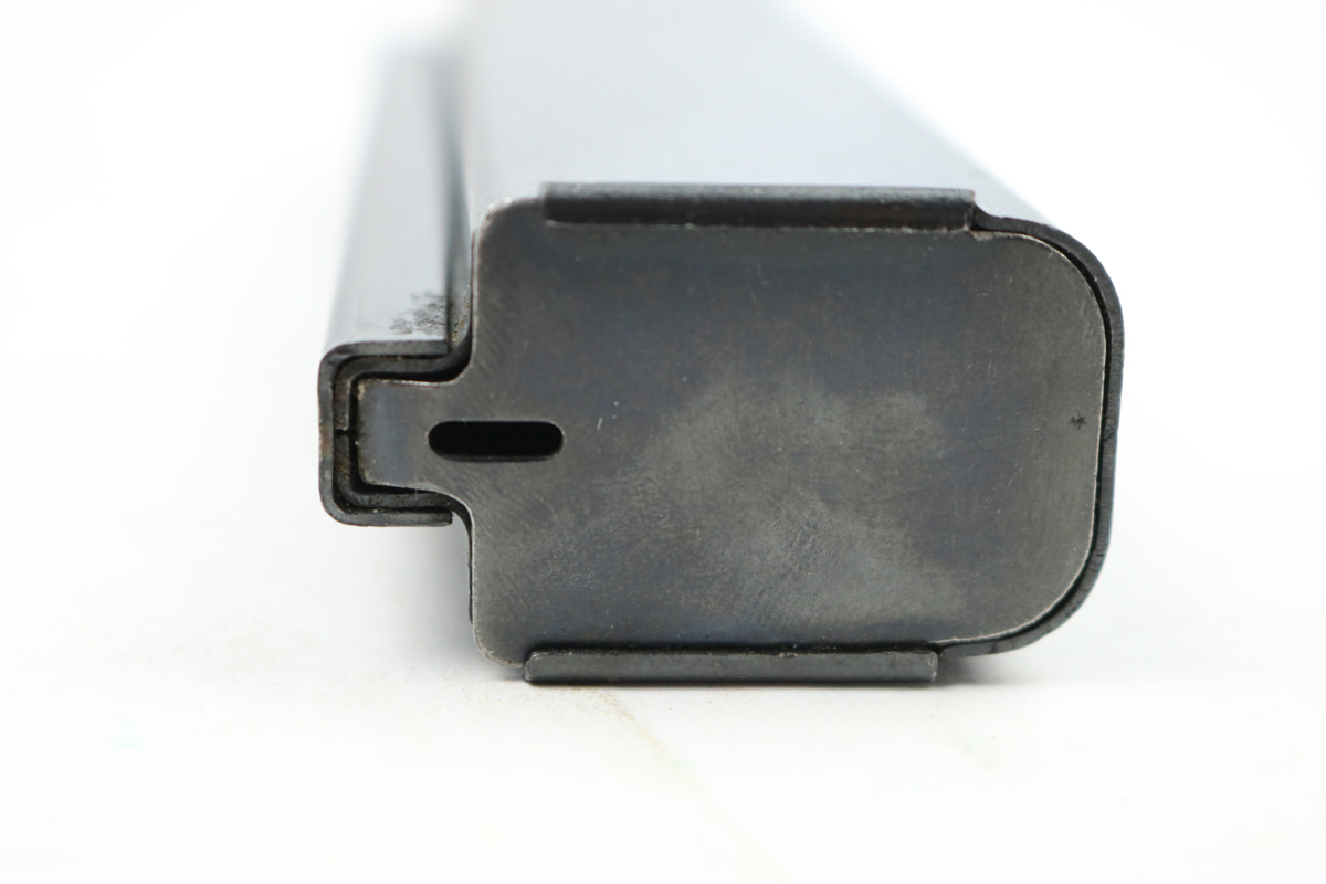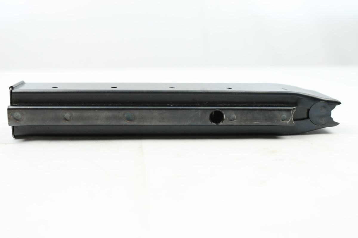 8/24/18 – This is an original early WW2 production 20 round Reising magazine. The magazine has an earlier blued finish and is in excellent condition. Fully functional, and holds 20 rounds of .45 ACP. Made by Harrington & Richardson. Guaranteed original.