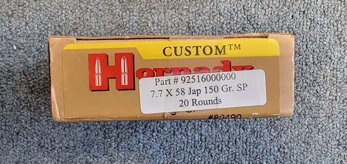 8/18/23 – This is a box of 7.7x58mm Japanese rifle ammunition by Hornady. 20 rounds total, excellent condition.