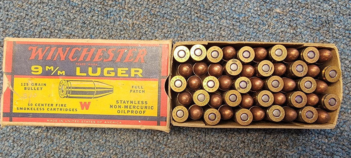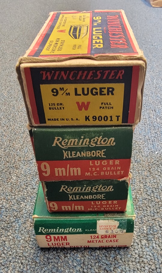 8/23/23 – This is 200 rounds of 9mm Luger pistol ammo. Various makers, with 150 rounds being 124 grain metal cased bullets, and 50 rounds of Winchester 125 grain bullets. Some mild cosmetic wear and aging to the boxes, but all rounds are excellent.