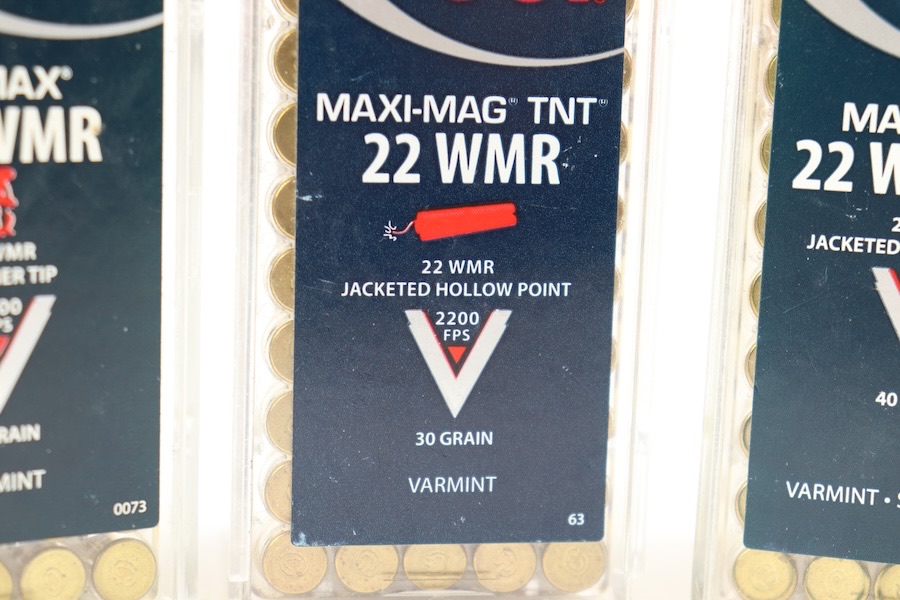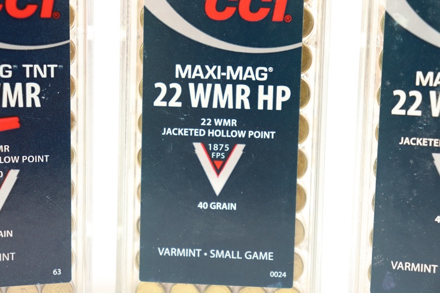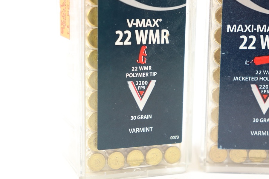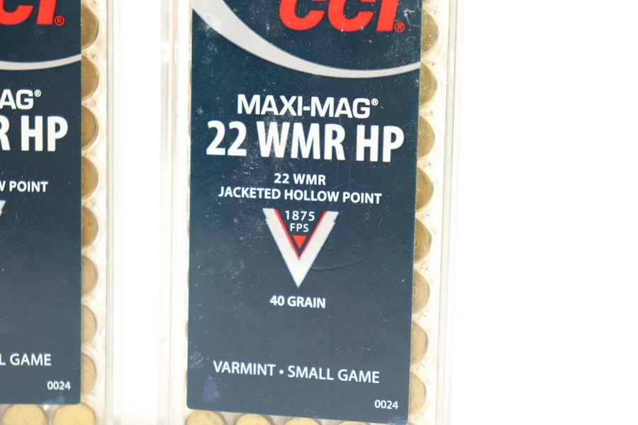 11/17/23 – This lot is for 200 rounds of CCI .22 Magnum. 50 Rounds are V-Max Polymer tip 30grain with a muzzle velocity of 2200 FPS. 50 Rounds are the Maxi-Mag TNT, it has a 30 grain jacketed hollow point with a muzzle velocity of 2200 FPS . The remaining 100 rounds are Maxi Mag 22 WMR HP which is a 40 grain projectile with a 1875 FPS muzzle velocity.