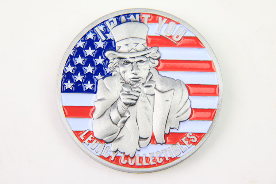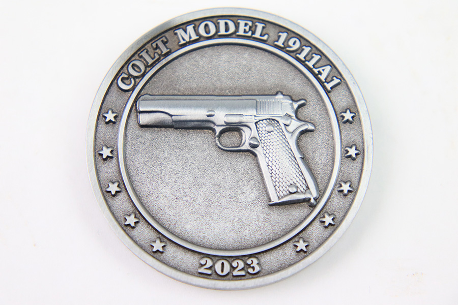 12/21/2022 – Presenting Legacy Collectibles’ brand new 2023 challenge coin! This year, the coin features the iconic image of Uncle Sam and the American flag on the front. The back features the Colt model 1911A1. Next year, we’ll be featuring a different gun. These have a high quality nickel finish and are very well made. Get yours today!