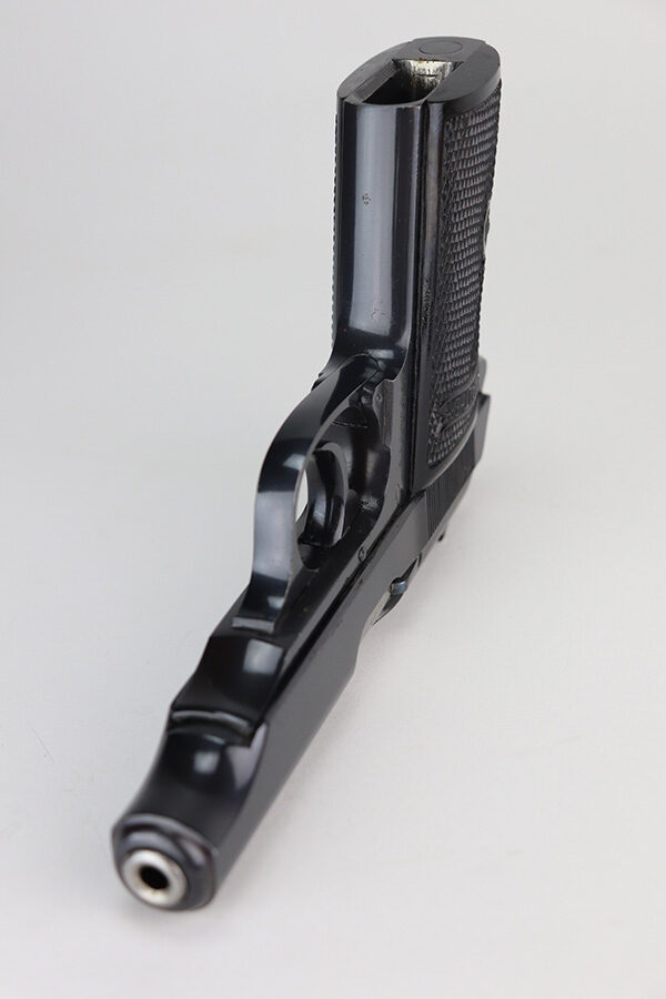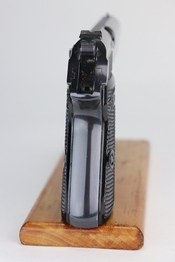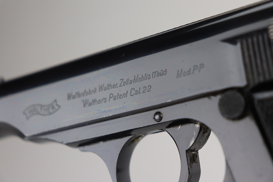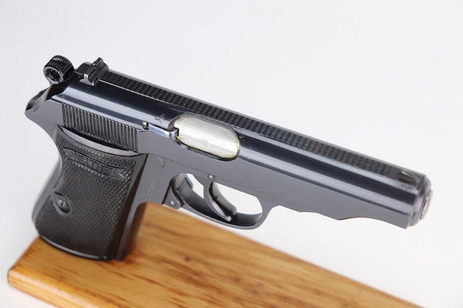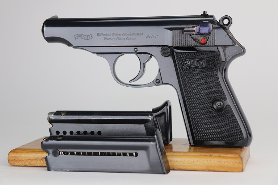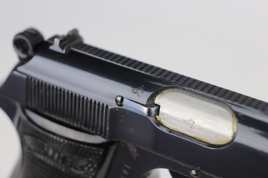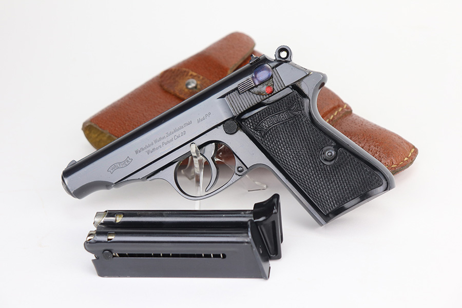8/9/21 – This is a gorgeous example of a .22 Caliber Walther PP rig sold in the commercial market in 1940. It is all matching and has the proper “Eagle N” proofs. It comes with a very nice late-war Ersatz holster, a black finger extension magazine, and one flat-bottom magazine. The gun has retained more than 98% of its high polish finish. There is very minor wear around the muzzle and a few very light scratches along the slide. Comes with excellent grips. Mint bore.