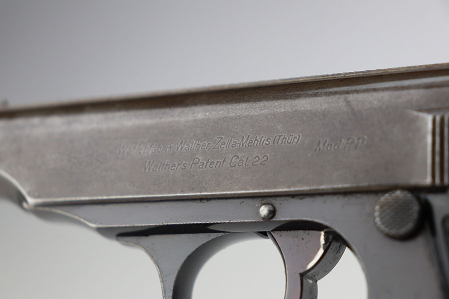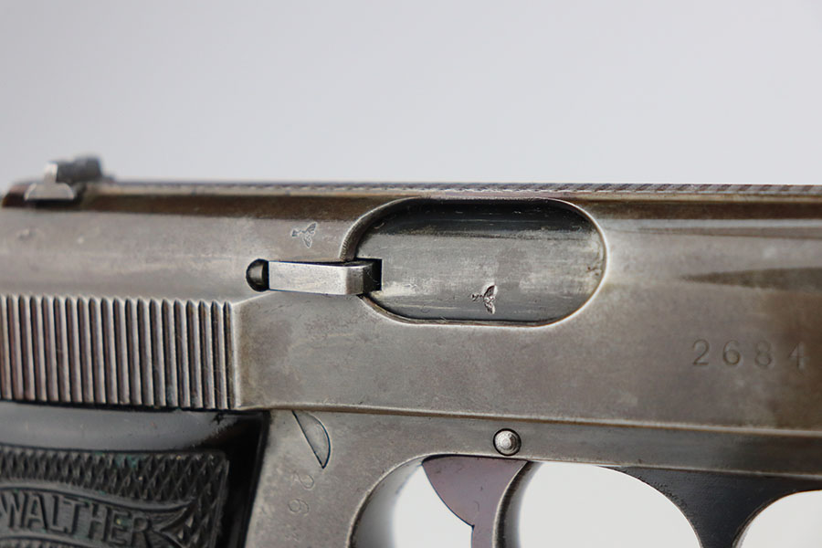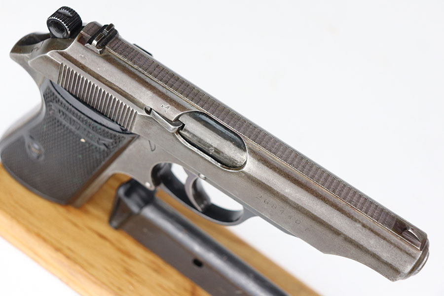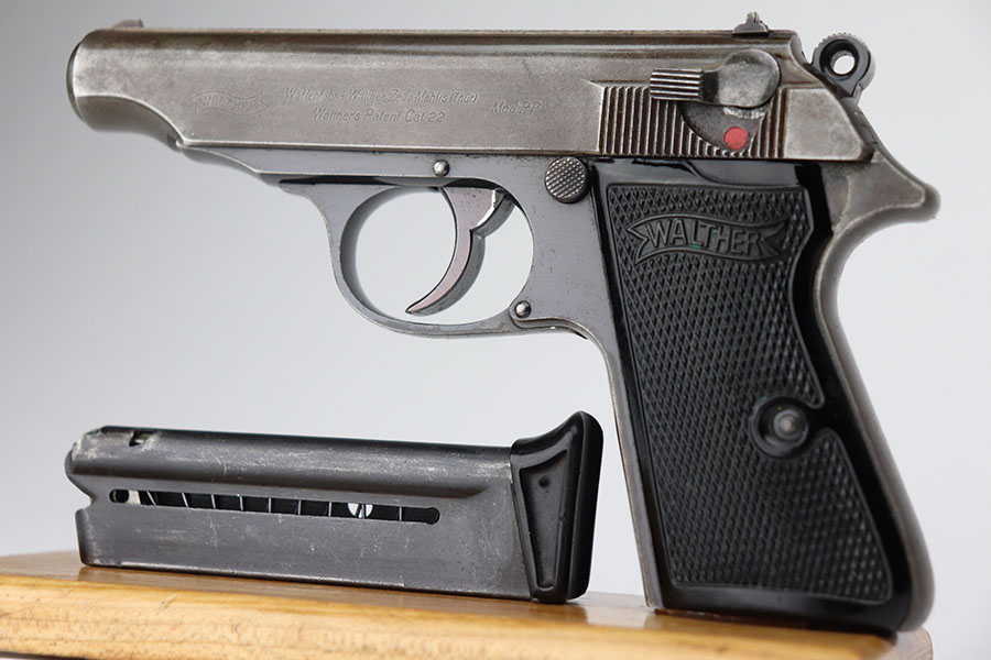2/11/21 – This is a scarce Walther PP from 1942 in .22LR. Only about 3.5% of total PP production was done in this caliber during the war or prewar. The finish is obviously worn with patina throughout, though. Minty bore and excellent grips. Original finger extension magazine.