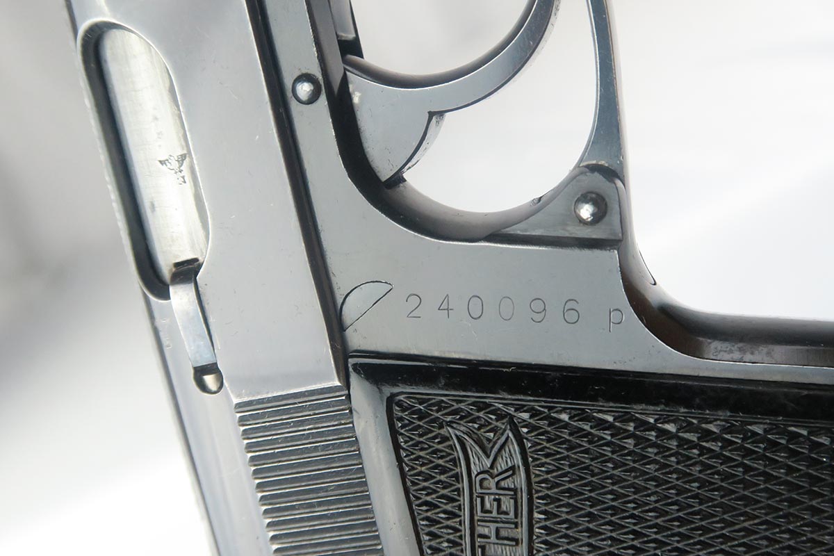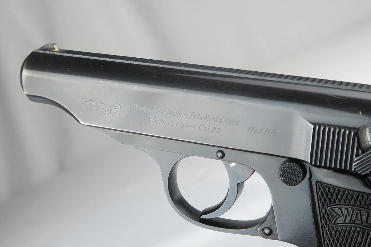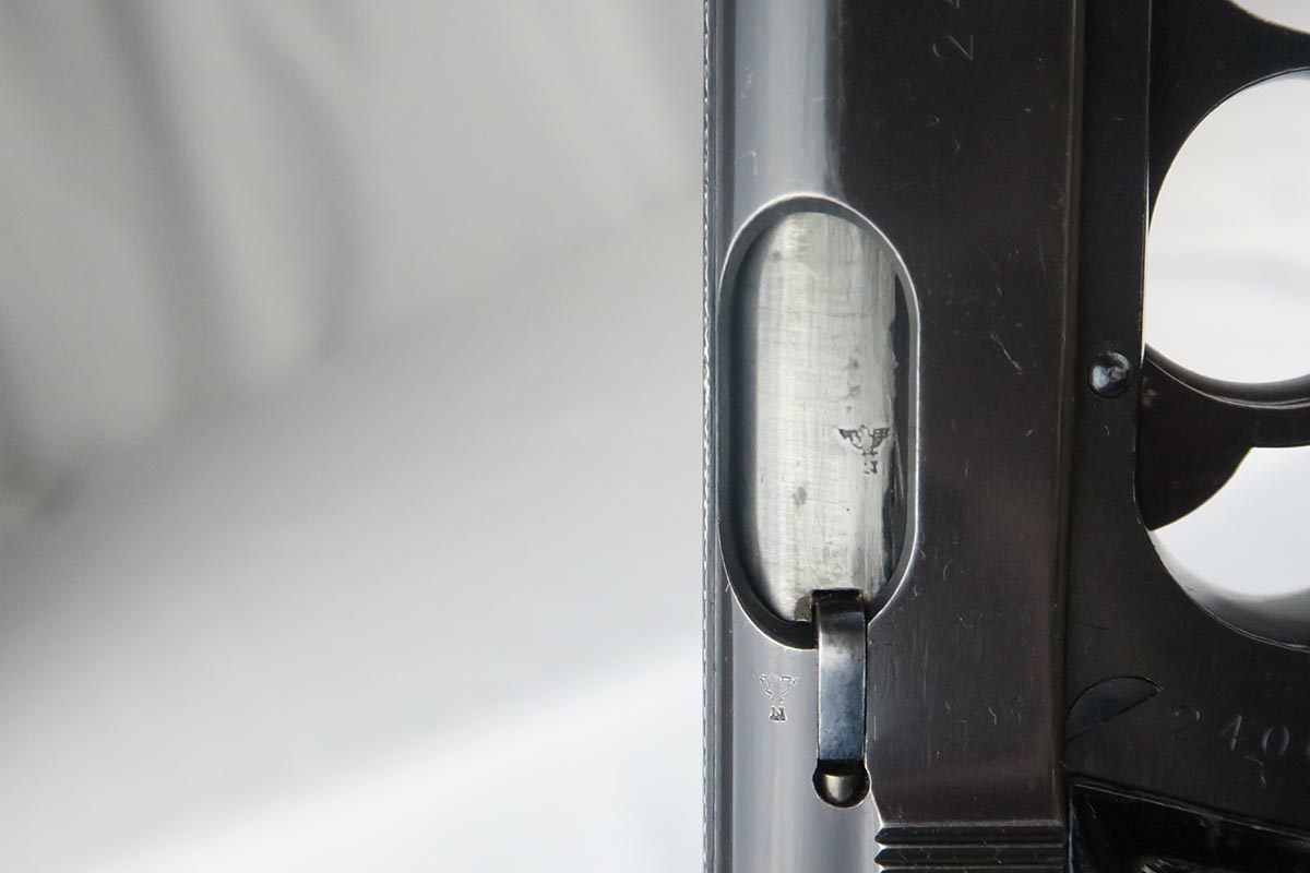 1/23/18 – This is a very nice and all original wartime Walther PP that’s chambered in .22 caliber.  The original blue rates at around 95%, with no major areas of wear, just some thinning of the color on the slide.  Grips are excellent with no chips or cracks.   Magazine may be a reproduction based off the chrome follower but not positive about that.  Minty bore.