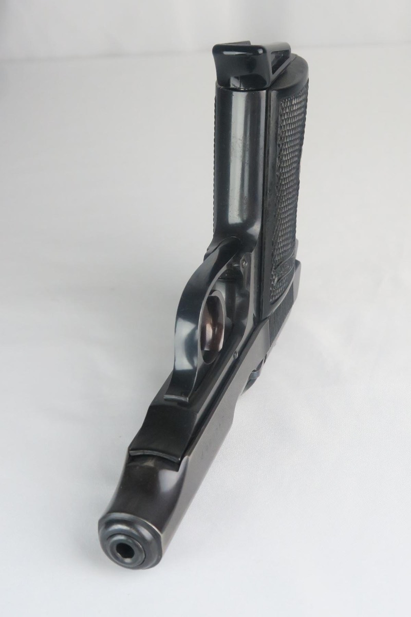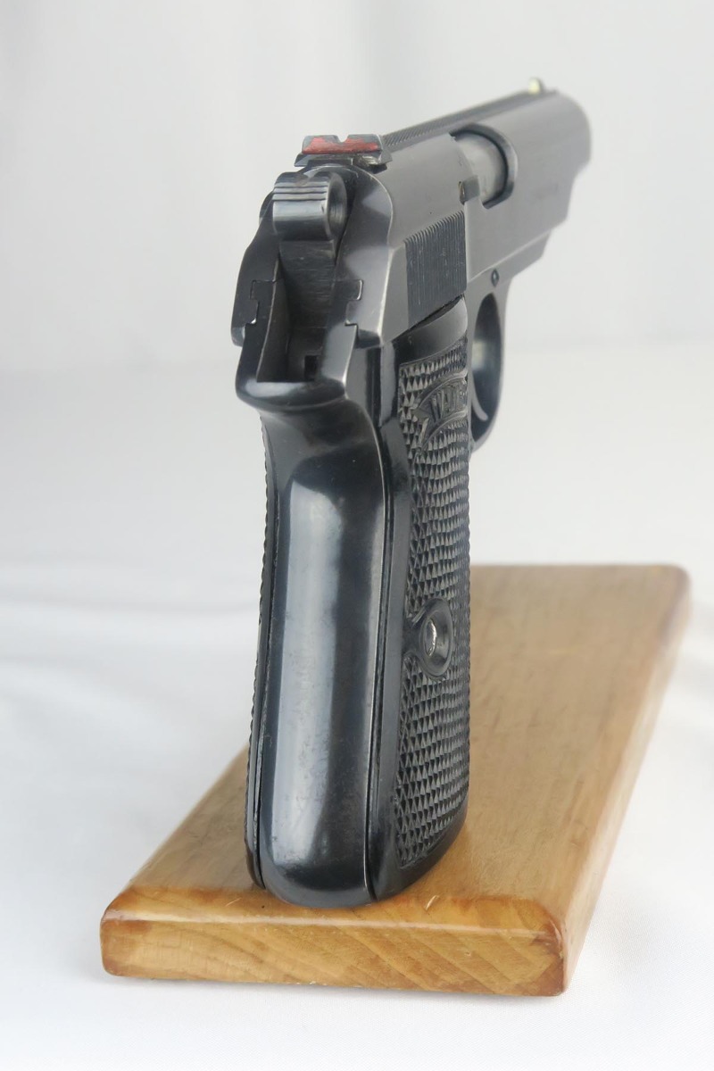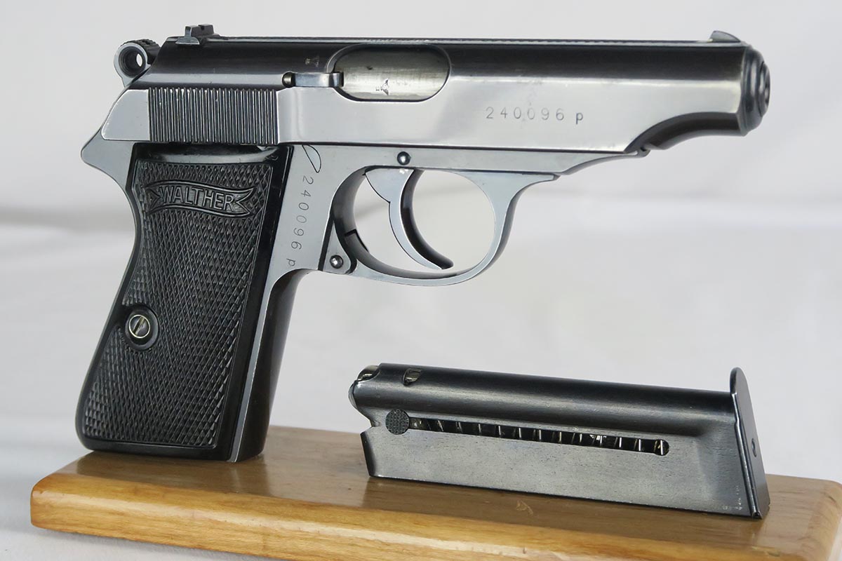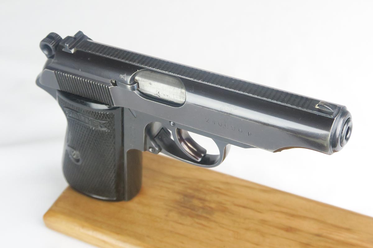 1/23/18 – This is a very nice and all original wartime Walther PP that’s chambered in .22 caliber.  The original blue rates at around 95%, with no major areas of wear, just some thinning of the color on the slide.  Grips are excellent with no chips or cracks.   Magazine may be a reproduction based off the chrome follower but not positive about that.  Minty bore.