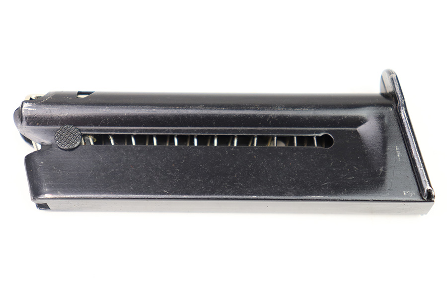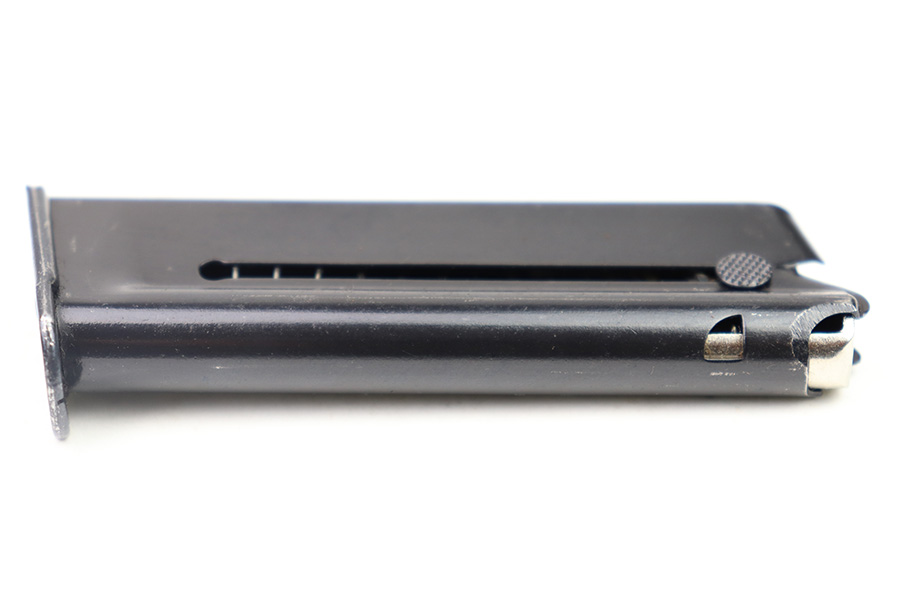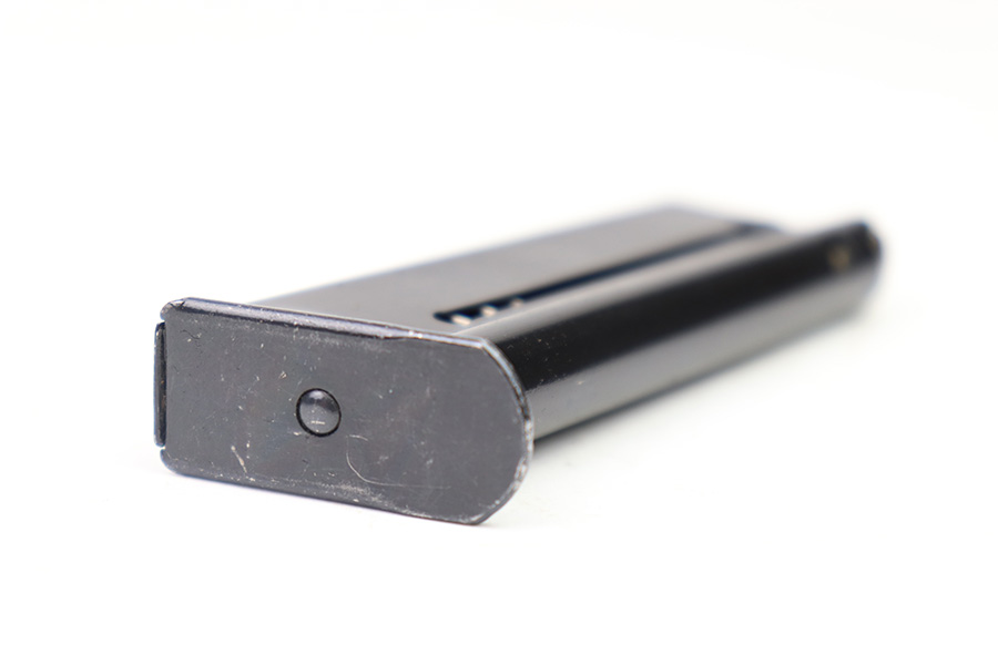 9/9/22 – This is an original Walther PPK magazine in .22 caliber. The magazine is either a late WW2 production or early post-war production example. The base and tube have an excellent, dark blued finish. The spring is strong and fully functional.
