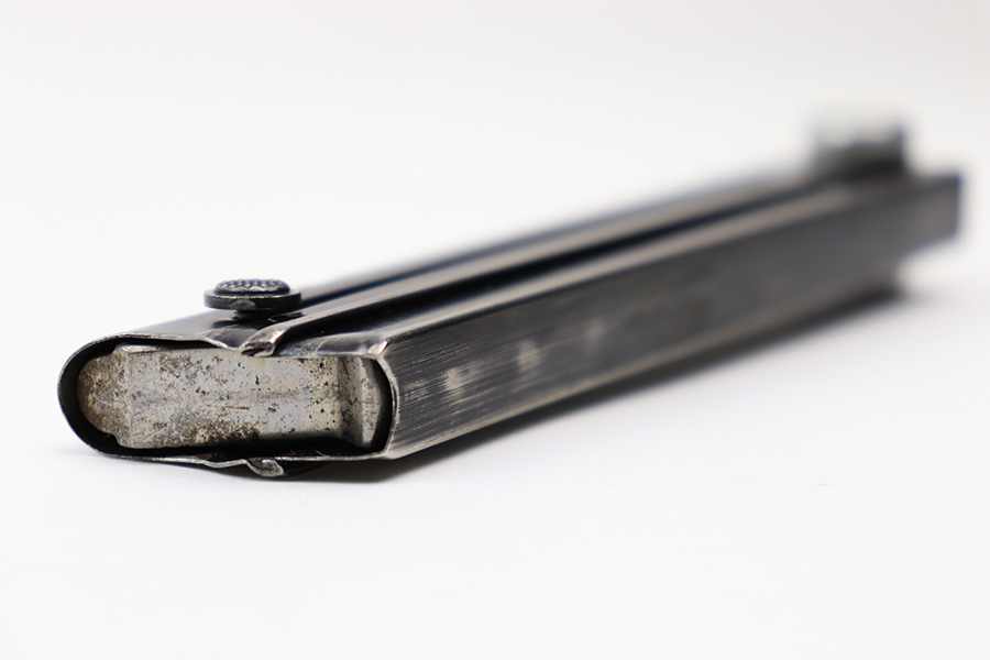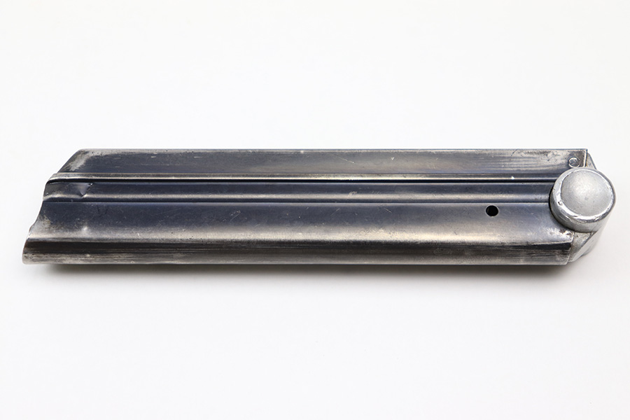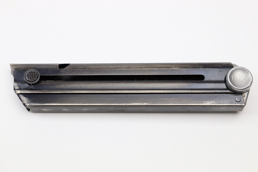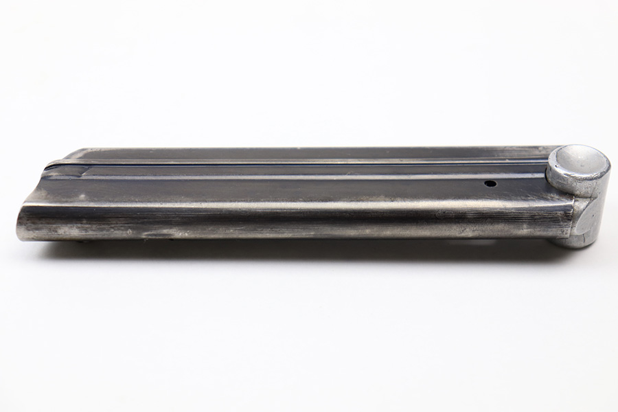 7/6/22 – This is an original Mauser Luger magazine with a 3 digit serial number. The magazine tube is blued and in great overall condition. There’s some mild finish loss but no rust or pitting. The base is numbered “570 L” with an eagle 63 proof stamp underneath. The spring is strong and fully functional.